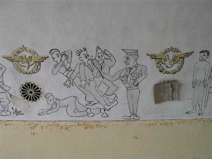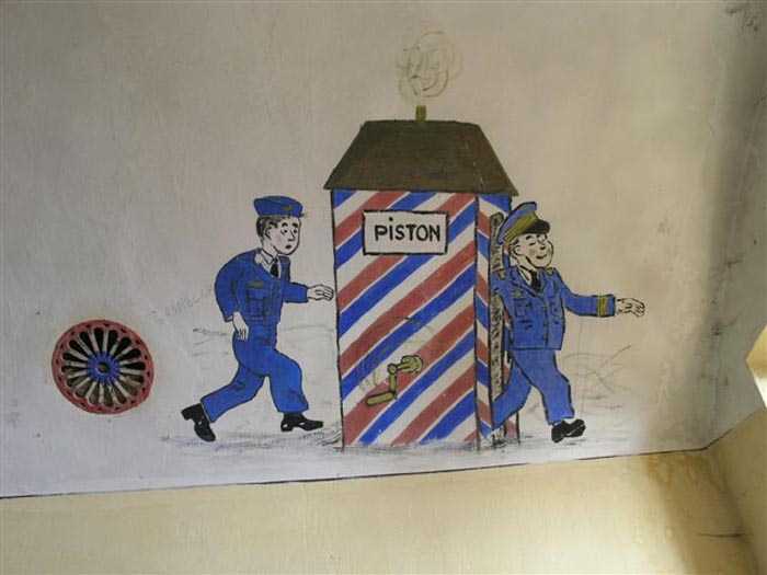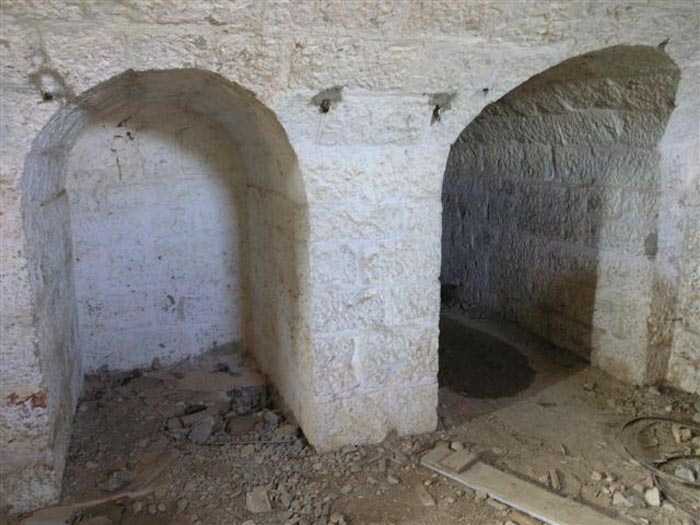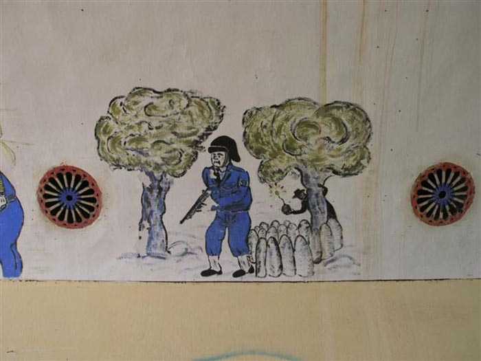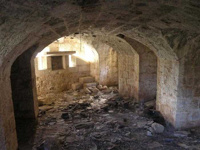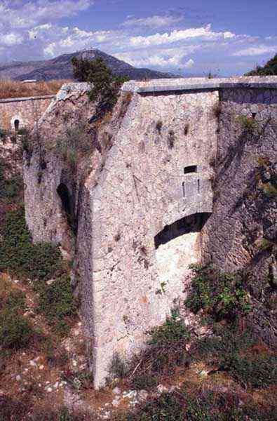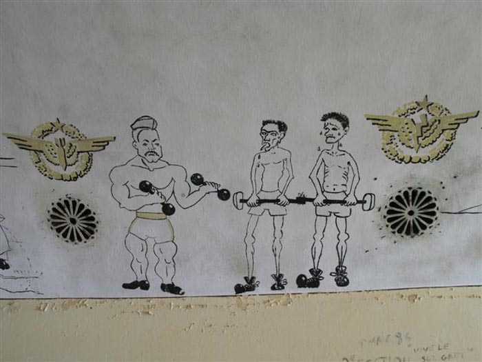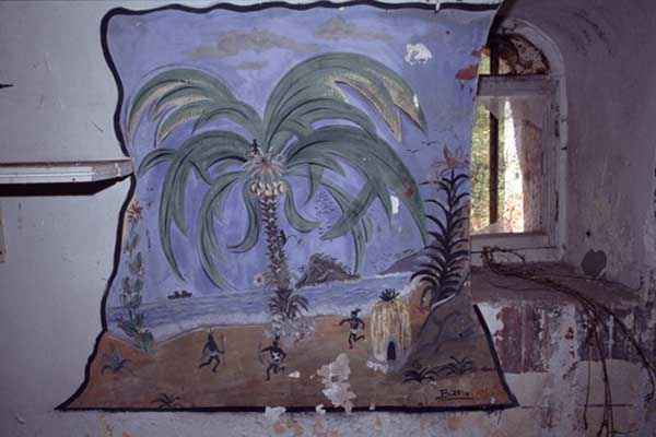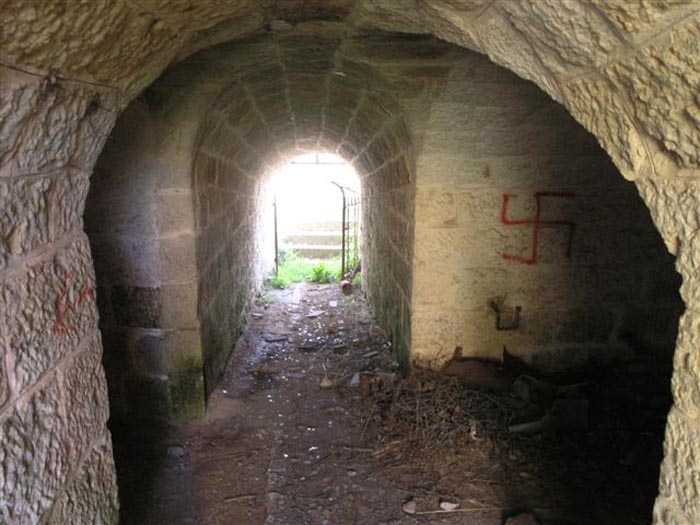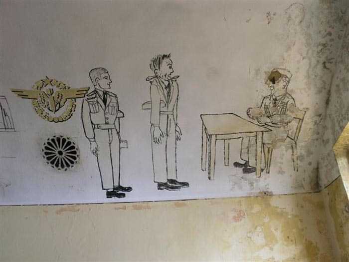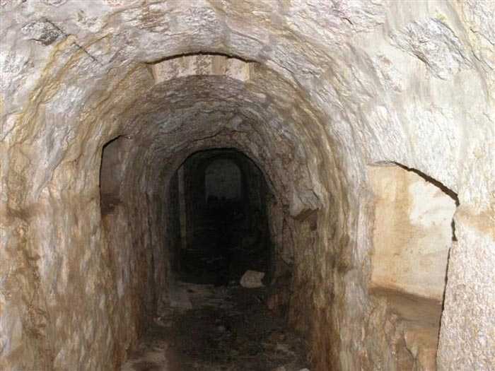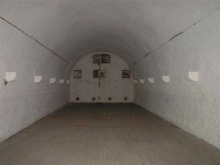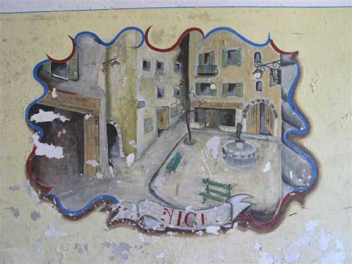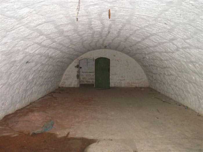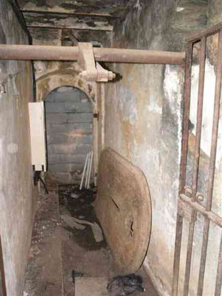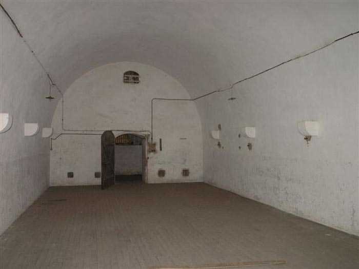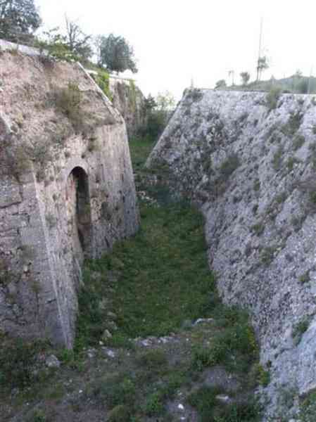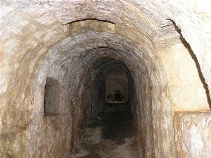 Fortress of Nice, east-northeast of the city, 1882-1885. 696 m/alt at the entrance threshold. Named fort Anselme. Fort de la Revère is entirely surrounded by a dry ditch; occupying a plateau (or terrain leveled by rock removal), its perimeter is less determined than that of the other forts of the place by the torments of slopes and other precipices. Overall, we are dealing with a trapezoid whose right third breaks by a few degrees facing northeast, while widening both on the head front and the gorge front sides. This break, compensated by a widening of the head front ditch, on the contrary determines a small front V-VI at the gorge. The latter, occupying as it should front VI-I, finds itself devoid of defense and outside the field of action of the caponiers of salients II and IV. The barracks, on a single level (eight bays on the right and seven on the left), faces the gorge while being preceded by a terrace. This arrangement is rarely encountered (Vaux in Verdun, Friches and Uxegney in Épinal, Montlandon in Langres, Lestal in Albertville, La Pompelle in Reims, …), but never over such a length which makes the gorge of Fort de la Revère one of the most exceptional. The parapet wall of this terrace thus crowns the escarp wall. Barely one meter high, it cannot claim to really aid the defender; in addition, the ditch preceding it, very shallow (± 350 cm), does not constitute an insurmountable obstacle especially since, unless modifications have been made, the tops of this barracks are not (any longer?) organized as a firing step. The openings of the barracks have been modified and if there was any armor device, it no appears today. The gorge ditch was deepened by digging a pit in front of the entrance, under the movable deck of the bascule drawbridge with assisted movement, a bridge of which a good part of the mechanism has come down to us. The right part of this barracks still houses an imposing kitchen stove with its hood. Underneath, a small electric motor assisted a fan. This stove ran on fuel oil, as evidenced by the injectors and the tank in the adjacent room. It can only be contemporary with the many humorous sketches decorating the walls of three of the barracks rooms. Three barracks rooms, three distinct styles, the same willingness to testify to the reality of the life of conscripts under the flag, not without a certain humor by the way. On the reverse of two of the entrance doors of these barracks rooms, one can read, on one, "section Guynemer" with a war cross drawn directly on the wood and, on the other, "section E. Marin la Meslée". Edmond Marin la Meslée was an ace of the French fighter arm in 1940 and his name remains attached to B.A. 112 in Reims. On this door, a pennant of the famous Stork squadron was sketched under an aircraft rarely represented, and for good reason, it never went into series production. It is an SE 5000 Baroudeur, a tactical support aircraft that had the particularity of taking off on a trolley and landing on skids. As the tests were carried out from 1953 to 1956, this sketch can reasonably be attributed to those years. In the left part of the barracks, it is three large paintings, two of which depict a neighborhood of Nice and the third one of another locality (P…?), that attract attention. Let us note, a thing rare except in Dijon, that the barracks rooms respect the directive according to which the height on the façade must be greater than that on the corridor side, for lighting reasons. It seems that the officers had their quarters in the last four bays of this left wing. Most of the original door and window frames are present. The entrance porch, provided with a plaque justifying the name Boulanger, opens onto the courtyard between two enveloping walls following the piers grooved for the placement of eventual armor that would have extended the protection of the passage. Facing this courtyard, a line of eight casemates framed by two narrower ones, all on a single level, turns its back to the head front. Smaller than the barracks rooms of the gorge, these casemates seemed devoted especially to the storage of everything that may be necessary for life in the fort. In one of them is part of the defensive grilles of the fort. On the right and parallel to front III-IV, we find the artillery rooms including the powder magazine. The latter, with a capacity of about sixty tons, shows a barrel vault and flanks furnished with corbels. It has, besides its floor, miraculously preserved the closing shutters of all its openings, including lamp embrasures. Is it necessary to specify the extreme rarity of the thing? The thick panes of the three aligned embrasures did not have this luck. The other artillery rooms form an ensemble rather disconcerting in its configuration by the multiplicity of its partitions firstly, by a storage room covering several cartridge depots secondly. It is exactly as if, in the extension of the powder magazine, a second one had been built with partitioned ground floor and a floor, at the level of the vault springing, covering the whole in one piece. A tunnel passage separates perpendicularly these two magazines, allowing the passage from the large courtyard to a second, more modest one, onto which three asymmetric hollow traverses open. The fort counts only five hollow traverses, all different. Here we are dealing with nos. 3 to 5, of a model with front abutments (Mle 1879). Their dimensions vary greatly. Nos. 3 and 4 are abnormally wide, no. 5 corresponds more to the standards in this matter. No. 3 has only one arm in which one can still read the inscription "Pièce n°5 de 155". At the end of this same traverse, the access gallery to the gun emplacement of salient III opens laterally. No. 4 possesses two arms, just like no. 5 with which it also shares the fact of having the entrance slightly askew relative to the shelter body. These three hollow traverses are framed by simple platforms including one angled (behind salient III) 