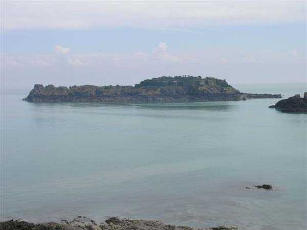 Département 35 (Ille-et-Vilaine). Rade de Cancale. Vieil ouvrage considéré par la Commission de défense des Côtes comme étant à réorganiser, mais que le Conseil supérieur de la Guerre déclassera en 1888. Le fort coiffe tout l'îlot du même nom et semble assez important. Propriété privée (06/2007).
