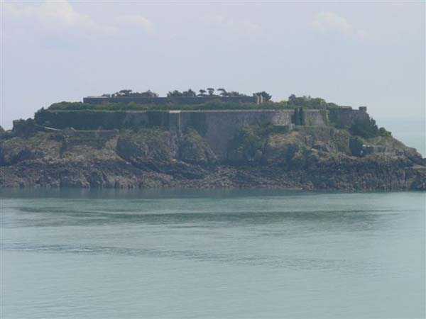 Dept 35 (Ille-et-Vilaine). Reede von Cancale. Altes Werk, das von der Küstenverteidigungskommission als reorganisationsbedürftig angesehen wurde, das aber der Oberste Kriegsrat 1888 außer Dienst stellen wird. Das Fort krönt die gesamte gleichnamige Insel und scheint recht bedeutend. Privateigentum (06/2007).