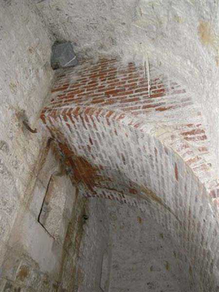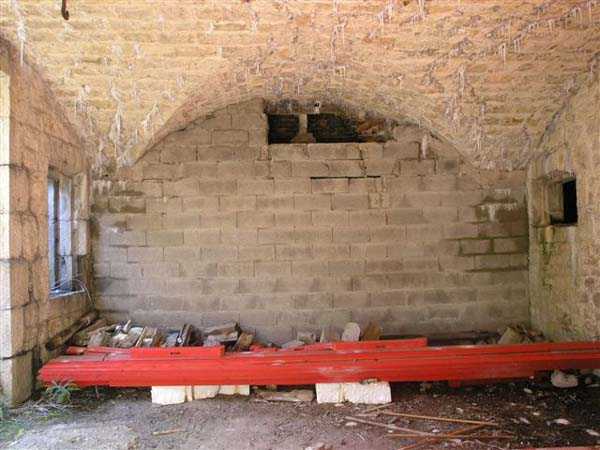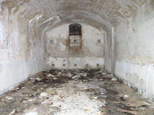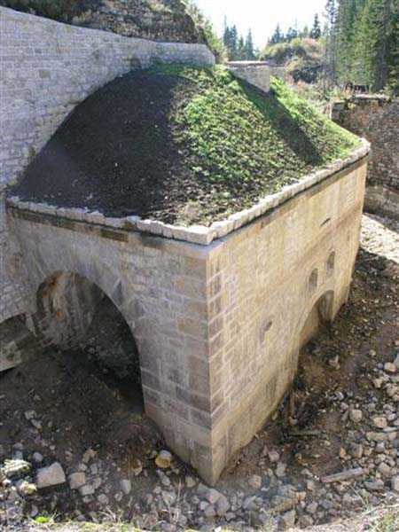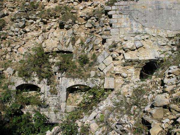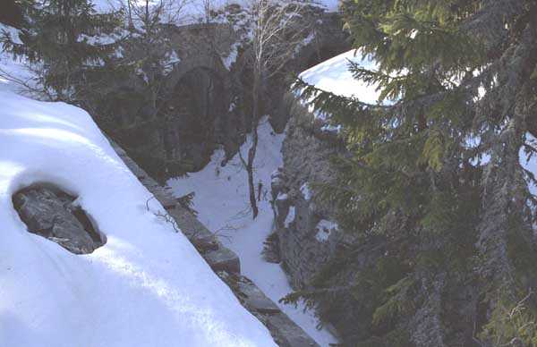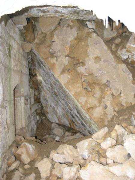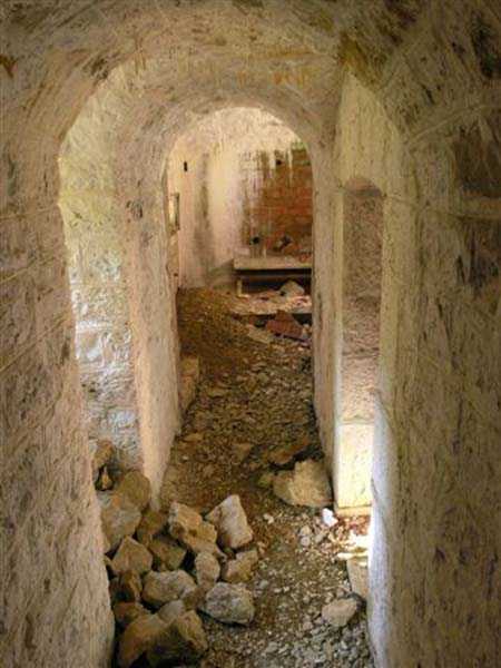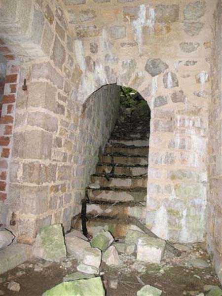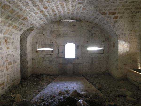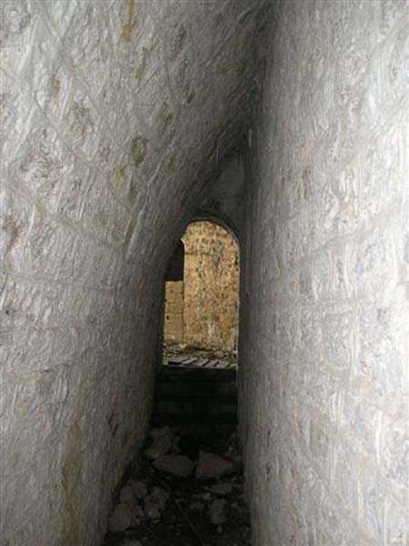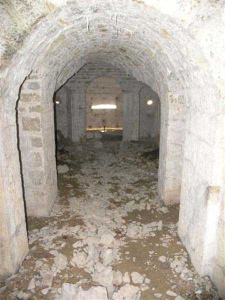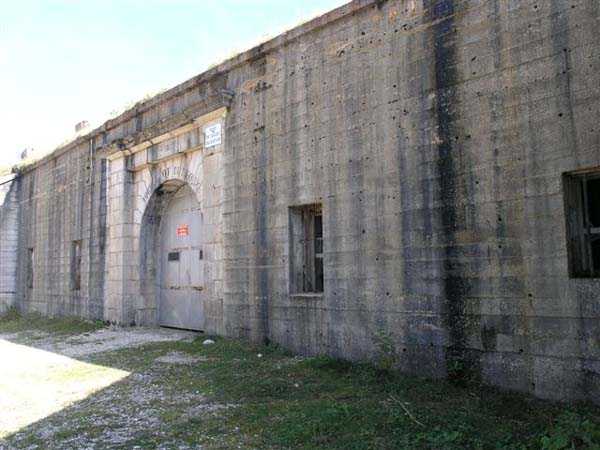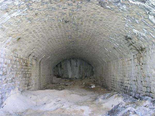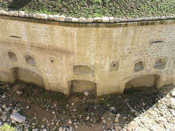Jura Curtain, fortress of Les Rousses, 1880-1884. 1273 m/alt. Approximately 400 men and 16 guns. Named Fort Guyot. It is an irregular pentagon built 3 km north of Fort Les Rousses, which it monitored and protected. 2 double caponiers and 1 single caponier. The gorge ditch and its small curtain wall are filled in. 1 optical post with 1 single embrasure directed towards Fort Les Rousses. 90% of the rooms are or were lined internally with hollow bricks. 3 small rock shelters, including 1 under the counterscarp, were excavated, but only the one connected to the descent shaft to the caponier of salient I is accessible. Note also the particular access, via a path in front of the fire crest, to the caponier of salient III and the presence of an annex magazine for this caponier. This fort served long after the Second World War for tests in the handling of explosives. The caponiers, two of which are collapsed, had circular openings 20 cm in diameter to sweep the dead angles with grenades. The counterscarp at salient III includes large relieving arches. Some fine door and window fittings remain here and there, especially in the caponier shafts. Although in rather poor condition and with many rooms blocked up, the town hall of Les Rousses, current owner (10/2006), released funds that allowed the perfect restoration of the double caponier of salient I. Interest in this fort seems to be growing and we can only rejoice in this. Visit possible with authorisation from the town hall.