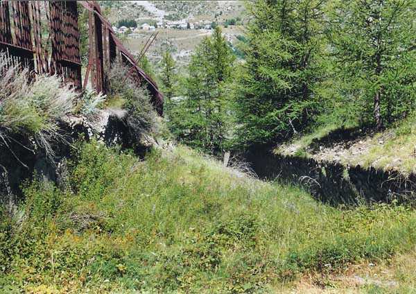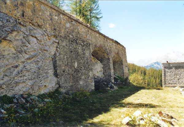 Fortress of Tournoux, east of the fortress, 1884-1889. 1908 m/alt. Sometimes reported as being the "lower fort" due to the proximity of the upper battery of Roche-la-Croix. It swept, with its six pieces of 138 c under casemates, the upstream of the Ubayette valley towards Larche. A ditch on two of the fronts of the perimeter was defended by a double caponier. An underground magazine (1890) had been dug outside the perimeter of the work. The Roche-la-Croix site will later be occupied by a large work of the Maginot Line for the establishment of which part of the original constructions was razed. Sometimes spelled "Roche Lacroix".