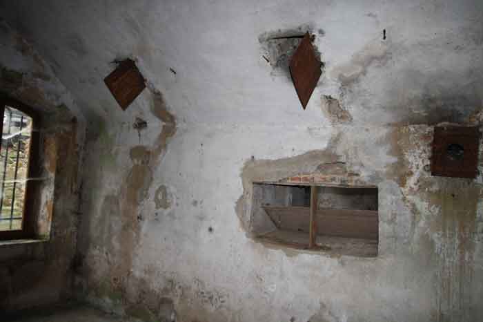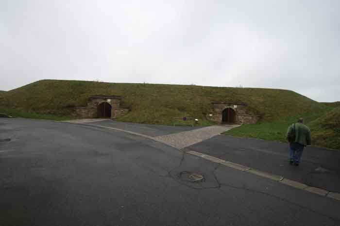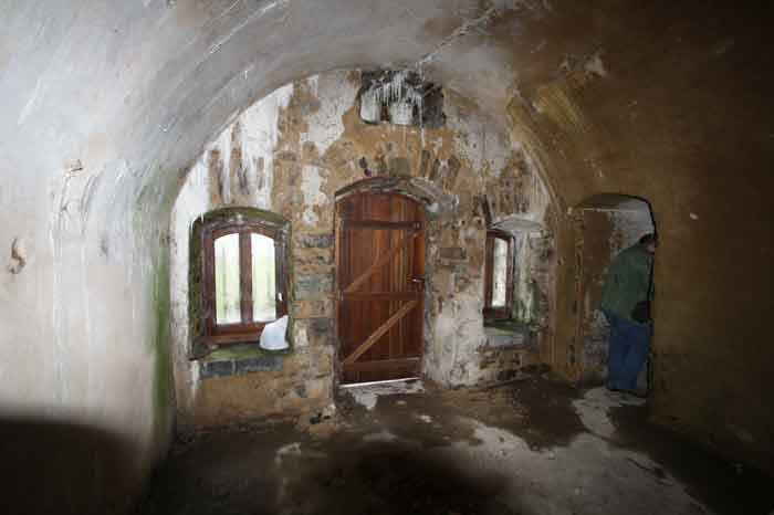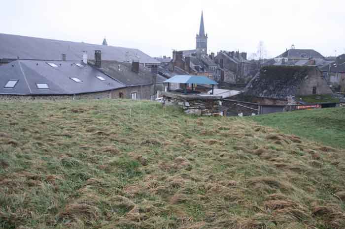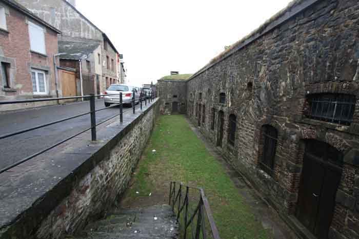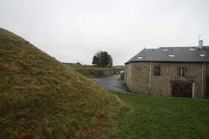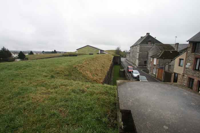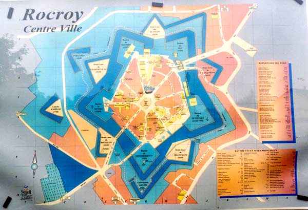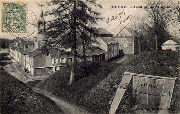Dept 08 (Ardennes). Old star-shaped fortress, probably built by the Italian engineer Girolamo Marini, under the reigns of Francis I († 1547) and Henry II, facing the fortresses of Charles V, including Charlemont, and to which demi-lunes were added in 1610. Modified by Vauban around 1675 then again in 1744 and 1832. In 1883, a siege hospital was built in the hollow of the Bastion du Dauphin. This hospital was divided into two separate courtyards, in light wells, with a median masonry arch intended to support a mattress of beams covered with earth in case of an attack on the fortress. Note that its two encased entrances have wing walls with stepped returns. The plates attesting to the years of construction are of cast iron. In 1884, casemates were built for accommodation along the curtain wall between the Bastions du Roy and du Petit fort. This barracks, of eight bays (10.5 x 6 m), was established about 180 cm lower than the level of the fortress, so that its covering earth did not present a relief discernible from outside the ramparts. A well precedes the bay furthest to the right when facing this barracks. The interior reveals no surprise, a circulation corridor joining all the dormitories at their rear, a corridor punctuated by wells serving more for ventilation than for the penetration of light. The tops of these wells are moreover devoid of lanterns, but it is not impossible that this was not always the case. Note finally that doors and windows on the façade are totally devoid of splinter protection devices. The few hollow traverses overlooking the Bastion de Montmorency are by no means up to the 1874 standards. They must have been the subject of the works of 1832. Thus, as far as the period covered by this index is concerned, Rocroi appears as an unfinished construction site. Indeed, the fortress declassified on 1 October 1888 following an opinion of the Superior Council of War, never were artillery positions worthy of the name, nor even a powder magazine whether model 1874 or 1879, established there. The torpedo shell crisis will have appropriated all the credits for the benefit of the eastern fortresses and choices had to be made. Rocroi was therefore abandoned as a fortified fortress, while remaining planned, in case of conflict, to ensure an optical communications relay between the forts of Hirson and Ayvelles. The most favourable position for this post, besides the bell tower of the Saint-Nicolas church (completed 1863), appears to be the Bastion de Montmorency, but the highest of its hollow traverses contains neither embrasure nor heliostat orifice. The link must therefore very probably have been established from a non-casemated post. The town not having been able, at the time, to finance the dismantling of its fortifications, Rocroi is today a pretty little town, with the delicious scent of authenticity, whose ramparts are kept free of shrub or tree vegetation; this although very many blowouts weaken the scarps (01/2012). The street layout is star-shaped and several intra muros buildings are noteworthy such as the Marguenat barracks (1834), the arsenal (1632) and a few others. Clear signage has been placed all along the ramparts and streets to inform the tourist. Alas, the siege bakery, serving as a collective heating plant (sic), is inaccessible and we do not know if anything remains of its ovens. The town gates are now reduced to simple passageways framed by pilasters. The siege hospital, restored around 2008-2009, now serves as a function hall and its courtyards have been covered with lanterns. As for the 1884 barracks, it remains closed and without particular use. Often spelled « Rocroy ».