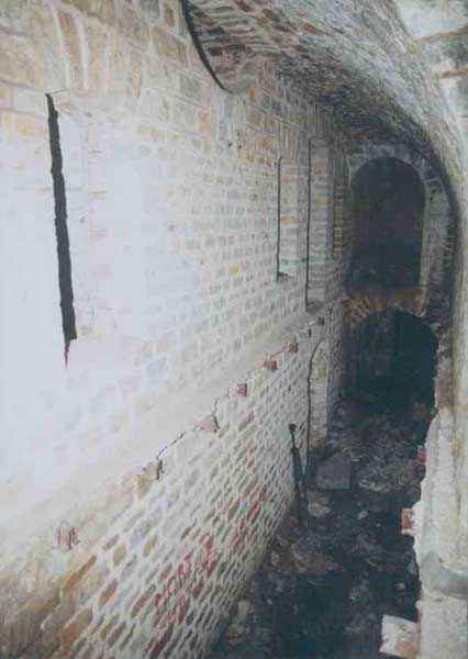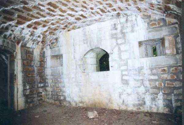 Fortress of Besançon, south-southwest of the town, 1874-1878. 507 m/alt. Sometimes called « Fort Rolland », it owes its name to the captain of the ship, governor of Besançon in 1870-1871, and is established on a position from that conflict. The Boulanger decree preserved this designation for it. Data from 1877 give a work planned for 17 guns and 74 men. The armament approved on 10 May 1876 was composed as follows: 5 138 mm guns, 3 rifled 4 field guns, 3 rifled 24 siege guns, 1 rifled 22 c naval gun, 3 27 c mortars and 2 22 c mortars. Rarely has such a heterogeneous assortment been assembled. Due to the terrain, the gorge has no ditch; those of the head front are defended, one by a small caponier attached to the left of the guardhouse, the other by a counterscarp cofferdam. One finds only 4 traverse-shelters, 6 artillery platforms and a small two-storey barracks. The powder magazine has its vault as a segmental arch. The barracks, two bays of two storeys each, has been set into the rock, and its façade is thus protected by two rock walls sheltering it like wing walls. An annex battery is attached to the perimeter to the northeast. Initially it was designated as « Fort d'Arguel », after the neighbouring village. Freely accessible, it is prey to vegetation. Windthrow considerably hinders progress on the rampart street and, apart from the barracks and the powder magazine, all other masonry is extremely degraded (10/2006). Nevertheless, we are dealing here with a work out of the ordinary and any enthusiast will take pleasure in discovering it.