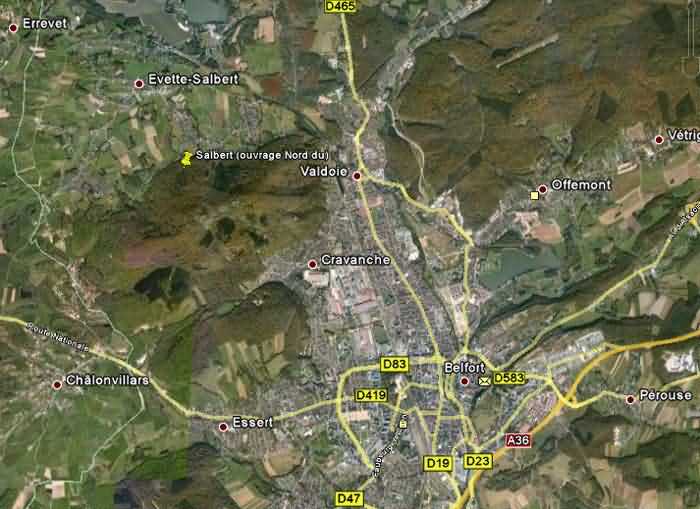 Opevněný tábor Belfort, severozápadně od města, 1890-1891. 470 m n. m. Malé terasovité pěchotní opevnění, 450 m jihozápadně od vesnice Salbert, na úpatí stejnojmenné hory. Stejně jako jeho sousedé v Haut d'Évette a La Forêt zahrnuje zděné zábradlí, dlouhé asi deset metrů, s muničním výklenkem uprostřed. Těchto zábradlí je zde však pouze dva, orámované dvěma pozorovacími stanovišti, jejichž střechy jsou vyrobeny z navlhčených cementových pytlů. Jedná se o téměř protáhlou stavbu, dlouhou asi sto metrů. Zhruba uprostřed si přerušovaný proud vyžádal vybudování podzemního potrubí procházejícího pod zábradlím. Někdy označováno jednoduše jako „Salbertovo dílo“, je značně degradované a volně přístupné (10/2010).