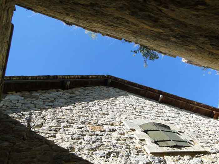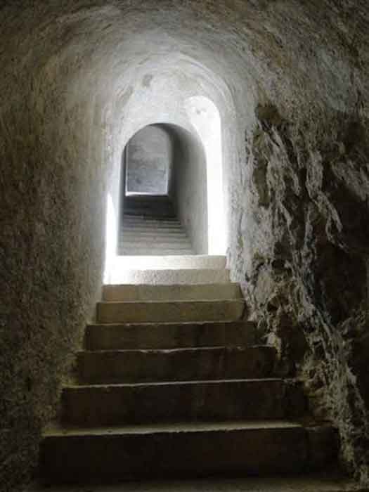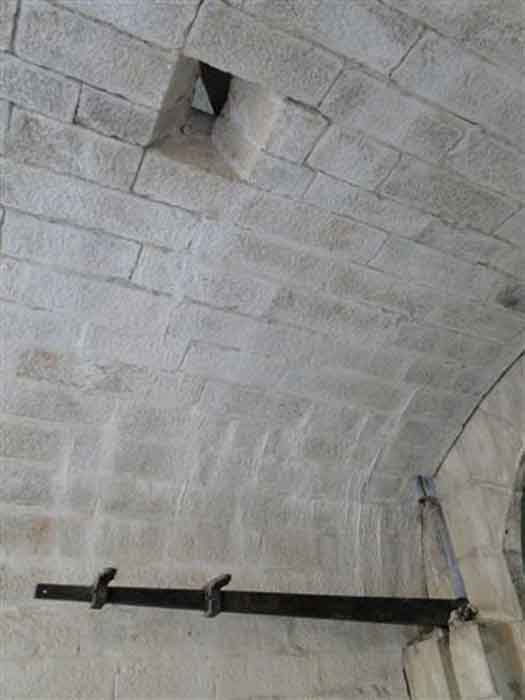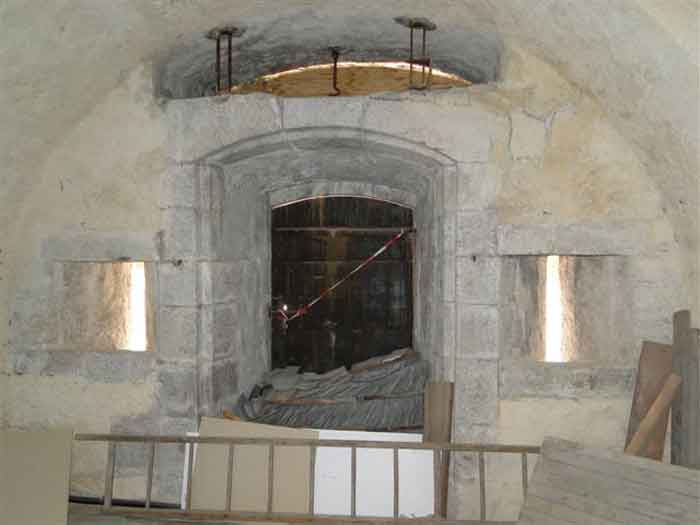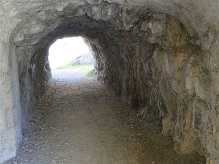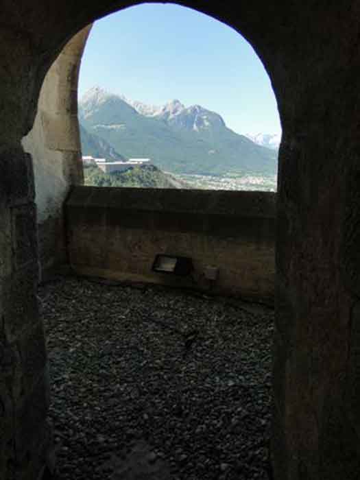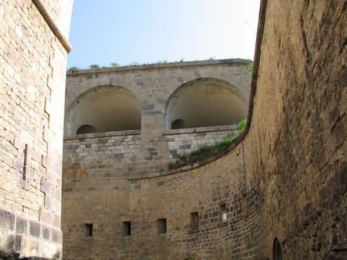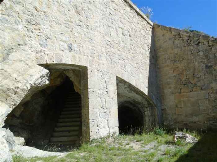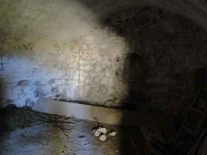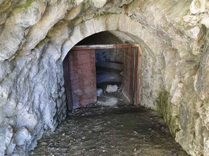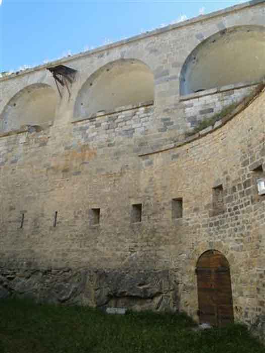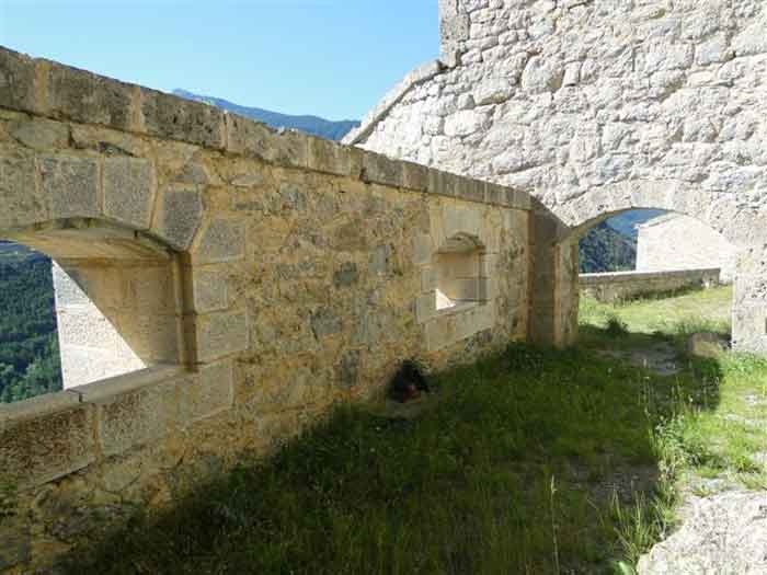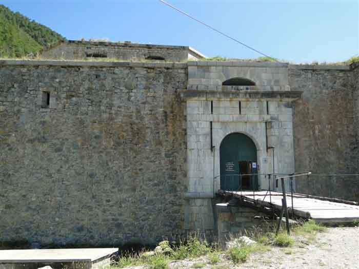 Fortress of Briançon, north-north-west of the city. 1,450 m altitude. A tower with cut corners was built on this site as early as 1709. In 1815, following an enlargement, this tower became the redoubt of the work, which would be further transformed from 1830 to 1854. Militarily occupied until after 1870. A powder magazine with an airlock and lateral galleries is nestled in the hollow of the bastion to the right of the entrance. It defended the RN 94 (national road), coming from Italy.