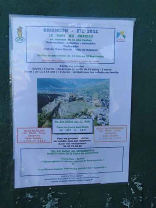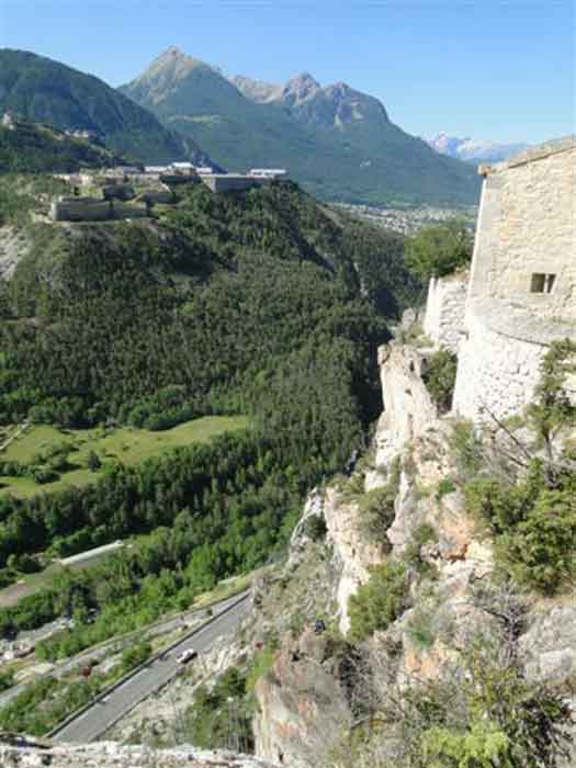 Place de Briançon, nord-nord-ouest de la ville. 1 450 m d'altitude. Une tour à pans coupés fut bâtie à cet endroit dès 1709. En 1815, à la suite d'un agrandissement, cette tour devint le réduit de l'ouvrage, lequel sera encore transformé de 1830 à 1854. Occupé militairement jusqu'après 1870. Un magasin à poudre avec sas et galeries latérales est niché au creux du bastion à droite de l'entrée. Il défendait la RN 94 (route nationale), venant d'Italie.