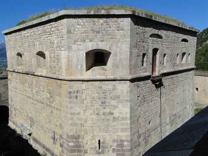 Festung von Briançon, nordnordwestlich der Stadt. 1 450 M ü M. Ein Turm mit abgeschrägten Ecken wurde an dieser Stelle bereits 1709 erbaut. 1815 wurde dieser Turm nach einer Vergrößerung zum Reduit des Werks, welches nochmals von 1830 bis 1854 umgebaut werden wird. Militärisch besetzt bis nach 1870. Ein Pulvermagazin mit Schleuse und seitlichen Galerien ist in der Mulde des Bastions rechts des Eingangs eingebettet. Es verteidigte die RN 94 (Nationalstraße), die aus Italien kommt.