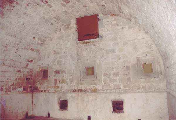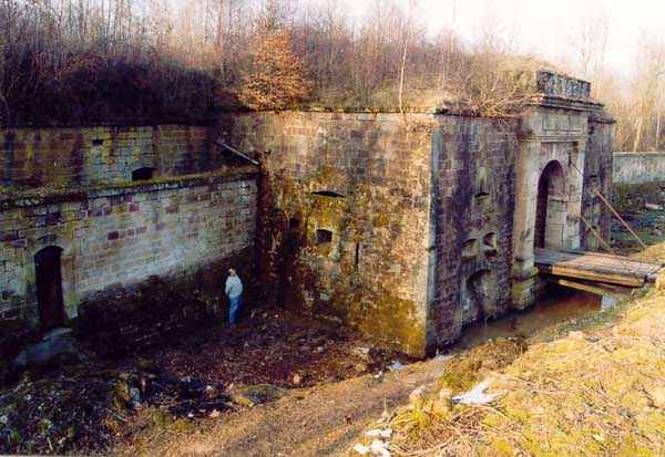Entrenched camp of Épinal, west of the town, 1882-1883. ± 375 m/alt., east of the Bouzey fort. Called Férino fort. It has the shape of a regular pentagon whose sides (fronts I-II and IV-V) have been shortened. The entrance building projects into the gorge and serves as a double caponier. Its drawbridge at the Devèze is intact and beautiful. In early 2004, major clearing work revealed the sad reality of the enormous damage to the escarpment wall. Beautiful powder magazine with enormous skylight covering the entrance hall. The buildings in the center of the battery are shaped like a "W." They are municipal property and house its road maintenance equipment.