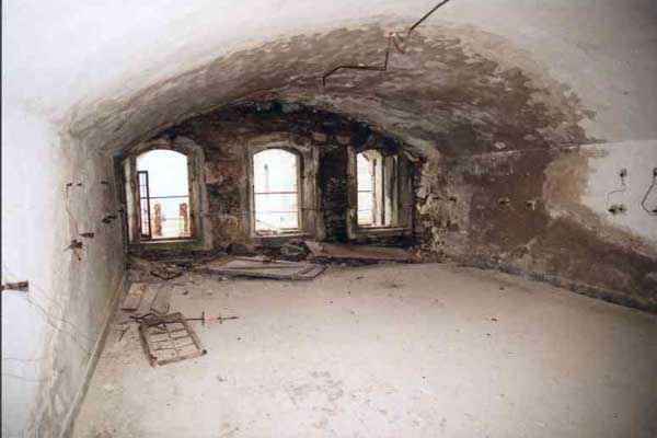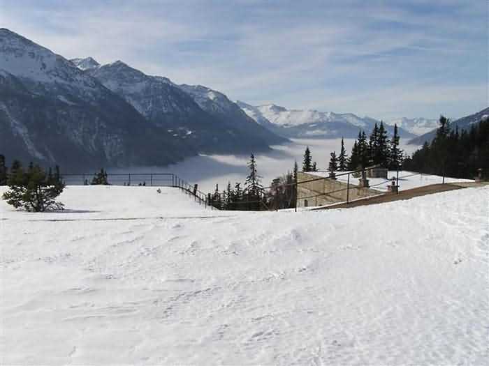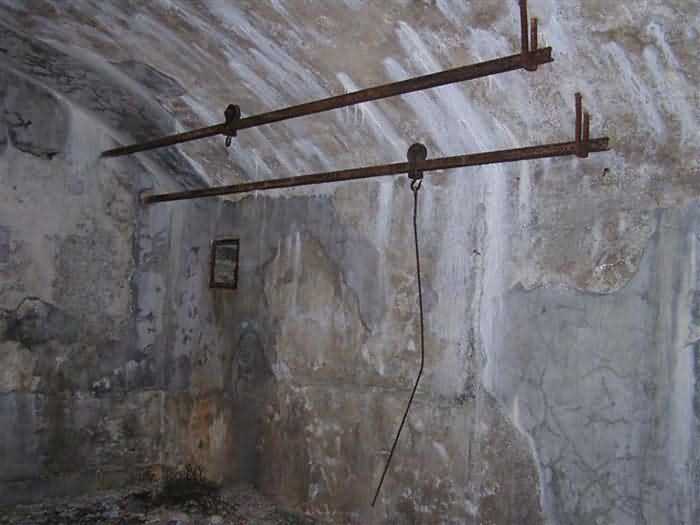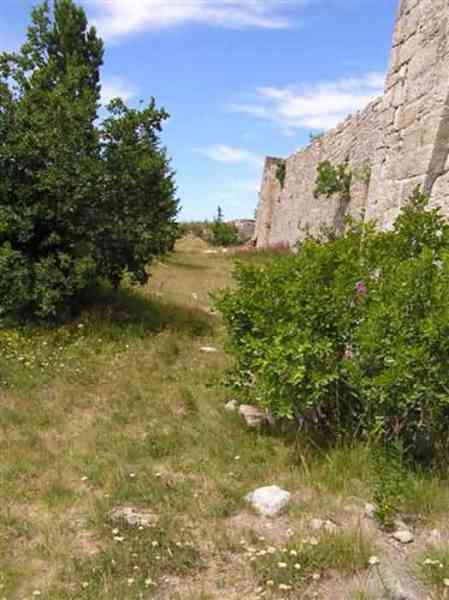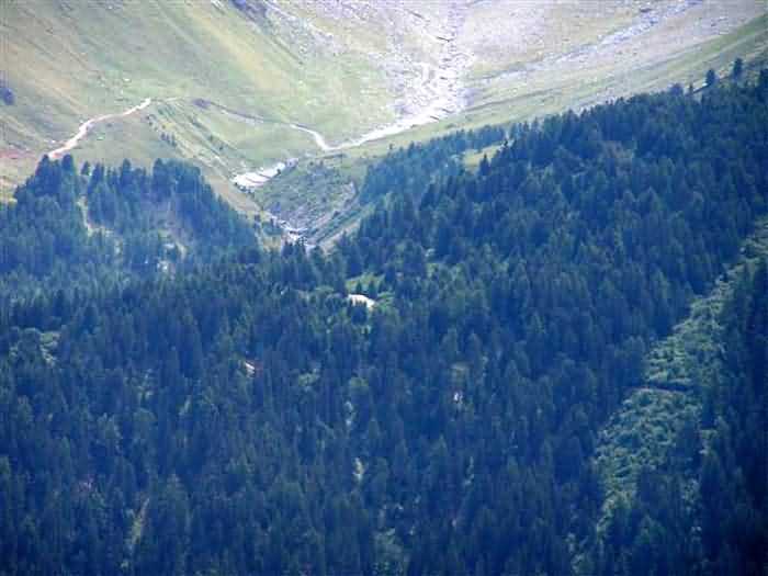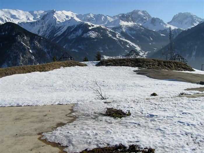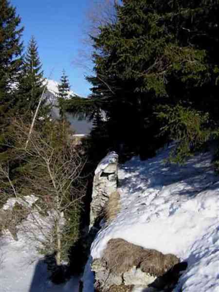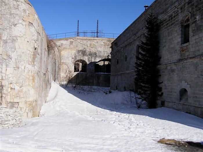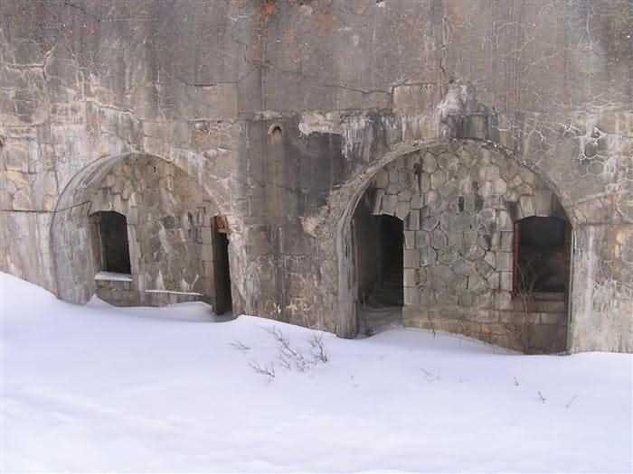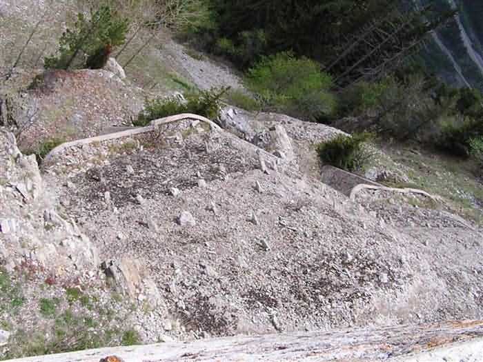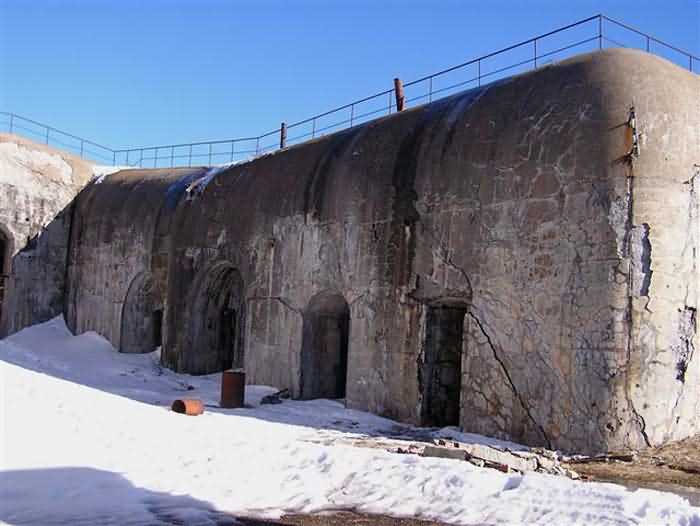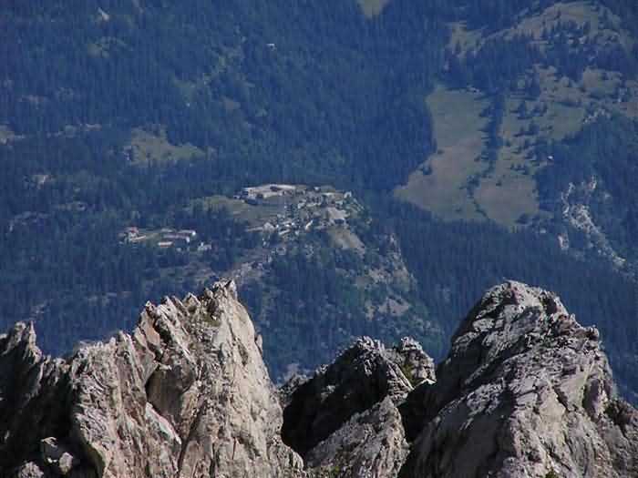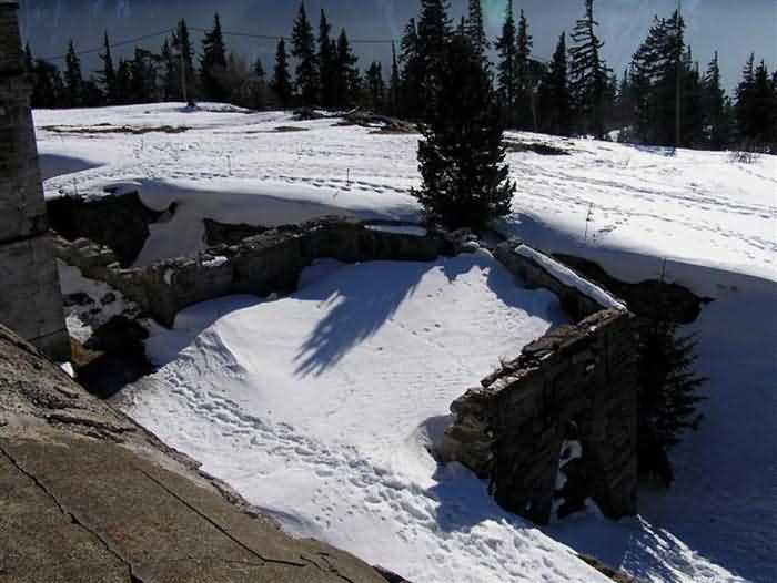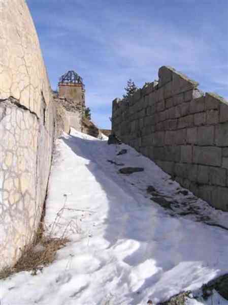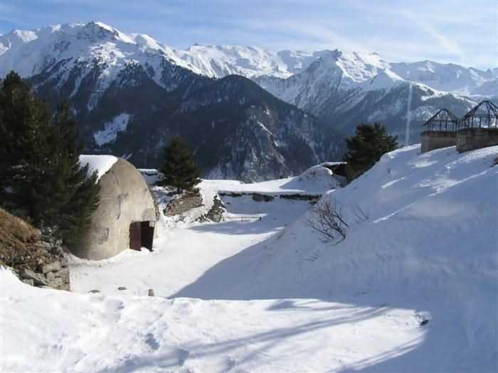 Fortress of Modane, 1600 m west of the town, 1886-1892; reorganized in 1913-1916 and left unfinished. 1737 m/alt. 202 men + ? officers. Twelve 155L de Bange Mle 77 guns, including four in annexes, to which are added the four guns of the rock casemates; no guns intended for flanking nor curved-fire guns are listed. Work for the protection of Replaton fort, it plays this role both by its overlooking position and its counter-battery capabilities. Located on a secondary summit of mont du Sapey (the slightly higher main summit is occupied by the homonymous redoubt), it occupies a highly strategic position in the heart of Maurienne, being capable of covering all dangerous directions. Indeed, it benefits from clear 360° views while dominating the valley by 700 m; it is particularly well positioned facing the penetration axes; covers the Haute Maurienne and the exits of Mont Cenis pass, dominates the Fréjus tunnel, and finally faces the passes south of Modane. Fort Sapey is one of the rare, if not the only, mountain fort of the central massif type. Its perimeter presents as an irregular heptagon, adapted to the terrain. The scarp is surmounted by a crenellated wall and preceded by a ditch with unreveted counterscarp, except to the north and east where the rocky escarpment constitutes an obstacle of certain value. The perimeter, with seven salients, is defended by four bastionets. No. 1 is located at one-third of the gorge front to flank the drawbridge. Each of these bastionets is equipped with vertical rifle loopholes and foot loopholes. Bastionet 5, facing Haute Maurienne, appears largely oversized compared to the others. Access to the work is by crossing an under-pivoting drawbridge, similar to that of Replaton fort. Past this drawbridge, one enters the place d'armes. At its center rises a masonry building whose roof alone is covered with a layer of earth. This is the peacetime barracks; the quarters and functional rooms are distributed over two floors. In the basement of the western abutment, in other words the end adjacent to the ditch, a 175 m³ cistern is installed; above it remains a metal reservoir without its pump. The drinking water supply was provided by tapping a spring near the hamlet of Polset, the water was conveyed by a cast iron pipe about 4500 m long, emerging into the ditch through a perfectly visible rock-cut trench. The place d'armes is bordered by an inverted U-shaped building, entirely covered with a 2.5 m thick special concrete carapace. Unlike Replaton fort, the concrete carapace here is glued to the facade of the casemates; moreover, many openings have been blocked up, particularly the magazines on the ground floor. This is one of the first responses of engineers to the shell crisis, a crisis that occurred while construction was in full swing. This building, besides several magazines and workshops, houses an oven for 250 rations, a stable for three horses, and a watering trough. The two building corners are occupied by a magazine for assembled projectiles and a powder magazine with a capacity of 45 tonnes. As for the casemated war quarters, they partially occupy the floor of the central wing of the building. From the rear corridor, near the assembled ammunition magazine, opens a gallery leading to the optical post. The latter is installed under bastionet 3. The two embrasures are practically placed opposite each other in the flanks of the bastionet, their exits being in the field of fire of the foot loopholes. The right optical embrasure (towards west) is sharply inclined downwards, allowing communication with Loutraz barracks (right bank of Arc in Modane, detachment of the 99th RIA (Alpine Infantry Regiment) - then quarters of the 71st BAF from 1935, and of the 81st and 91st BAF (Alpine Fortress Battalion) following the 1939 mobilization). As for the left embrasure, it seems to correspond with Télégraphe fort. An inclined plane bypasses the building to the south; it is via this path that one accesses the artillery battery located in front of the building. This battery, whose front curve allowed treating all dangerous directions, comprises five platforms and two traverse-shelters distributed as follows: a double platform, a first traverse-shelter, two single platforms separated by a full traverse, a traverse-shelter, a triple broken platform in chevron, a full traverse and, finally, a single platform. Let us dwell for a moment on the traverse-shelters. The first, located in the northeast angle of the battery, has its entrance at an angle. As for the second, placed in the center of the battery, it is built exactly in the axis of Haute Maurienne; moreover, it has the particularity of being covered with a 2.5 m special concrete carapace, like the building, making it particularly visible. Both traverse-shelters are closed by metal doors still in place. To increase firepower in the two dangerous directions (to the east facing the exits of Mont Cenis pass, to the south facing the exits of the southern passes), two annex batteries are built and designated North and South annexes. The first, located north of the work, near salient III, comprises two single platforms separated by a traverse-shelter. The second, set back to the southwest, features a double platform bordered by a traverse-shelter perpendicular to the firing direction. In both annexes, the constructions are in masonry covered with earth; the traverse-shelters, equipped with arms, are again oriented facing east. If, at its completion in 1892, the work offered good guarantees for its occupants, it was quickly overtaken by artillery progress. Two factors come into play: the development and precision of time-fuze fire on one hand, and the development of mountain artillery on the other. The latter point deserves explanation: the creation of alpine troops, in France as in Italy, leads to the development of transportable artillery on muleback, i.e., capable of doing without a road network that was very limited at the 