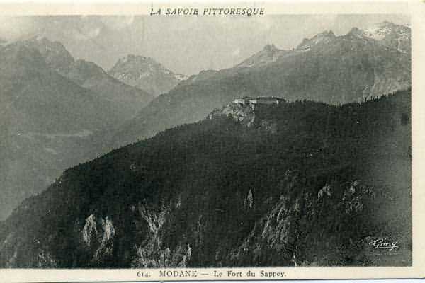 Festung von Modane, 1600 m westlich der Stadt, 1886-1892; reorganisiert 1913-1916 und unvollendet gelassen. 1737 M ü M. 202 Mann + ? Offiziere. Zwölf Geschütze 155L de Bange Mle 77, davon vier in Annexen, zu denen die vier Geschütze der Felsunterstände hinzukommen; keine Geschütze für die Bestreichung noch Kurvenfeuer-Geschütze sind verzeichnet. Werk zum Schutz des Forts Replaton, erfüllt diese Rolle sowohl durch seine überlegene Lage als auch durch seine Gegenbatterie-Möglichkeiten. Auf einem Nebengipfel des Mont du Sapey gelegen (der kaum höhere Hauptgipfel ist von der gleichnamigen Redoute besetzt), nimmt es eine hochstrategische Position im Herzen des Maurienne-Tals ein, da es alle gefährlichen Richtungen bestreichen kann. Tatsächlich bietet es freie Sicht auf 360° bei gleichzeitiger Überhöhung des Tals um 700 m; es ist besonders günstig gegenüber den Einfallsachsen gelegen; bestreicht das obere Maurienne-Tal und die Ausgänge des Mont-Cenis-Passes, beherrscht den Fréjus-Tunnel und liegt schließlich den Pässen südlich von Modane gegenüber. Fort Sapey ist eines der wenigen, wenn nicht das einzige, Gebirgsfort vom Typ mit Zentralmassiv. Sein Umriss zeigt sich als unregelmäßiges Siebeneck, an das Gelände angepasst. Die Escarpe ist von einer Zinnenmauer gekrönt und von einem Graben mit nicht verkleideter Konterescarpe vorgelagert, außer im Norden und Osten, wo die Felsböschung ein Hindernis von beträchtlichem Wert darstellt. Der Umfang mit sieben Ausspringungen wird von vier Bastionetten verteidigt. Nr. 1 ist im ersten Drittel der Kehle platziert, um die Zugbrücke zu bestreichen. Jede dieser Bastionetten ist mit senkrechten Schießscharten und Fußscharten ausgestattet. Bastionette 5, Richtung oberes Maurienne-Tal, erscheint im Vergleich zu den anderen deutlich überdimensioniert. Der Zugang zum Werk erfolgt über eine unten kippbare Zugbrücke, ähnlich der des Forts Replaton. Nach Überquerung dieser Zugbrücke betritt man den Exerzierplatz. In dessen Mitte erhebt sich ein Mauerwerksgebäude, dessen Dach allein mit einer Erdschicht bedeckt ist. Es handelt sich um die Friedenskaserne; die Stuben und Funktionsräume sind auf zwei Stockwerke verteilt. Im Keller des westlichen Widerlagers, mit anderen Worten dem grabenseitigen Ende, ist eine Zisterne von 175 m³ installiert; darüber befindet sich ein Metallbehälter ohne Pumpe. Die Trinkwasserversorgung erfolgte durch die Erschließung einer Quelle in der Nähe des Weilers Polset, das Wasser wurde durch eine etwa 4500 m lange Gusseisenleitung zugeführt, die durch einen deutlich sichtbaren Felssprengungsgraben in den Graben mündete. Der Exerzierplatz wird von einem umgekehrt U-förmigen Gebäude gesäumt, das vollständig von einer 2,5 m dicken Spezialbetonschicht überzogen ist. Im Gegensatz zum Fort Replaton ist die Betonschicht hier an der Fassade der Kasematten angebracht; zudem wurden zahlreiche Öffnungen vermauert, insbesondere die Magazine im Erdgeschoss. Dies ist eine der ersten Antworten der Ingenieure auf die Krise der Torpedogranaten, die eintrat, als der Bau in vollem Gange war. Dieses Gebäude beherbergt neben mehreren Magazinen und Werkstätten einen Ofen für 250 Rationen, einen Stall für drei Pferde und eine Tränke. Die beiden Gebäudeecken sind von einem Magazin für fertige Geschosse und einem Pulvermagazin mit einer Kapazität von 45 Tonnen belegt. Die kasemattierten Kriegsstuben befinden sich teilweise im Obergeschoss des Mittelflügels des Gebäudes. Vom hinteren Korridor, in der Nähe des Magazins für fertige Munition, führt eine Galerie zur optischen Station. Letztere ist unter Bastionette 3 installiert. Die beiden Scharten sind praktisch einander gegenüber in den Flanken der Bastionette platziert, ihre Ausgänge liegen im Schussfeld der Fußscharten. Die rechte optische Scharte (nach Westen) ist deutlich nach unten geneigt und ermöglicht die Kommunikation mit der Kaserne von Loutraz (rechtes Ufer der Arc in Modane, Detachement des 99. RIA (Gebirgsinfanterieregiment) - dann Standort des 71. BAF ab 1935, und der 81. und 91. BAF (Gebirgsfestungsbataillon) nach der Mobilmachung 1939). Die linke Scharte scheint mit dem Fort Télégraphe zu korrespondieren. Eine Rampe umgeht das Gebäude im Süden; über diesen Weg gelangt man zur Geschützbatterie vor dem Gebäude. Diese Batterie, deren Frontkurve es ermöglichte, alle gefährlichen Richtungen zu behandeln, umfasst fünf Geschützstellungen und zwei Traversenunterstände, verteilt wie folgt: eine Doppelstellung, ein erster Traversenunterstand, zwei Einzelstellungen getrennt durch eine volle Traverse, ein Traversenunterstand, eine dreifache gebrochene Stellung in Chevron-Form, eine volle Traverse und schließlich eine Einzelstellung. Verweilen wir einen Moment bei den Traversenunterständen. Der erste, im Nordostwinkel der Batterie platziert, hat seinen Eingang schräg. Der zweite, in der Mitte der Batterie platziert, ist genau in der Achse des oberen Maurienne-Tals gebaut; außerdem ist er, ähnlich wie das Gebäude, mit einer 2,5 m dicken Spezialbetonschicht bedeckt, was ihn besonders sichtbar macht. Beide Traversenunterstände sind mit Metalltüren verschlossen, die noch vorhanden sind. Um die Feuerkraft in den beiden gefährlichen Richtungen zu erhöhen (im Osten gegenüber den Ausgängen des Mont-Cenis-Passes, im Süden gegenüber den Ausgängen der südlichen Pässe), werden zwei Annexbatterien errichtet und als Annex Nord und Süd bezeichnet. Die erste, nördlich des Werks in der Nähe von Saillant III, umfasst zwei Einzelstellungen, getrennt durch einen Traversenunterstand. Die zweite, zurückgesetzt im Südwesten, weist eine Doppelstellung auf, die von einem Traversenunterstand senkrecht zur Schussrichtung flankiert wird. In beiden Annexen sind die Bauwerke aus Mauerwerk mit Erdbedeckung; die Traversenunterstände mit Armen sind wiederum nach Osten ausgerichtet. Wenn das Werk bei seiner Fertigstellung 1892 gute Garantien f