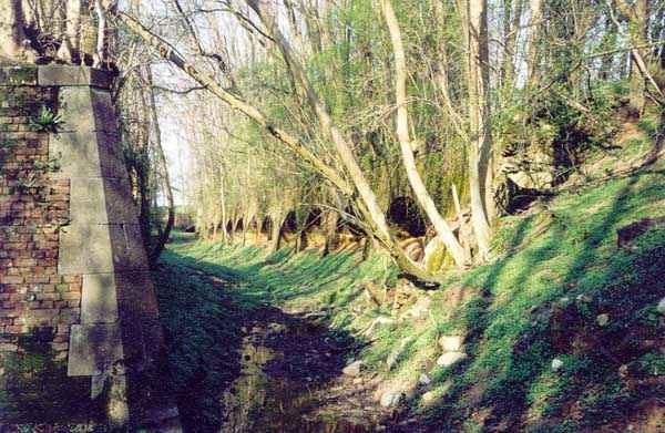 Fortress of Maubeuge, north of the city, 1878-1881. 163 m/alt. Named fort Brocard. Modernized in 1914, it received a 75 turret (S III) and its armored observatory, which would be operational at France's entry into the war. Large pentagon with a "V"-shaped gorge whose center was provided with a double curtain wall housing the entrance porch. It occupied a key position along the N 2 towards Mons. Attacked from the first day of the siege, it resisted, under very large caliber fire, until the surrender of the place on September 7, 1914. The fort was completely razed in the interwar period to establish a small Maginot work with 2 blocks. Today pasture land, the fort has preserved its ditches with its counterscarp with discharge arches and some sections of walls of its semi-detached escarp.