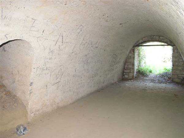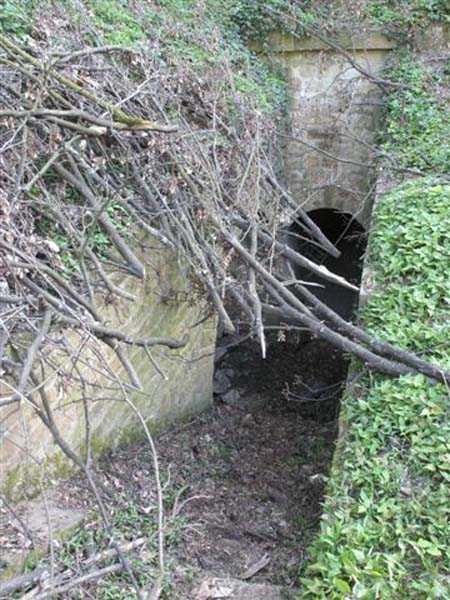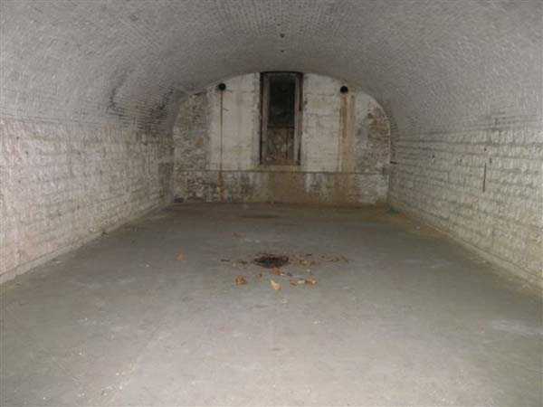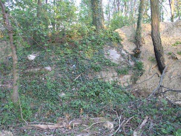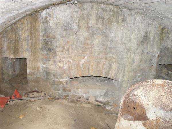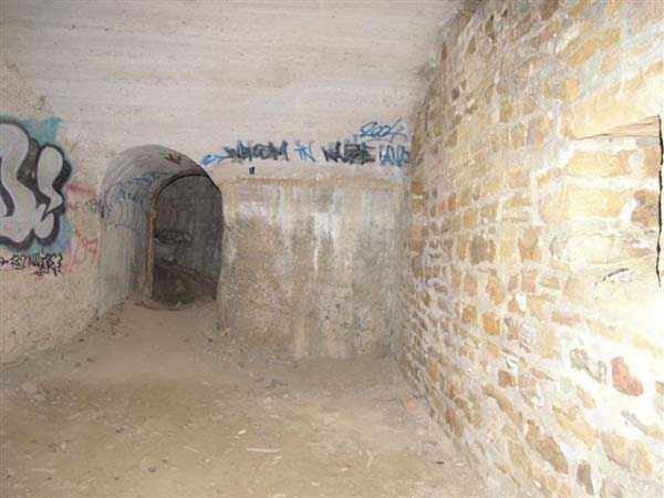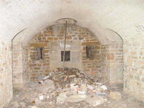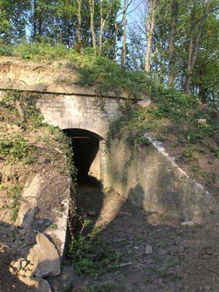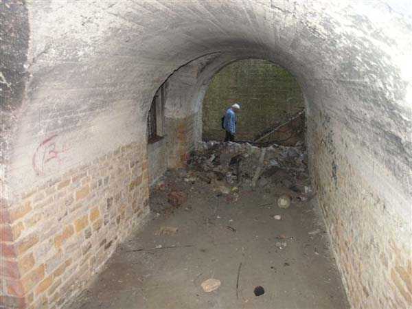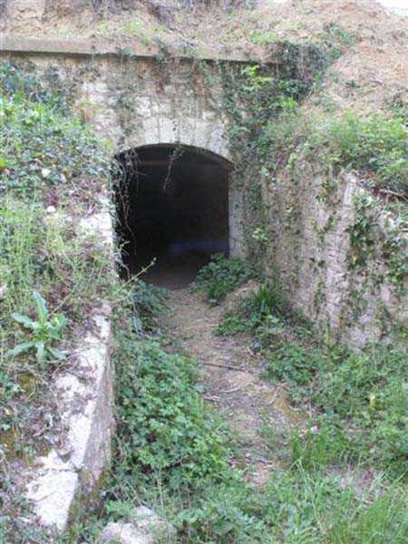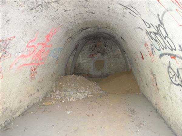 Fortress of Lyon, north-north-east of the city, 1878. 290 m above sea level. Located 2,500 m west of Fort Vancia, it swept the road from Mâcon to Chalon-sur-Saône while ensuring the protection of the interval between Vancia and the Monts d’Or. Of trapezoidal shape, this battery is characterized by its narrowness. Indeed, the barracks occupy most of the long curtain at the centre of the gorge; directly behind the quarters, beyond the circulation corridor, we find the powder magazine, which is itself flanked by a covered passage giving access to the central traverse of the head front. Hard to do better. The entrance is also located in the gorge curtain, to the left of the barracks. It was only marked by two pilasters and had no porch. On the glacis, it was preceded by a ravelin preventing it from being taken in enfilade by flat fire. The barracks, in the bottom of the ditch, comprise 6 bays of 16 x 6 m, of which the four central ones were devoted to housing the 80 troops. The 2 officers and 4 non-commissioned officers of the garrison lodged in one of the two remaining bays. On either side of this barracks opens an escarp gallery that connects the wing of salient II and the double caponier of salient III as well as, obviously, the two counterscarp casemates. This escarp gallery is, very logically, absent from the head front and the two caponiers therefore do not join. Concrete is omnipresent in this gallery; only the crenellated face and some piers are in rubble masonry, the rest, i.e., all vaults from 150 cm above the ground as well as the walls opposite the embrasures, are in plain concrete. The powder magazine, with a capacity of 38,500 kilos, is thus devoid of narrow lateral ducts, the role of the latter being taken over by the circulation corridor behind the quarters on the one hand and by a covered passage parallel to the head front on the other. Access to the crawl spaces under the storage room is from the quarters corridor. The gorge front has no traverse shelters. The lateral fronts each have one, enveloped. The head front, however, has three, of which, as already mentioned, the central one is rooted and two others with only one wing wall, thus, more prosaically, half enveloped. This is a particularly unusual case. All rooms of these traverses are ogival and in plain concrete, as are their arms. The barracks itself is covered by a 150 cm thick concrete slab. While the quarters have their vault, in basket handle, made of brick masonry, the two lateral bays have their piers in rubble masonry up to about 150 cm, followed by plain concrete. The circulation corridor behind these quarters leads to two staircases located in its extension and giving onto two small courtyards, each serving two traverse shelters. Today (04/2007), the battery has lost much of its splendour. The ravelin is overgrown with vegetation, the entire ditches are filled in, the escarp gallery can only be traversed as far as the wing, and new infrastructure (sports?) rises above the traverses of the head front. Note that accesses to the traverses have been provided from these new buildings via the arms of the traverses; however, we know nothing about the future fate of what remains of the battery, be it its barracks, its powder magazine, or what remains of its escarp gallery. Of the double caponier, we could only glimpse two metres of its drip course and part of its concrete covering. Even if it may lack originality, in our humble opinion, this battery, particular in more than one respect, would undoubtedly have deserved more consideration.