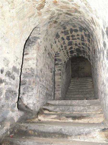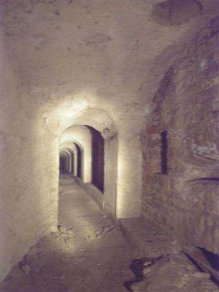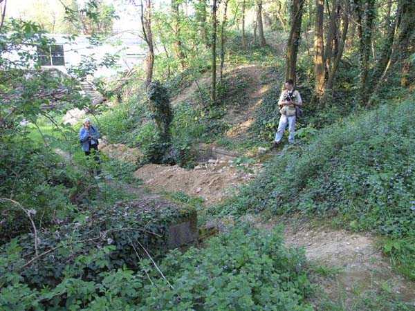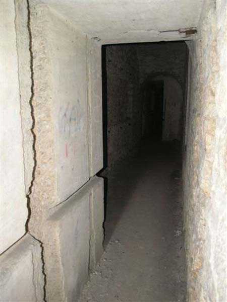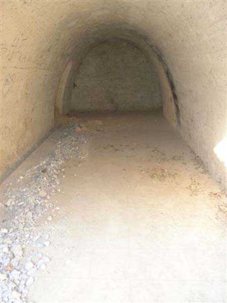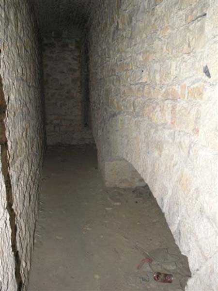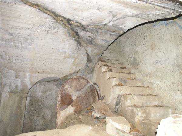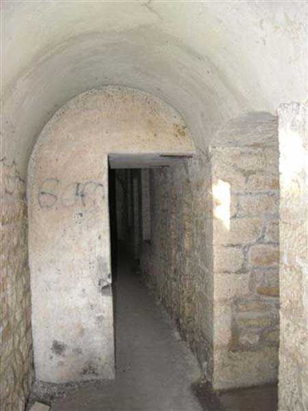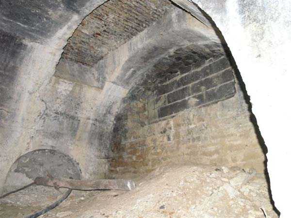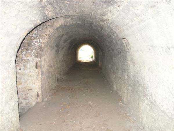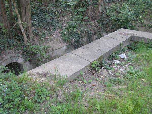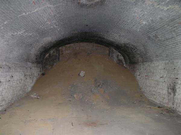 Fortress of Lyon, north-north-east of the city, 1878. 290 m above sea level. Located 2,500 m west of Fort Vancia, it swept the road from Mâcon to Chalon-sur-Saône while ensuring the protection of the interval between Vancia and the Monts d’Or. Of trapezoidal shape, this battery is characterized by its narrowness. Indeed, the barracks occupy most of the long curtain at the centre of the gorge; directly behind the quarters, beyond the circulation corridor, we find the powder magazine, which is itself flanked by a covered passage giving access to the central traverse of the head front. Hard to do better. The entrance is also located in the gorge curtain, to the left of the barracks. It was only marked by two pilasters and had no porch. On the glacis, it was preceded by a ravelin preventing it from being taken in enfilade by flat fire. The barracks, in the bottom of the ditch, comprise 6 bays of 16 x 6 m, of which the four central ones were devoted to housing the 80 troops. The 2 officers and 4 non-commissioned officers of the garrison lodged in one of the two remaining bays. On either side of this barracks opens an escarp gallery that connects the wing of salient II and the double caponier of salient III as well as, obviously, the two counterscarp casemates. This escarp gallery is, very logically, absent from the head front and the two caponiers therefore do not join. Concrete is omnipresent in this gallery; only the crenellated face and some piers are in rubble masonry, the rest, i.e., all vaults from 150 cm above the ground as well as the walls opposite the embrasures, are in plain concrete. The powder magazine, with a capacity of 38,500 kilos, is thus devoid of narrow lateral ducts, the role of the latter being taken over by the circulation corridor behind the quarters on the one hand and by a covered passage parallel to the head front on the other. Access to the crawl spaces under the storage room is from the quarters corridor. The gorge front has no traverse shelters. The lateral fronts each have one, enveloped. The head front, however, has three, of which, as already mentioned, the central one is rooted and two others with only one wing wall, thus, more prosaically, half enveloped. This is a particularly unusual case. All rooms of these traverses are ogival and in plain concrete, as are their arms. The barracks itself is covered by a 150 cm thick concrete slab. While the quarters have their vault, in basket handle, made of brick masonry, the two lateral bays have their piers in rubble masonry up to about 150 cm, followed by plain concrete. The circulation corridor behind these quarters leads to two staircases located in its extension and giving onto two small courtyards, each serving two traverse shelters. Today (04/2007), the battery has lost much of its splendour. The ravelin is overgrown with vegetation, the entire ditches are filled in, the escarp gallery can only be traversed as far as the wing, and new infrastructure (sports?) rises above the traverses of the head front. Note that accesses to the traverses have been provided from these new buildings via the arms of the traverses; however, we know nothing about the future fate of what remains of the battery, be it its barracks, its powder magazine, or what remains of its escarp gallery. Of the double caponier, we could only glimpse two metres of its drip course and part of its concrete covering. Even if it may lack originality, in our humble opinion, this battery, particular in more than one respect, would undoubtedly have deserved more consideration.