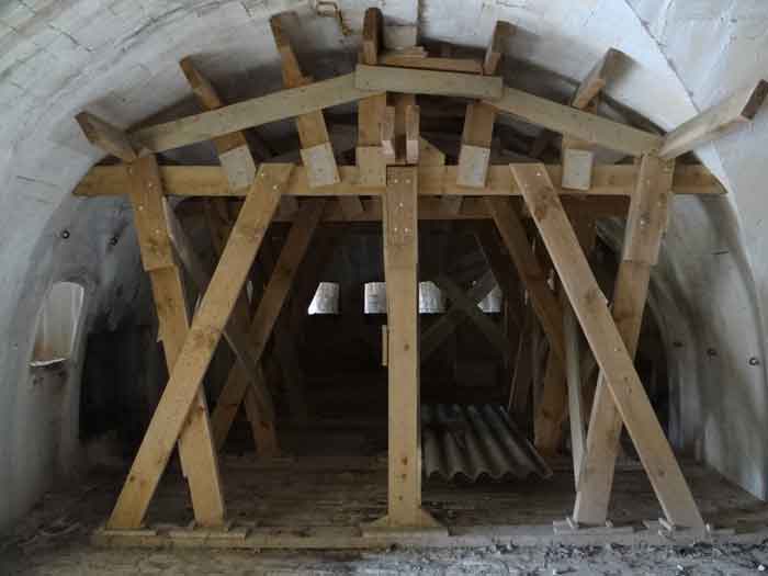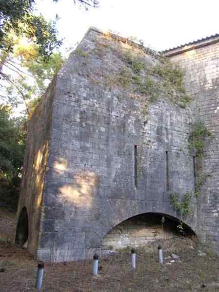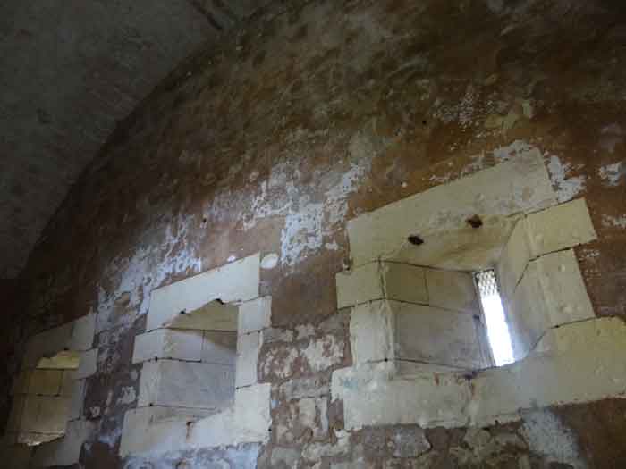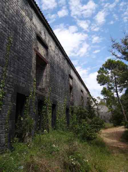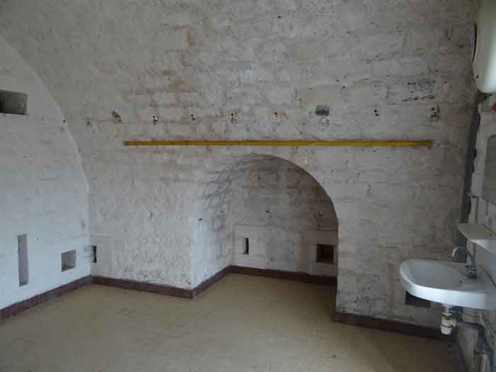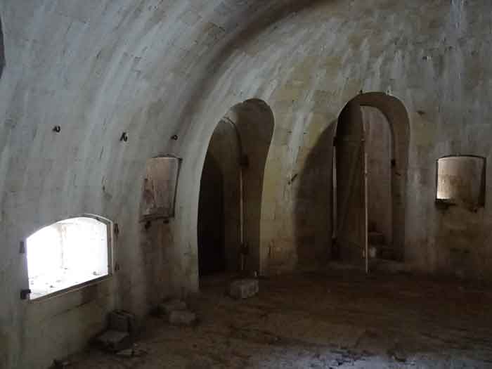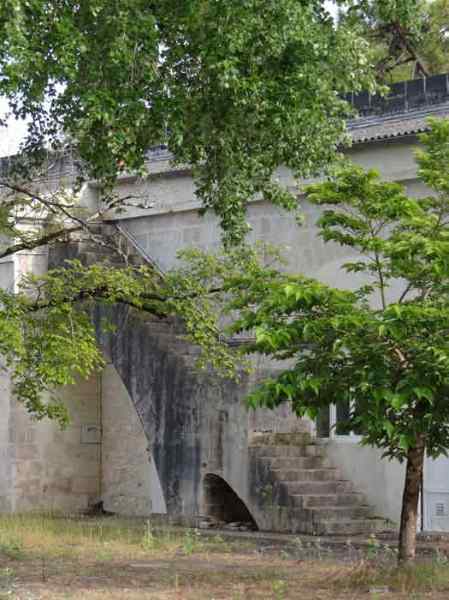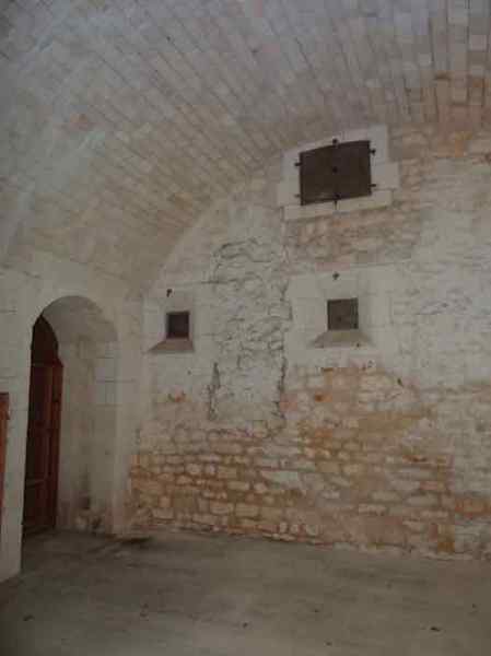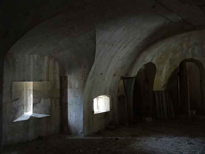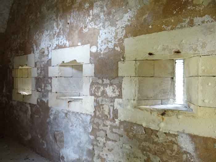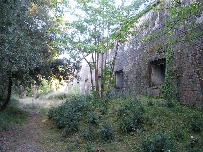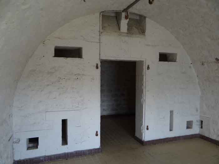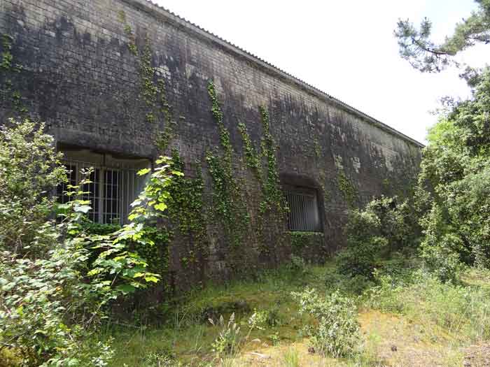 Fortress of Rochefort, north-eastern point of Oléron Island. The genesis of this fort was to say the least tumultuous, between projects accepted then refused after work commenced and other multiple procrastinations. Ultimately, the fort is organized around a Tower Model 1811 No. 1, much more classical than its counterpart in Boyardville, which tower will constitute not only a defensive reduit, but also ensure protection of the gorge front. From 1849 to 1854, a veritable fort, with a dry ditch, will be attached to the tower. The gorge scarp will join two of its opposite angles, so that two of its faces project into the ditch, like a double caponier devoid of a front, having only its two flanks. The entrance, with a drawbridge, will be placed directly to the right of the tower. The fort will take the shape of a very elongated pentagon (± 130 m in length). Two double caponiers will complete the close defense system, at salients II and IV. The latter are very pretty with their foot embrasures surmounted by three rifle embrasures and connected to the top of the scarp (peaking at 8.20 m) not by a mass of earth, but by rubble masonry. Along their entire length, the gorge and fronts I-II, II-III and IV-V have casemates backing onto them, whether for quarters or magazines. The garrison was on the order of 500 men who served 40 guns. The fort is perfectly defiladed from view; to achieve this, topsoil had to be brought in to form all the slopes and then seed them, as sand was not suitable for this. In 1860, high rifle embrasures with setbacks are pierced in the right half of the scarp. Very probably around 1880, the front III-IV is remodeled and provided with three traverse-shelters whose outer ones, and especially the left one, are more imposing than usual. This left traverse furthermore includes two doors. The firing steps give us no clue as to the caliber in place; 19 c, 24 c or 27 c? A report of the Coastal Defense Commission, dated 19 February 1886, reports an annex battery built from 1877 to 1880 and an advanced work built in 1878-1879. The annex battery will be named the Saumonards battery. As for the advanced work, it must be this pretty private property (09/2007) surrounded by an enclosure with corner bastionnets, on the gate of which a plaque "Redoute Beauregard" appears. From the outside no gun emplacement could be detected, but it is possible that the fort's bombardment battery was supported by a medium caliber battery. Not knowing if this designation is official or initiated by the current owner (it is a plaque stuck against one of the entrance pillars) we do not include this redoubt in a separate short article. Finally, in front of the fort, level with its right side, was the exterior post of the line of 47 torpedoes ensuring the protection of the passage south of the Boyard shoal. This post was ideally to be assisted by a searchlight and, necessarily, an electric power plant. Does that still exist? We do not know.