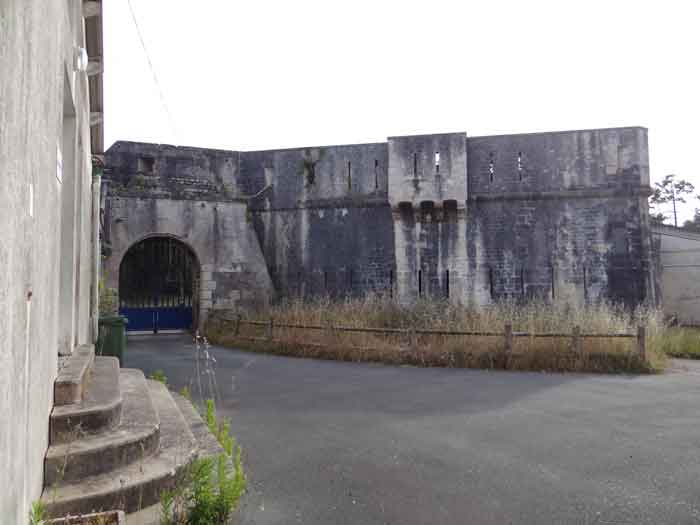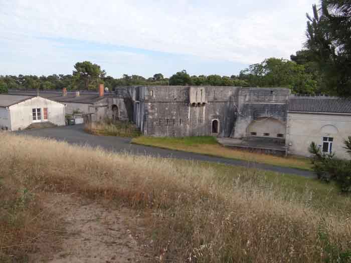 Place de Rochefort, pointe nord-est de l’Île d’Oléron. La genèse de ce fort fut pour le moins tourmentée, entre projets acceptés puis refusés après commencement des travaux et autres multiples tergiversations. En définitive, le fort s’articule autour d’une tour Mle 1811 n° 1, bien plus classique que sa consoeur de Boyardville, laquelle tour constituera non seulement un réduit défensif, mais aussi assurera la protection du front de gorge. De 1849 à 1854, un véritable fort, avec fossé sec va être accolé à la tour. L’escarpe de gorge viendra se joindre à deux de ses angles opposés, de façon à ce que deux de ses faces ressortent dans le fossé, telle une caponnière double dépourvue de face, n’ayant que ses seuls deux flancs. L’entrée, avec pont-levis, sera placée directement à la droite de la tour. Le fort affectera la forme d’un pentagone très étiré (± 130 m de longueur). Deux caponnières doubles compléteront le dispositif de défense rapprochée, aux saillants II et IV. Ces dernières sont très jolies avec leurs créneaux de pied surmontés de trois créneaux de fusillade et reliées au sommet de l’escarpe (culminant à 8,20 m) non pas par une masse de terre, mais par de la maçonnerie de moellons. Sur toute leur longueur, la gorge et les fronts I-II, II-III et IV-V se voient adossées des casemates, que ce soit pour le logement ou des magasins. La garnison était de l’ordre de 500 hommes lesquels servaient 40 canons. Le fort est parfaitement défilé aux vues ; pour ce faire, il a fallu amener de la terre végétale pour constituer tous les talutages puis les ensemencer, le sable ne convenant pas pour cela. En 1860, de hauts créneaux de fusillade à ressauts sont percés dans la moitié droite de l’escarpe. Très probablement vers 1880, le front III-IV se voit remanié et pourvu de trois traverses-abris dont les extérieures, et surtout celle de gauche, sont plus imposantes qu’à l’ordinaire. Cette traverse de gauche comprend d’ailleurs deux portes. Les pas de tir ne nous livrent aucun indice quant au calibre en place ; 19 c, 24 c ou 27 c ? Un procès-verbal de la Commission de défense des Côtes, datant du 19 février 1886, fait état d’une batterie annexe construite de 1877 à 1880 et d’un ouvrage avancé construit en 1878-1879. La batterie annexe sera dénommée batterie des Saumonards. Quant à l’ouvrage avancé, il doit s’agir de cette jolie propriété privée (09/2007) cernée d’une enceinte avec bastionnets d’angles, au portail de laquelle figure une plaque "redoute Beauregard". Depuis l’extérieur aucun emplacement de canon n’a pu être décelé, mais il est du domaine du possible que la batterie de bombardement du fort ait été appuyée par une batterie de moyen calibre. Ne sachant si cette dénomination est officielle ou initiée par l’actuel propriétaire (il s’agit d’une plaque collée contre un des pilastres de l’entrée) nous ne reprenons pas cette redoute dans un articulet distinct. Enfin, en avant du fort, à hauteur de sa droite, se trouvait le poste extérieur de la ligne de 47 torpilles assurant la protection de la passe au sud de la longe de Boyard. Ce poste devait idéalement être assisté d’un projecteur et, forcément, d’une usine électrique. Cela existe-t-il encore ? Nous l'ignorons.