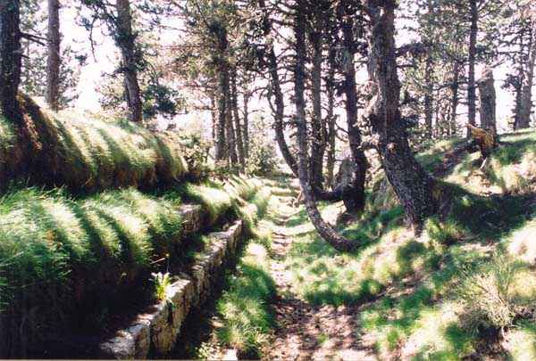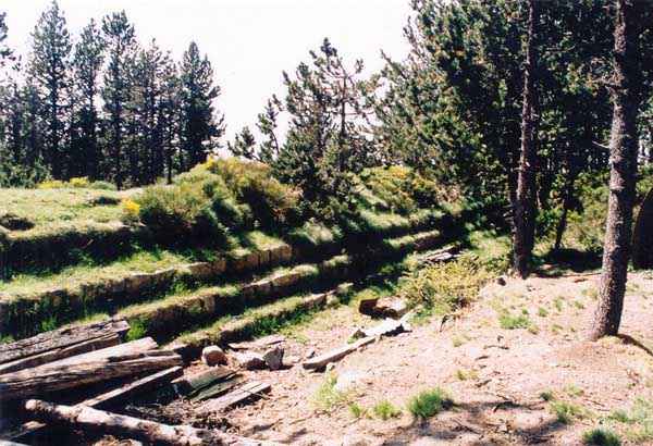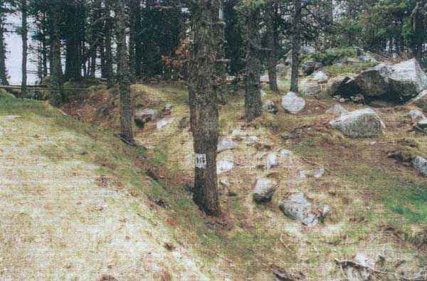 Dept 66 (Pyrénées-Orientales) NE of Mont-Louis, 2034 m/alt. Apart from a current inventory, we know nothing about this fortification near Mont-Louis, which it overlooks. The perimeter has the shape of a diamond. The escarp is made of flowing earth and the counterscarp is uncovered. The ditches are only defended from an infantry parapet at the top of the escarp. The gorge does not (no longer?) have a ditch. The barracks are limited to two pieces. No traverse, artillery platform, or powder magazine can be seen today. A second infantry position is located below, overlooking the N115. Today, the position (fort, work, redoubt, etc.?) of Serrat de la Tausse is difficult to access and is located in or on the edge of a firing range. At the gorge, there are recent blockhouses designed to protect soldiers during firing. Unaware of their purpose and when they were built, we mention them for information.