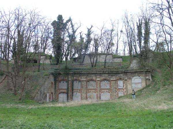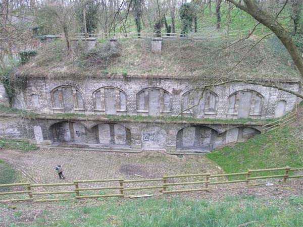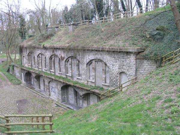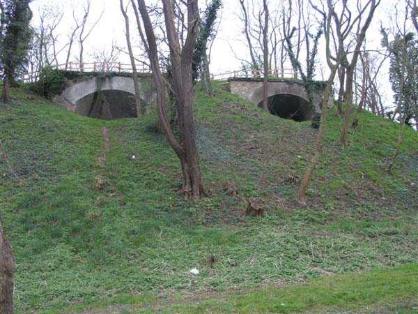 Fortress Paris, north-northeast of the city, 1875-1878. 88 m/alt. Large cavalier fort for 1053 men and 58 guns including 2 under Mougin Mle 1876 turret (received on 25/11/1884). Trapezoidal in shape, its gorge was slightly crooked, making it a pentagon. The break in the gorge is marked by a double caponier. The fort included 4 casemates for indirect fire, supported two by two in the gorge parapet and of which three embrasures, reinforced with concrete, are still visible. The ditches are now filled in, the barracks with ten bays on two levels is entirely covered with embankments, as is its artillery cavalier. Only the left wing remains, topped with three shelter traverses. Some distance from each of the wings of the barracks was a large powder magazine connected to the circulation corridor at the rear of the barracks and, therefore, by shafts, to the cavalier. The powder handling was therefore carried out under cover up to the cavalier's firing platforms. Crosspieces 1 and 2 of the lower battery frame the descent towards the wing of salient III, but here too, everything is walled up. If the Mougin turret is still in place, its substructures are inaccessible. This turret was installed vertically above the service shaft of the double caponier of salient IV. This double caponier had three guns per direction of fire. A 1911 project, which was not followed up, granted it, like many other forts in the area, 1 T 75 and 2 T Mi. Supported by the batteries of the same name and Pierrefitte. Monitored the Bourget plain. This fort suffered very significant damage in 1944 and its future now seems decided: it has become a public park, an island of greenery where, although every opening has been carefully walled up, one can still observe many architectural artifices that will delight enthusiasts. Several mentions engraved in keystones are still discernible, medallions engraved in lintels still adorn the five bays of the officers' pavilion, while the left wing of the large barracks shows Renaissance-style elements, completely useless except for the pleasure of the eyes. The ditches have been completely filled in, but the rampart street of the head front is crossed by a path. The shelter-crossings that it runs along all have two levels. On the other hand, the large barracks, the ditches, the powder magazines, everything is completely filled in. As for the Mougin dome, the children of the neighboring towns wear out their pants so much by sliding on it that it shines almost like a new penny. (03/2007).