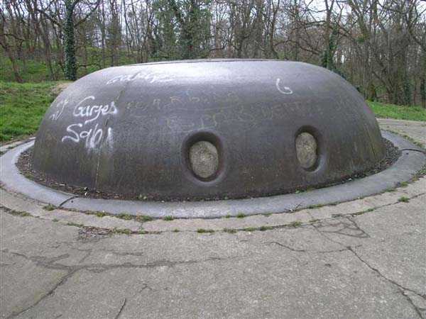 Festung Paris, nordnordöstlich der Stadt, 1875–1878. 88 m ü. M. Großes Kavalierfort für 1053 Mann und 58 Geschütze, davon 2 unter dem Turm Mougin Mle 1876 (erhalten am 25.11.1884). Das Fort hatte eine trapezförmige Form und seine Schlucht war leicht gekrümmt, sodass es ein Fünfeck bildete. Der Bruch in der Schlucht ist durch eine doppelte Kaponniere gekennzeichnet. Das Fort umfasste 4 Kasematten für indirektes Feuer, die paarweise in der Brustwehr der Schlucht abgestützt waren und von denen noch drei mit Beton verstärkte Schießscharten sichtbar sind. Die Gräben sind heute zugeschüttet, die Kaserne mit zehn Jochen auf zwei Ebenen ist vollständig mit Wällen bedeckt, ebenso wie ihr Artilleriekavalier. Nur der linke Flügel ist noch erhalten, gekrönt von drei Schutztraversen. In einiger Entfernung von jedem Flügel der Kaserne befand sich ein großes Pulvermagazin, das mit dem Verkehrskorridor an der Rückseite der Kaserne und somit über Schächte mit dem Kavalier verbunden war. Die Pulverhandhabung erfolgte daher unter Deckung bis zu den Feuerplattformen des Kavaliers. Die Querstücke 1 und 2 der unteren Batterie rahmen den Abstieg zum Flügel des Frontbogens III ein, aber auch hier ist alles zugemauert. Falls der Turm von Mougin noch vorhanden ist, sind seine Unterkonstruktionen unzugänglich. Dieser Turm wurde senkrecht über dem Dienstschacht der Doppelkaponnerie des Frontbogens IV installiert. Diese Doppelkaponnerie hatte drei Geschütze pro Feuerrichtung. Ein nicht weiterverfolgtes Projekt aus dem Jahr 1911 stattete ihn, wie viele andere Forts in der Gegend, mit 1 T 75 und 2 T Mi aus. Unterstützt von den gleichnamigen Batterien und Pierrefitte. Überwachte die Ebene von Bourget. Dieses Fort erlitt 1944 erhebliche Schäden, und seine Zukunft scheint nun besiegelt: Es ist zu einem öffentlichen Park geworden, einer grünen Insel, in der man, obwohl jede Öffnung sorgfältig zugemauert wurde, noch immer viele architektonische Kunstgriffe bewundern kann, die Liebhaber begeistern werden. Mehrere in Schlusssteine eingravierte Erwähnungen sind noch erkennbar, in Stürze eingravierte Medaillons schmücken noch immer die fünf Joche des Offizierspavillons, während der linke Flügel der großen Kaserne Elemente im Renaissancestil aufweist, die außer der optischen Freude völlig nutzlos sind. Die Gräben wurden vollständig zugeschüttet, doch die Wallstraße der Frontseite wird von einem Weg gekreuzt. Die Unterstände, an denen er entlangführt, sind alle zweistöckig. Die großen Kasernen, die Gräben, die Pulvermagazine – alles ist hingegen vollständig zugeschüttet. Was die Kuppel von Mougin betrifft, so verschleißen die Kinder der Nachbarstädte ihre Hosen beim Ausrutschen so sehr, dass sie fast wie ein neuer Penny glänzt. (03/2007)