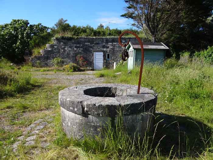 Place de Rochefort, nord de l’Île d’Aix, 1878-1880. Le projet de 1878 prévoyait un front de tête arqué avec un épais parapet derrière lequel, de part et d’autre d’un magasin à poudre à l’épreuve, on aurait disposé les canons de 19 c. Ces derniers, au nombre de quatre, auraient été séparés par des traverses pleines ou creuses. Les extrémités de l’arc frontal se repliaient alors vers l’entrée de la batterie, au centre de la gorge. Cette dernière, rectiligne, aurait possédé fossé et mur d’enceinte. La contrescarpe aurait même été coiffée d’un ouvrage avancé pentagonal, sorte de ravelin surmonté d’un parapet de tir pour l’infanterie. Une série de huit locaux, casernement et magasins, se seraient adossés à la gorge, de part et d’autre d’une entrée en tunnel. La réalisation sera toute autre ; vue du ciel, cette batterie avait une configuration très particulière ; on l’eût pensée dotée d’oreilles de chat pour reprendre un terme architectural rarement usité. En effet, armée de deux canons de 24 séparés par deux autres de 19 cm placés un peu en retrait des premiers, les emplacements avancés des 24 c (sur affûts P.C.) garantissaient à ces derniers un azimut de près de 190°. Les canons de 19 c étaient quant à eux encadrés par des traverses creuses soigneusement alignées. La gauche de la batterie était constituée par un merlon de terre protégeant un magasin à poudre, très probablement modèle 1879. Un second magasin à poudre, plus petit, limitait l’emprise de la batterie sur sa droite. La gorge était désormais ouverte. Après 1889, les canons de 24 c seront remplacés par deux autres canons de 19 c car les fonds de la zone battue ne permettaient pas aux nouveaux navires de s’y risquer. Le personnel organique nécessaire était de 38 hommes. Cette batterie existe toujours, elle se situe dans une propriété privée et ses plates-formes sont envahies par la végétation. Elle n’est pas entretenue et ses restes sont peu lisibles. On y trouve un puits, un magasin bétonné où stagnent 25 cm d’eau et deux de ses trois traverses (les extérieures) ont des murs d’ailes à retours en gradins. (03/2008).