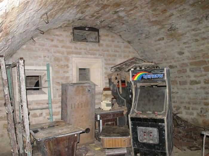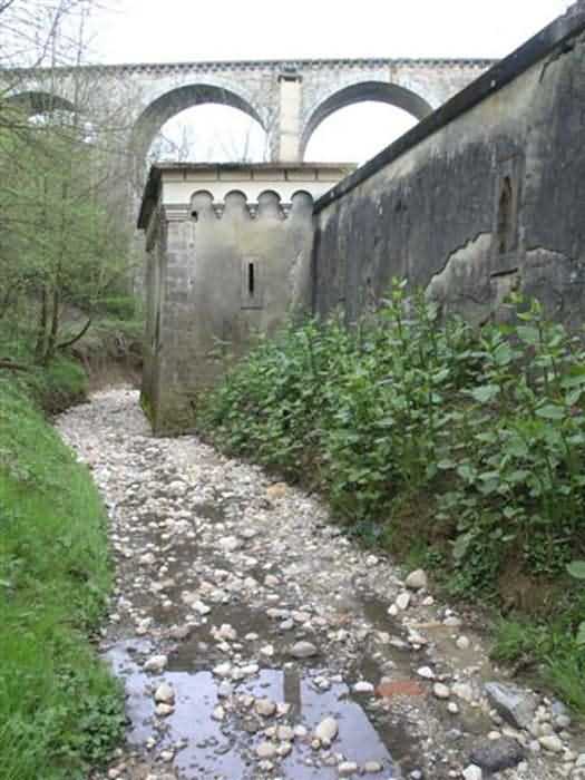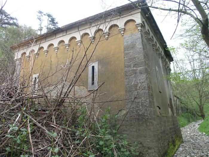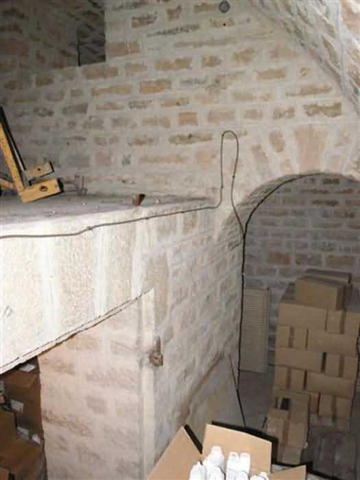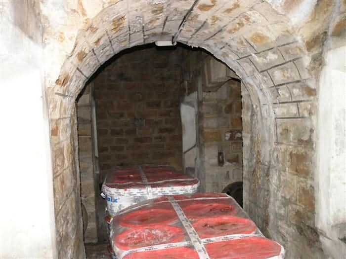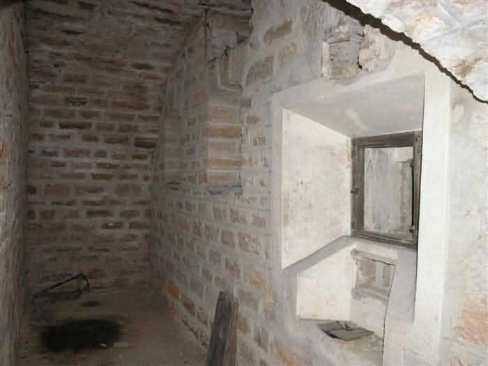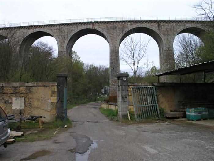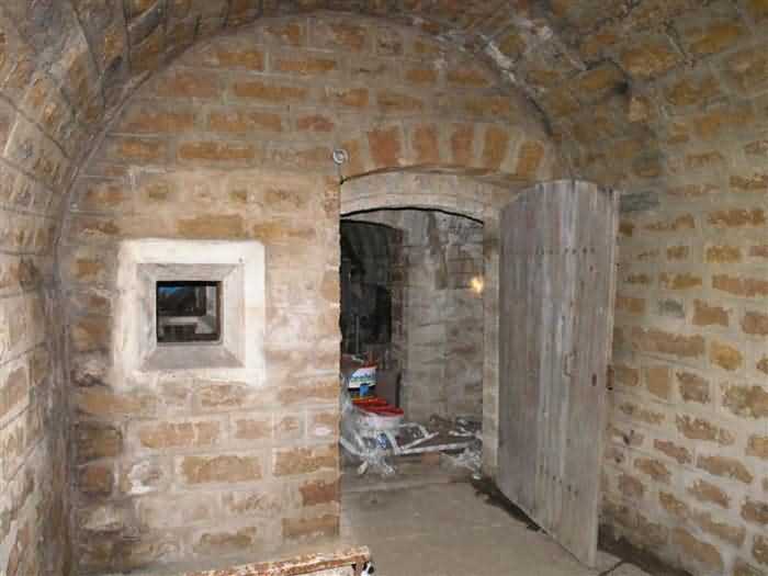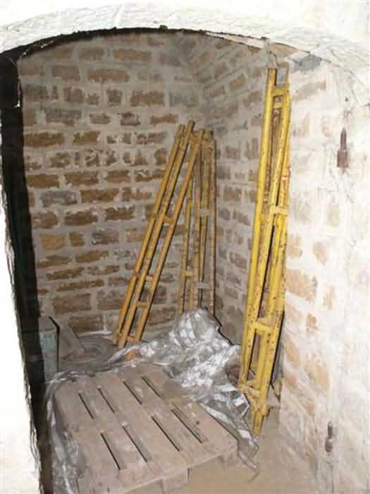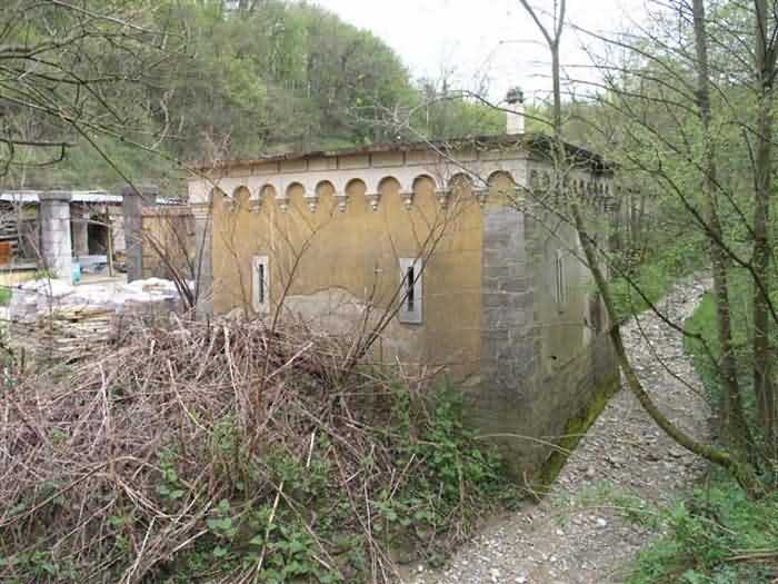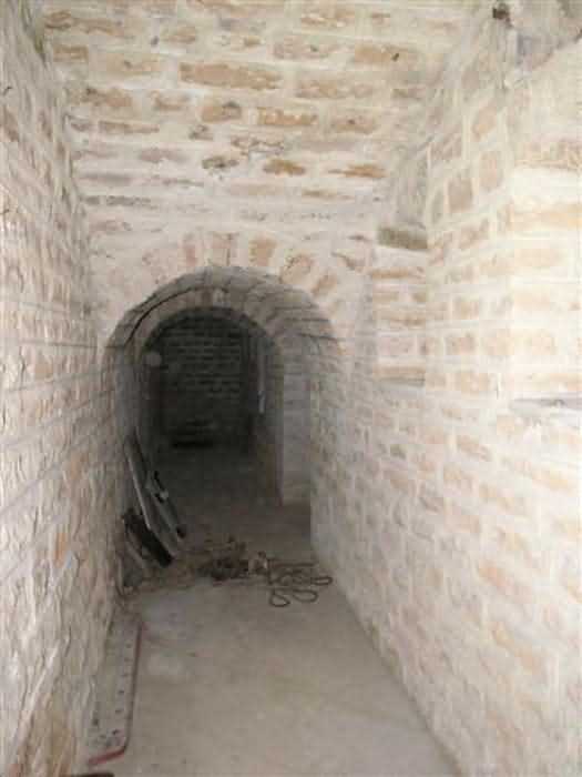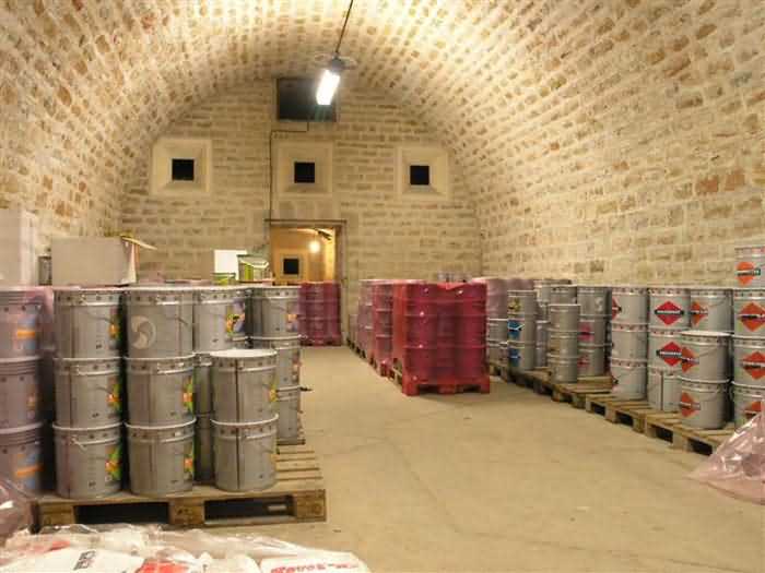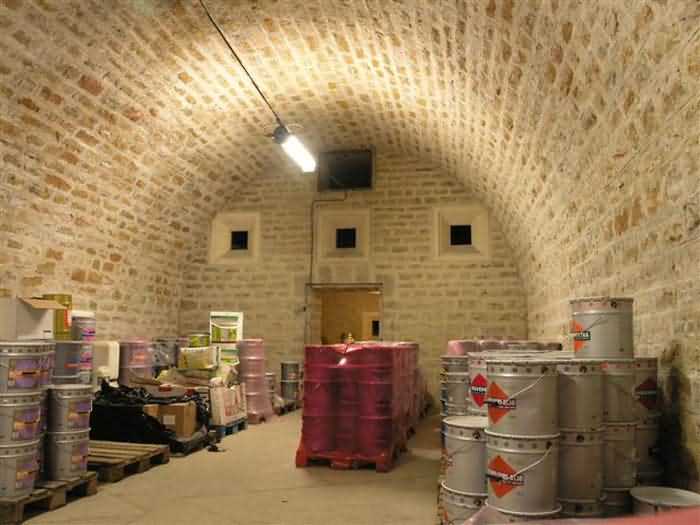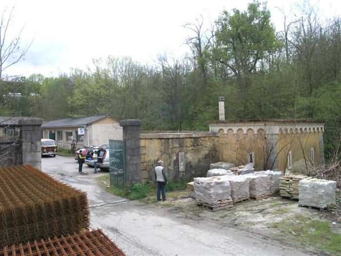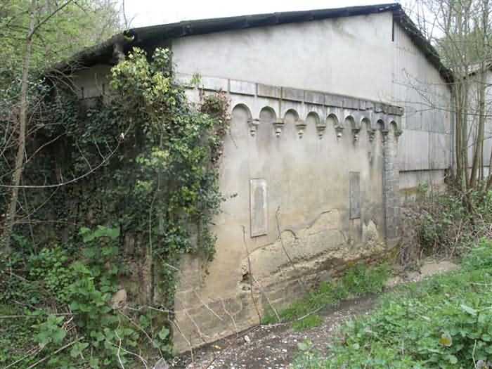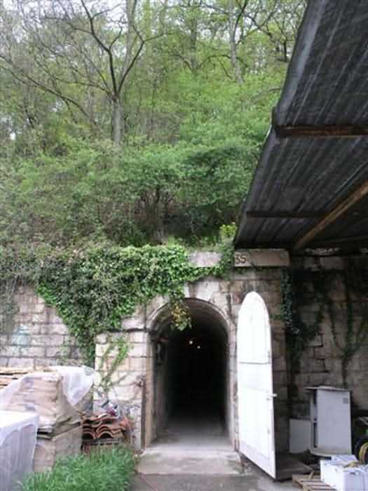 Fortress of Lyon, north-north-east of the city. Located behind the group of works composed of the forts of Vancia and the batteries of Sathonay and Sermenaz, in the hollow of a valley where a stream disappears, the bed of which runs along the enclosure of the magazine. It is located due south of the eponymous village, along the D 143 east of a railway viaduct. Contemporary with the sector magazine of Saint-Fons, it is also very similar, with a few rare details excepted. Instead of having three entrances aligned on the facade of the enclosure, there is only one; a second occupies the centre of one of the two small flanks. The central gallery is surmounted by the chronogram 1892. The internal layout is identical to that of Saint-Fons, but here we were able to enter and can testify to the excellent condition of the masonry. The main storage room (12 x 6 m) has on each small flank a lamp chamber with three embrasures. Access to these chambers is by narrow, turning staircases of eleven steps. These lamp chambers occupy the upper floor of the airlocks of the storage room, airlocks of 3.8 x 3.5 m. The first two galleries give access to each of these airlocks. A 14 m transverse gallery allows reaching the corridor separating the depots for cartridges and loaded projectiles, rooms which externally measure 16 x 5.8 m. Each had on its left small flank three lamp embrasures. The right small flank had only two, separated by a door. Two other doors, this time with two leaves, were pierced in the large flanks. Only two of the lamp embrasures of the cartridge magazine were brought up to the standards of the ministerial directive of 10 June 1893. The third access gallery opens onto the right small flank of these magazines after passing two 2 x 2 m rooms facing each other, 23 m from the entrance. It extends to finally reach 43 m in length, at which point it branches to the right, for 7 m, to serve four 4 x 3 m rooms facing each other in pairs, each with a modernised lamp embrasure. Most of the original doors are in place. The underground complex is in a rarely encountered state of preservation. There is only a little moisture in the four last-mentioned rooms. The masonry is superb and immaculate. One would think that of the large powder storage room was finished only a few days ago. It is, without contest, the most beautiful rock-cut magazine we have had the chance to see during our fifteen years of field work. Today (04/2008) privately owned, its galleries serve for the storage of goods of a painting company.