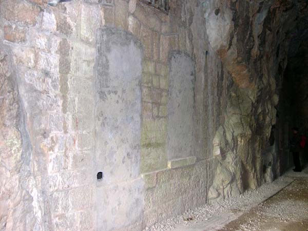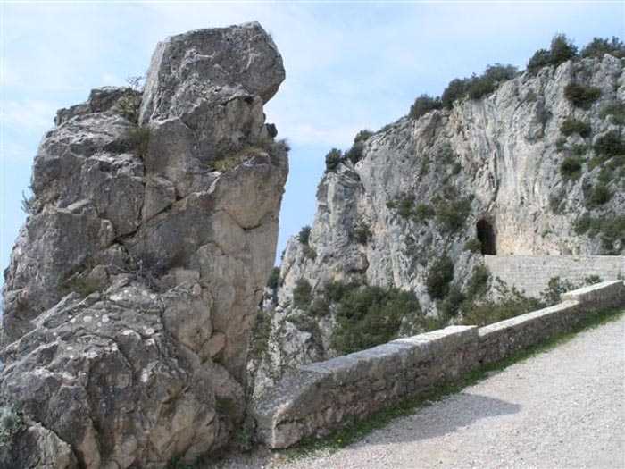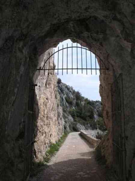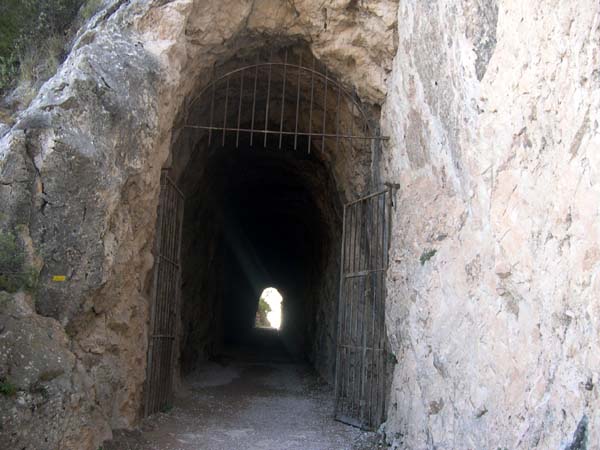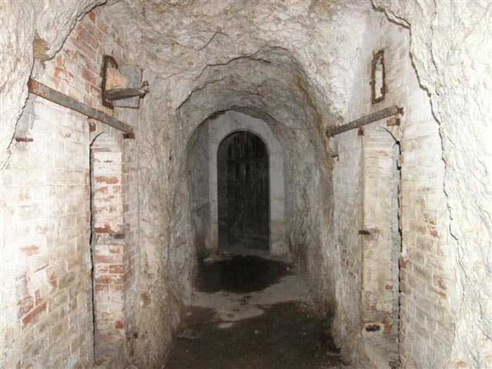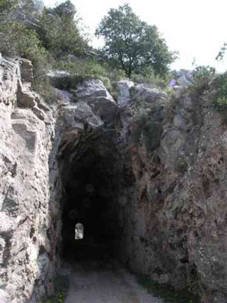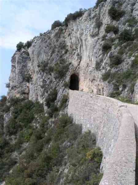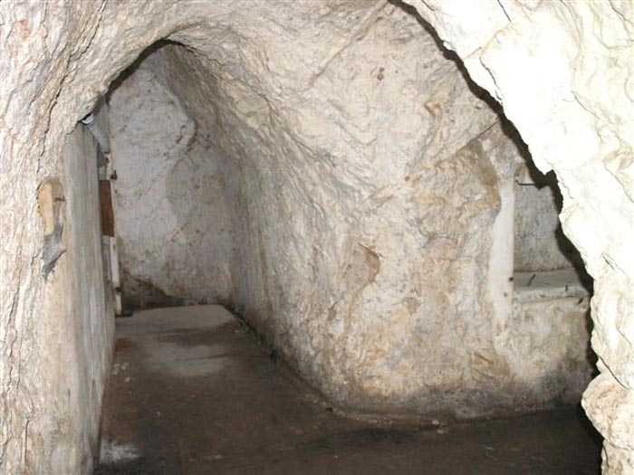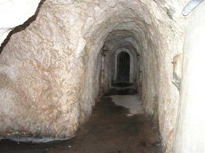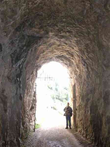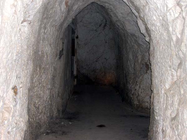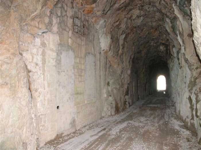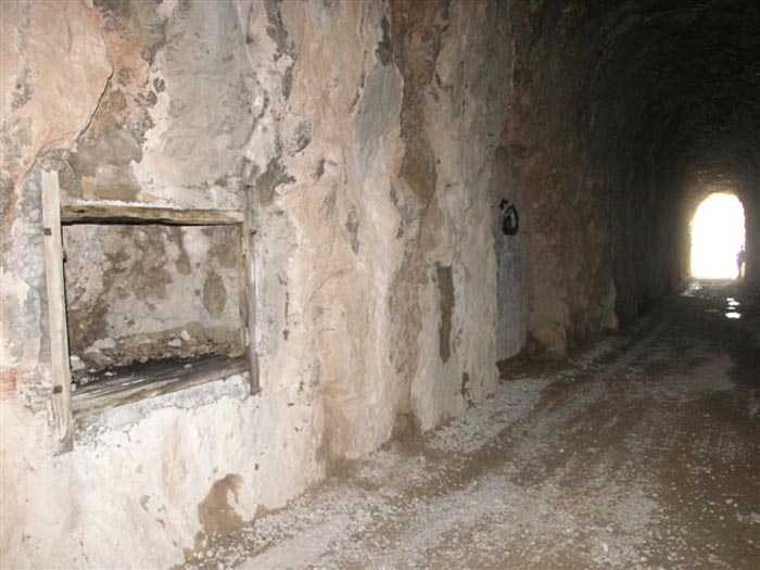 Fortress of Nice, east-northeast of the city, ± 1890. 650 m/alt. Rock magazine arranged in the side of a tunnel excavated for the passage of the strategic road leading from Revère to Forna. This tunnel, straight and about a hundred meters long, is located approximately 150 m behind and below Simboula battery. Contrary to what is observed in the Guigo tunnel, the magazine is situated in the center of the tunnel. From left to right: after two rooms serving the personnel (attested by field bed fixations), follows a loading workshop/magazine for loaded projectiles of 10 x 5 m. This magazine comprises two lamp embrasures and, opposite its entrance, on the right, escapes from it a gallery provided with two fuzes niches. These niches, masonry in terracotta bricks, were closed by a sliding door of which only the upper rail remains today (04/2008). At the end of this gallery, a diverticulum provided with a third niche, different because opening 70 cm from the ground, joins the tunnel on the right and, on the left, preceded by an airlock, a powder room, 4 m deep for a width of 7 m completes the whole. The ceiling of this vaulted room is in terracotta bricks with a trapdoor allowing if necessary to reach the extrados separated from the rock by a ventilated space. In the tunnel itself, between the two accesses to the magazine, a last niche, similar to that of the right corridor, has preserved its wooden frame. The General Council of Alpes-Maritimes has walled up all these rooms and, as expected, curious people have either drilled a simple orifice to see, or plainly arranged a passage, which is the case for the magazine. Nevertheless, the interior of the latter is very clean and the embrasures still show their duly grilled air admission and evacuation as well as a few meters of smoke vents. This magazine had the probable role of resupplying the magazines of Simboula batteries, but also those of Pin and Forna. It is therefore a sector magazine. Access to the tunnel is free.