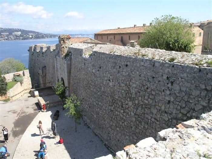 Place d'Antibes. 29 m/alt. Dénommé fort Reille et localement appelé fort Royal de Cannes. L'île Sainte-Marguerite est séparée du continent (cap de la Croisette) par un passage large de 1100 mètres environ. Superbe, les Espagnols la désignaient Joya incognita. Elle forme, avec l'île Saint-Honorat, le groupe des îles de Lérins. Élevé dès 1633 sur ordre de Richelieu, renforcé par les Espagnols et remanié par Vauban, ce fort adossé à la falaise est célèbre pour avoir été la prison de l'homme au masque de fer (Eustache Danger, paraît-il… à 90 % de certitude) mais aussi du maréchal Bazaine, lequel s'en évada le 10 août 1874 dans des conditions plutôt nébuleuses. Le front de terre comprend trois bastions encadrant deux courtines couvertes par des demi-lunes, le tout devancé par un chemin couvert traversé. Ce fort fut déclassé en 1889 (voir place d'Antibes) simultanément avec la batterie de la Convention occupant l'extrémité orientale de l'île. Les autres défenses de l'île, les forts de Monterey et du Ragon (d'Argon ou Dragon selon les sources) ainsi que la tour Batiguier (ruinée) étaient déjà abandonnés en tant qu'ouvrages militaires avant 1876. Le fort est resté dans le domaine militaire après son déclassement ; en 1894, on y trouvait un centre d'essai d'explosifs brisants. Ce centre n'a guère laissé de traces de ses activités. Contre toute attente, nous avons repéré les socles de deux batteries pour canons de 47 mm TR Mle 1887 sur le bastion à la droite de l'entrée (3 socles, peut-être 4 – il faudrait un peu piocher pour en avoir la certitude) ainsi que sur celui à l'arrière du donjon (au moins 2 socles). Ceux-ci sont bien dissimulés sous la végétation mais témoignent que le déclassement de 1889 fut rapidement remis en question. Chacune de ces batteries s'est vue par ailleurs ériger un magasin à projectiles sous forme de petites traverses peu ou prou à l'épreuve, mais toutefois recouvertes de terre. Le magasin à poudre (1693) érigé au creux du bastion du Roy, n'a pas été remis aux standards des magasins modèles de la seconde moitié du XIXème siècle. L'activité carcérale au fort, quant à elle, ne prendra fin qu'au début du XXème siècle. Depuis 1978, le fort Sainte-Marguerite est ouvert au public et sa visite vaut assurément le déplacement. Relevons-y la présence d'une magnifique caronade (1841 – installée sur la terrasse d'où s'échappa Bazaine) et d'un canon fondu en 1715, très décoré, retiré de la mer en 1995 seulement. La partie la plus ancienne du fort, aux fondations romaines, abrite désormais un musée de la mer. L'intérieur du fort comprend plusieurs rues jouxtées de bâtiments militaires, casernes, logements d'officiers (avec femme et enfants), et même une église (1658). Néanmoins, le côté militaire ne ressort nullement de l'aspect de ces constructions et, dans l'absolu, nous avons là un coquet village provençal au sein d'une forteresse. Pour les puristes et amateurs de fortification bastionnée, notons enfin la présence d'une caponnière à ciel ouvert menant à la demi-lune orientale. Propriété municipale depuis 1996.