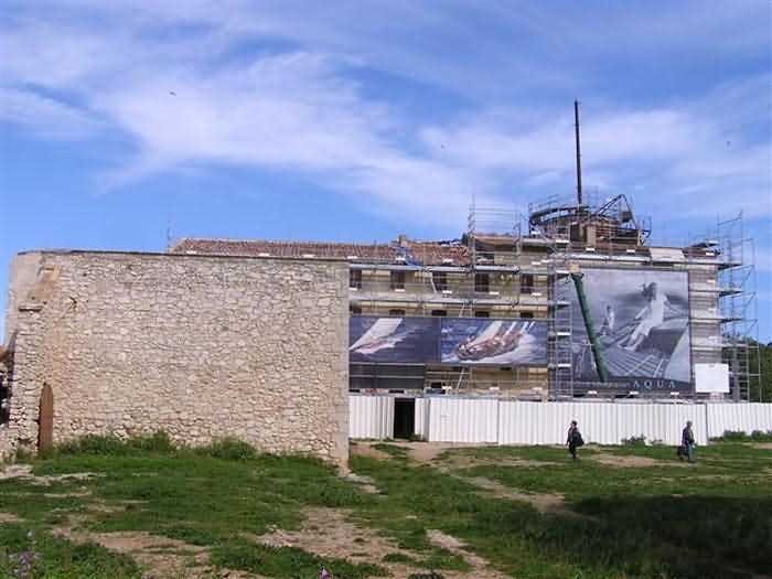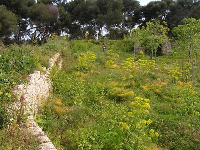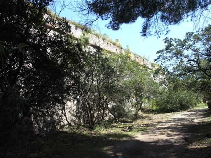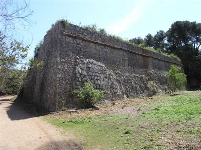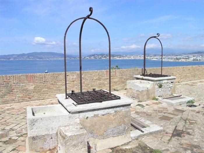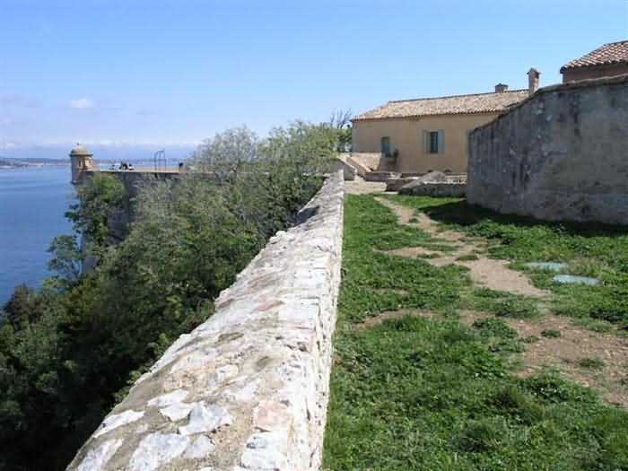 Stronghold of Antibes. 29 m/alt. Named Fort Reille and locally called Royal de Cannes fort. The Sainte-Marguerite island is separated from the mainland (Cap de la Croisette) by a passage about 1100 meters wide. Superb, the Spanish designated it Joya incognita. It forms, with Saint-Honorat island, the group of the Lérins islands. Raised from 1633 on order of Richelieu, reinforced by the Spanish and reworked by Vauban, this fort backed against the cliff is famous for having been the prison of the Man in the Iron Mask (Eustache Danger, it seems… 90% certainty) but also of Marshal Bazaine, who escaped from it on August 10, 1874 under rather nebulous circumstances. The land front comprises three bastions framing two curtain walls covered by ravelins, the whole preceded by a covered way with traverses. This fort was decommissioned in 1889 (see stronghold of Antibes) simultaneously with the Convention battery occupying the eastern end of the island. The other defenses of the island, the forts of Monterey and du Ragon (d'Argon or Dragon according to sources) as well as the Batiguier tower (ruined) were already abandoned as military works before 1876. The fort remained in the military domain after its decommissioning; in 1894, a testing center for high explosives was found there. This center left hardly any traces of its activities. Against all expectations, we spotted the bases of two batteries for 47 mm QF guns Mle 1887 on the bastion to the right of the entrance (3 bases, perhaps 4 – one would need to do some digging to be certain) as well as on the one behind the keep (at least 2 bases). These are well concealed under the vegetation but testify that the 1889 decommissioning was quickly called into question. Each of these batteries also had a projectile magazine erected in the form of small traverses more or less proof, but nevertheless covered with earth. The powder magazine (1693) erected in the hollow of the Bastion du Roy, was not brought up to the standards of the model magazines of the second half of the 19th century. The prison activity at the fort, for its part, will only end at the beginning of the 20th century. Since 1978, Fort Sainte-Marguerite has been open to the public and its visit is certainly worth the trip. Let us note therein the presence of a magnificent carronade (1841 – installed on the terrace from which Bazaine escaped) and a cannon cast in 1715, very decorated, retrieved from the sea only in 1995. The oldest part of the fort, with Roman foundations, now houses a sea museum. The interior of the fort comprises several streets flanked by military buildings, barracks, officers' quarters (with wife and children), and even a church (1658). Nevertheless, the military aspect does not emerge at all from the appearance of these constructions and, absolutely, we have here a quaint Provençal village within a fortress. For purists and enthusiasts of bastioned fortification, let us finally note the presence of an open caponier leading to the eastern ravelin. Municipal property since 1996.