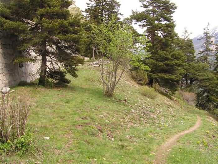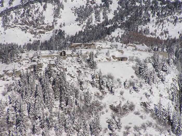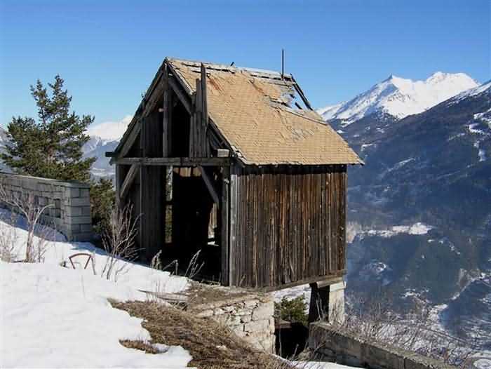 Fortress of Modane, 1,600 m west of the town, 1913-1916 (which corresponds to the construction period of the common enclosure, as indicated on the main entrance). 1,685 – 1,755 m/alt. Right from the start, let us clarify that this brief article exists only for ease of understanding and is not based on any denomination that one might have unearthed in any written document. Nevertheless, the construction of a single enclosure bringing together the fort and the redoubt, while encompassing the battery and the barracks, constitutes a respectable defensive complex certainly deserving a distinct article. A document dated August 1934 mentions a "center of resistance." The Mont du Sapey is ideally located in the heart of the Maurienne valley, it dominates Modane by almost 700 m. Its views extend up to 40 km in the valleys, both upstream and downstream of the position; it also monitors the galleries of the Fréjus railway tunnel and the works of the Replaton tasked with its defense. Bordered by steep slopes, which are moreover strewn with rocky bars, it nevertheless presents rounded summits and appreciable flat areas. In fact, this highly strategic location immediately attracts the attention of the military. Thus, in 1884-1892, the eponymous redoubt and fort were built, with their annex batteries, respectively on the main and secondary summits that make up the Mont du Sapey. The latter work, while its construction is ending, goes through the shell crisis; henceforth, it will not be long before covering it, at great expense, with a special concrete shell, proof of the importance of the position. Things remain there until the eve of the First World War, probably for lack of funds, except for the construction of various peacetime barracks, and the installation of a cable car linking Modane via the Replaton in 1908. In 1913, a substantial work campaign is launched, a campaign that will only be interrupted in 1916, leaving some works unfinished. First, the defenses of the fort are strengthened; on the one hand by covering its bastionets with beams, on the other hand by excavating a series of four gun casemates, equipped with shelters, magazines, workshops and a powder magazine, all under a rock thickness of up to 15 m. To the north of the fort, nestled in a hollow of terrain, the battery of Sapey is built; specially intended to engage the exits of the Fréjus tunnel as well as the Fort du Replaton. This work, in reverse slope, has its own underground facilities including shelters for personnel, artillery magazines, ammunition manufacturing workshops, and powder magazines. Set back from the battery, again making admirable use of the geography of the place, a major rock shelter is built. Important, because its capacity of 500 men and 32 non-commissioned officers is sufficient to house all personnel present at the position, including the works. Perhaps too important, it could not be completed before the cessation of work, which became unnecessary with Italy's entry into the war on the side of France. At the same time, in order to protect the various works from surprise, the entire position is surrounded by a common scarp. This scarp, topped by a Carnot wall, makes use as much as possible of the rocky escarpments; it is preceded by an extensive barbed wire network at the most vulnerable points. The layout of this common enclosure connects the scarps of the fort and redoubt, it encompasses the battery and the rock shelter, not forgetting the various barracks as well as the cable car station. The scarp is pierced by two entrances of unequal value. The first, designated main entrance because it blocks the access road, is located to the southwest, not far from the peacetime barracks. It features a portal preceded by a removable bridge crossing the ditch that flanks the entire west flank, a portal opening between two pilasters on which the dates 1913 and 1916 are engraved. The second entrance is located in the hollow of terrain that separates the main and secondary summits, to the northeast, near the battery. Here there is no portal, but a stack of rails supported by two masonry pillars, preceded by a removable bridge crossing a small ditch. We lack information to define the role of this second entrance; nevertheless, various elements lead us to believe that it is not an entrance, but an exit, allowing the artillery to reach the area of the pass (the RD 106 does not yet exist) where the terrain is particularly favorable for improvised batteries. The description of the entrances would not be exhaustive without mentioning the presence of a postern. It is located at the southern end of the position, not far from the peacetime barracks; it opens the way for the mule track that joins the Fort du Replaton. Today gaping, this postern must logically have been closed by an armored door. Finally, it is appropriate to dwell somewhat on the defense of the northeast, precisely where the second entrance is pierced. This sector is notoriously vulnerable, especially with the probable existence of a strategic road, due to its attenuated relief and the proximity of the battery which would be taken in reverse. That is why the hollow of terrain is barred along its entire length by an infantry parapet. The servants of this parapet benefited from a picket shelter. It consists of a shelter body whose flanks are provided with a masonry bench and shelves (dimensions approx. 25 x 4 m for 2.5 m height). The walls, with a pronounced batter, are of masonry; the roof constituted by a bed of metal beams covered with a substantial layer of rubble. At the southeastern end, there is a toilet; in the basement of the other end there is a cistern. This shelter is accessed by three carefully concealed entrances, located at both ends and in the center. A few figures will allow the reader to judge the importance of the work. The common enclosure, with a cumulative length of about 2000 m, delimits an area of 7 hectares. Within this perimeter are thr