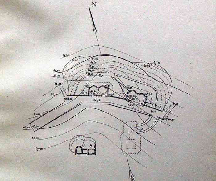 Oran. Battery located beneath the Saint-Grégoire battery, at an altitude of 65 m/alt, and armed in 1912 with 4 95 mm G guns Mle 1888 on carriage C Mle 1904 G. It is a very simple masonry work, comprising two emplacements for two guns, and equipped with a small cavern magazine. In November 1918, it still possesses 3 of its guns. The battery, rearmed with four guns and equipped with a concrete FCP (fire control post), is still operational in 1939. It is to be replaced by a battery of 4 90 CCA guns. Events will not permit it. © JJM 22/01/2026