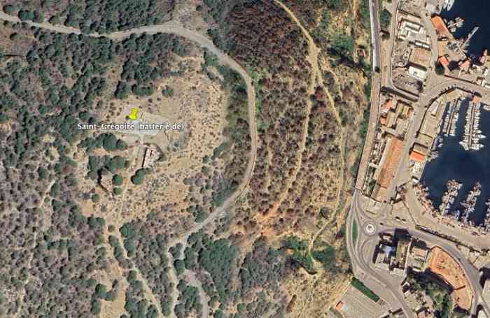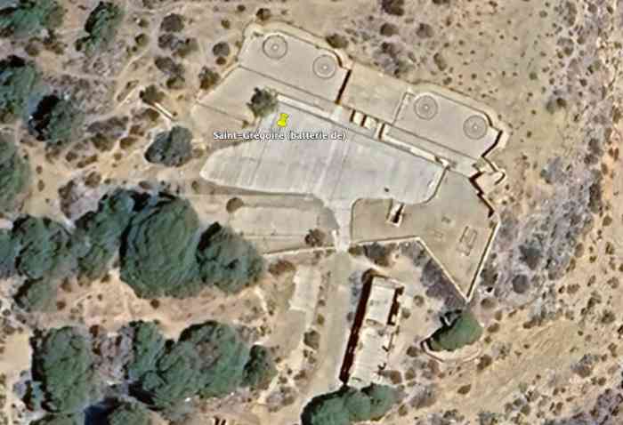 Oran. Battery located beneath the fort of Santa Cruz, west of the port, at an average altitude of 168 metres. It is a modernised work in reinforced concrete, comprising two emplacements, separated by a combat magazine Mle 1901. Each emplacement receives two 24 cm G guns Mle 1876 on GPC carriage. The work is equipped with a cavern magazine, constructed at ground level and protected by the covering mass of the hill. It supplies the guns via a 40 cm gauge railway network. The work is built on the edge of a cliff, and only its gorge is protected by a bastioned wall. The battery was disarmed during the First World War and its equipment sent back to mainland France. In 1941, it was rearmed with 4 37 mm AA mountings (CAS), belonging to the 54th Naval Battery. On 8 November 1942, it was repeatedly strafed and lost a quarter of its strength, wounded. It fires 277 rounds of 37 mm ammunition. It is still clearly visible on satellite views. JJM 10/08/2008