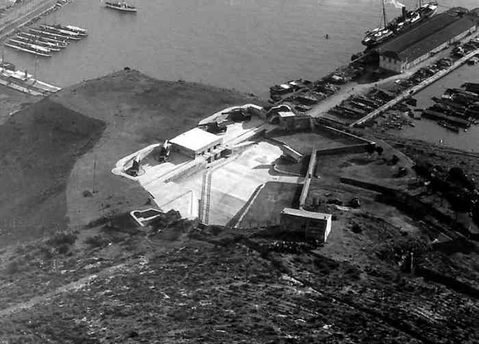 Oran. Battery located beneath the fort of Santa Cruz, west of the port, at an average altitude of 168 metres. It is a modernised work in reinforced concrete, comprising two emplacements, separated by a combat magazine Mle 1901. Each emplacement receives two 24 cm G guns Mle 1876 on GPC carriage. The work is equipped with a cavern magazine, constructed at ground level and protected by the covering mass of the hill. It supplies the guns via a 40 cm gauge railway network. The work is built on the edge of a cliff, and only its gorge is protected by a bastioned wall. The battery was disarmed during the First World War and its equipment sent back to mainland France. In 1941, it was rearmed with 4 37 mm AA mountings (CAS), belonging to the 54th Naval Battery. On 8 November 1942, it was repeatedly strafed and lost a quarter of its strength, wounded. It fires 277 rounds of 37 mm ammunition. It is still clearly visible on satellite views. © JJM 22/01/2026