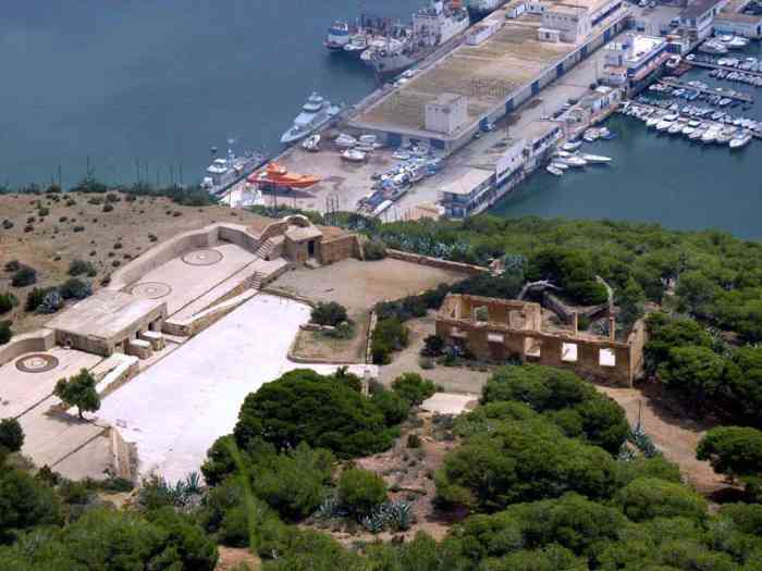 Oran. Batterie unterhalb des Forts Santa Cruz, westlich des Hafens, auf einer durchschnittlichen Höhe von 168 Metern. Es handelt sich um ein modernisiertes Werk in Stahlbeton mit zwei Geschützständen, getrennt durch ein Kampfmagazin M. 1901. Jeder Geschützstand erhält zwei 24-cm-G-Kanonen M. 1876 auf GPC-Lafette. Das Werk verfügt über ein ebenerdig ausgeführtes Kavernenmagazin, geschützt durch die deckende Masse des Hügels. Es versorgt die Geschütze über ein 40-cm-Bahnnetz. Das Werk ist am Rand einer Klippe erbaut, und nur seine Kehle ist durch eine bastionierte Mauer geschützt. Die Batterie wurde während des Ersten Weltkriegs entwaffnet und ihr Material ins Mutterland zurückgeschickt. 1941 wurde sie mit vier 37-mm-Flugabwehr-Lafetten (CAS) der 54. Marinebatterie neu bewaffnet. Am 8. November 1942 wurde sie mehrfach mit Maschinengewehrfeuer belegt und verlor ein Viertel ihrer Mannschaft, verwundet. Sie feuert 277 Schuss 37-mm-Munition. Sie ist auf Satellitenaufnahmen immer noch gut sichtbar. © JJM 22/01/2026