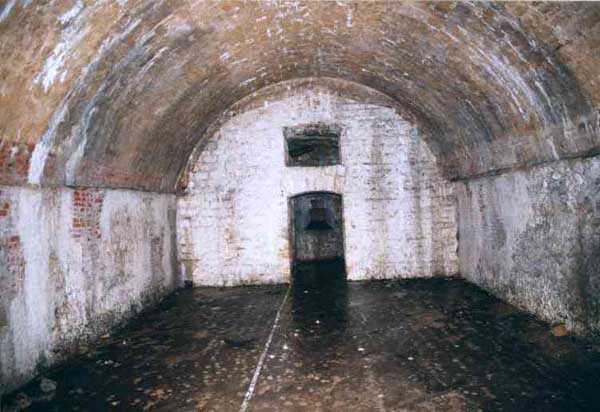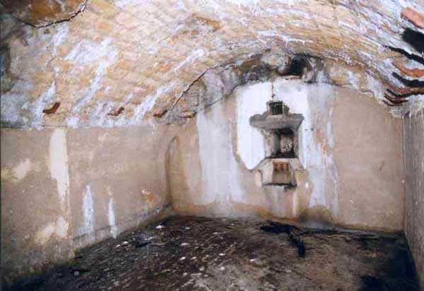 Fortress of Langres, south-southwest of the town, ± 1890. 440 m/alt. Powder magazine, in the rock, 500 m east of fort de la Bonnelle. A guardhouse of 4.5 x 4 m, dug into the rock, precedes an enclosing wall framing the three parallel entrances to the magazine. These entrances consist of three galleries 10 cm wide for a length of, respectively and from left to right, 20.70 m, 21.70 m, and 16 m. The leftmost entrance is deeply recessed and the axis of the magazine and the loading workshop is oriented south-southeast/north-northwest. The powder room occupies the space between entrance galleries 1 and 2. It includes an airlock at each of its ends and the storage space has a length of 9.5 m for a width of 6 m. The loading workshop, 6 x 4 m, is located almost at the end of entrance gallery no. 3. A gallery containing a large niche for pyrotechnics and two other smaller ones connects the workshop to entrance gallery no. 2. Visited in June 2000, it was exposed to the elements, the courtyard overgrown with vegetation, and the interior in average condition.