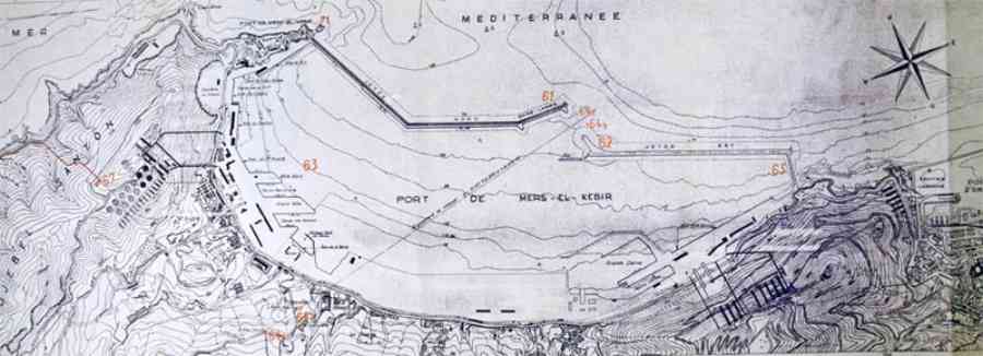 Tento světově unikátní komplex byl postupně uváděn do provozu od roku 1956 a v roce 1959 byl prohlášen za operační. Průběh prací však nakonec narazil na problém financování dveří přístupových tunelů, které musí být schopny odolat přetlaku způsobenému výbuchem H-bomby. Odhad stanovil jejich cenu na 80 % celkových nákladů podzemních zařízení. Tento nepředstavitelný výdaj, vývoj strategického myšlení a nejistoty ohledně budoucnosti Alžírska vedly k postupnému zastavení prací. Ačkoli Evianské dohody umožnily Francii zachovat si základnu po patnáct let, francouzská armáda opustila Mers el-Kébir koncem roku 1967. Po roce 1962 byl vybudován pás opěrných bodů, který měl případnému nepříteli odepřít přístup k základně. Začlenil letiště Bou-Sfer (1) do svého ochranného perimetru a táhne se asi čtyřicet kilometrů od bodu ležícího 8 600 metrů jihozápadně od mysu Falcon až k pevnosti Lamoune na západ od přístavu Oran. Obtáčí zónu o rozloze přes 100 km², tzv. zónu výhod, přiznanou Francii v rámci Evianských dohod. Pozice zahrnuje více než sto třicet opěrných bodů, včetně asi osmdesáti železobetonových kasemat, odolných proti 105mm projektilu. Ostatní prvky jsou řešeny jako polní opevnění. Hustota betonových prvků je zvláště vysoká na výšinách džbelu Murdjadjo, který dominuje přístavu. Výzbroj zahrnuje kulomety všech modelů a ráží, minomety, protitankové raketomety a organickou výzbroj jednotek pověřených její obranou, zejména roty 22. BIMa, které byly pro tuto příležitost obnoveny. Rozsáhlá minová pole doplňují zařízení. © JJM 22/01/2026