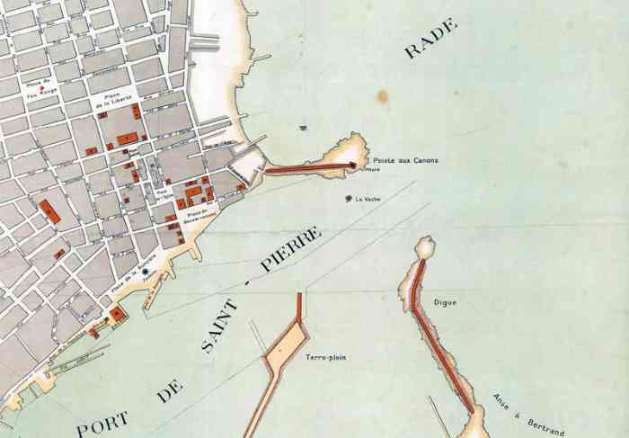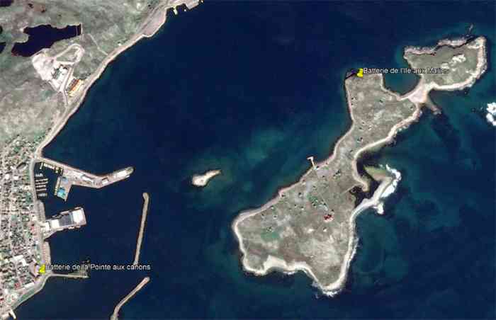 Les archives militaires concernant Saint-Pierre et Miquelon sont rares. Plusieurs sources évoquent une batterie établie au 17e siècle, et ruinée par les Anglais en 1702. De nos jours, il existe deux ouvrages de défense visibles à Saint-Pierre, seul endroit défendu de l’archipel. Le premier, à la pointe aux canons, le second, dans l’île aux Marins. Comme on peut le voir sur les rares photos prises dans la deuxième partie du 19e siècle, l’armement de Saint-Pierre était identique à celui des autres places maritimes contemporaines de Métropole, soit essentiellement des canons de 30 et des obusiers de 22 cm, tous deux sur affût Mle 1847. Die Militärarchive bezüglich Saint-Pierre und Miquelon sind selten. Mehrere Quellen erwähnen eine im 17. Jahrhundert errichtete Batterie, die 1702 von den Engländern zerstört wurde. Heutzutage gibt es zwei sichtbare Verteidigungswerke in Saint-Pierre, dem einzigen verteidigten Ort des Archipels. Das erste an der Pointe aux canons, das zweite auf der Île aux Marins. Wie man auf den seltenen Fotos aus der zweiten Hälfte des 19. Jahrhunderts sehen kann, war die Bewaffnung von Saint-Pierre identisch mit der der anderen zeitgenössischen Seeplätze des Mutterlandes, also hauptsächlich 30-Pfünder-Kanonen und 22-cm-Haubitzen, beide auf Lafette Mle 1847. De militaire archieven betreffende Saint-Pierre en Miquelon zijn zeldzaam. Verschillende bronnen vermelden een batterij opgericht in de 17e eeuw, en verwoest door de Engelsen in 1702. Tegenwoordig zijn er twee verdedigingswerken zichtbaar in Saint-Pierre, de enige verdedigde plaats van de archipel. De eerste aan de pointe aux canons, de tweede op het eiland Île aux Marins. Zoals te zien is op de zeldzame foto's genomen in de tweede helft van de 19e eeuw, was de bewapening van Saint-Pierre identiek aan die van de andere hedendaagse zeeplaatsen van het moederland, namelijk voornamelijk 30-pondskanonnen en 22 cm-houwitsers, beide op affuit Mle 1847. Military archives concerning Saint-Pierre and Miquelon are rare. Several sources mention a battery established in the 17th century, and ruined by the English in 1702. Nowadays, there are two visible defence works in Saint-Pierre, the only defended place in the archipelago. The first, at Pointe aux canons, the second, on Île aux Marins. As can be seen in the rare photos taken in the second half of the 19th century, the armament of Saint-Pierre was identical to that of the other contemporary maritime places of Metropolitan France, essentially 30-pounder guns and 22 cm howitzers, both on mounting Mle 1847. Vojenské archivy týkající se Saint-Pierre a Miquelon jsou vzácné. Několik zdrojů zmiňuje baterii zřízenou v 17. století, zničenou Angličany v roce 1702. V současné době jsou v Saint-Pierre, jediném bráněném místě souostroví, viditelná dvě obranná díla. První na mysu Pointe aux canons, druhé na ostrově Île aux Marins. Jak je vidět na vzácných fotografiích pořízených v druhé polovině 19. století, výzbroj Saint-Pierre byla totožná s výzbrojí jiných současných námořních míst metropole, tedy především 30liberní děla a 22cm houfnice, obojí na lafetě vz. 1847. © JJM 11/04/2026