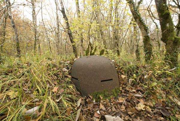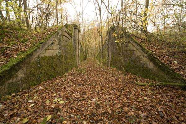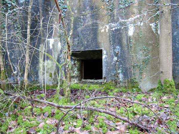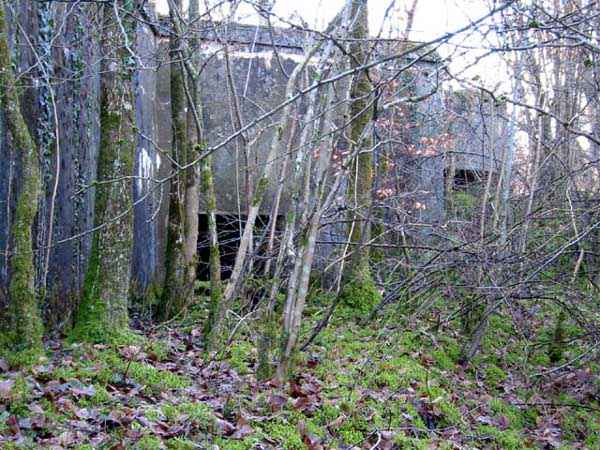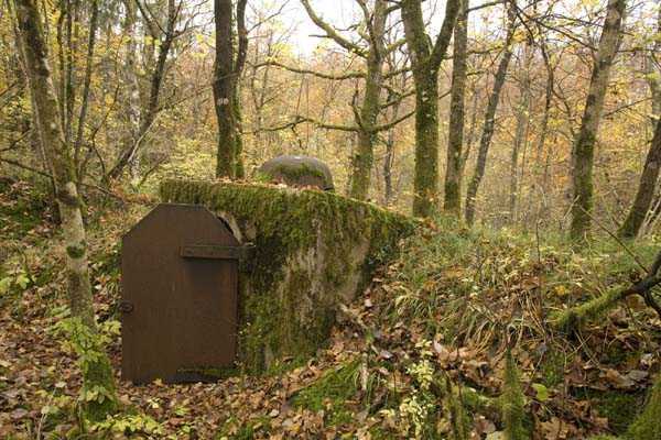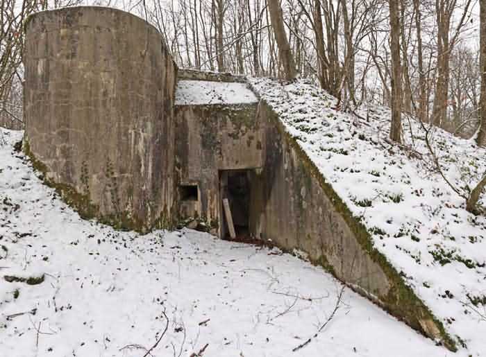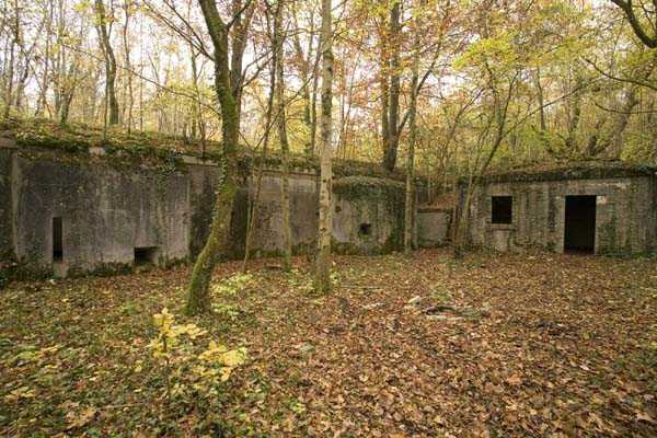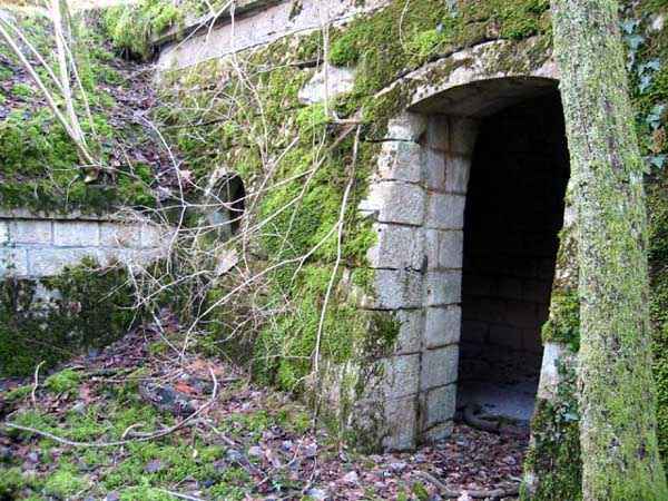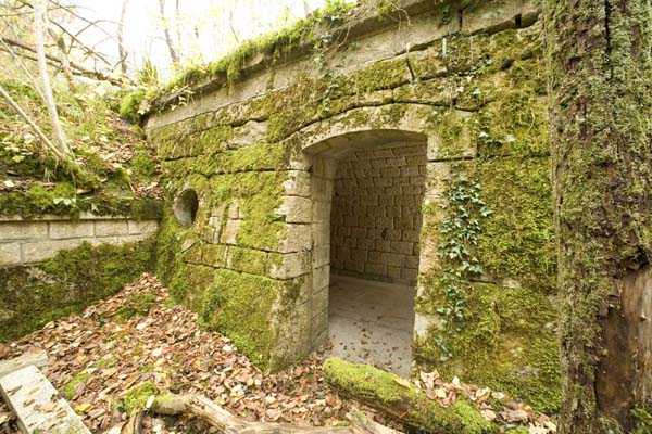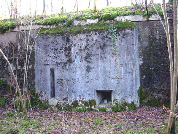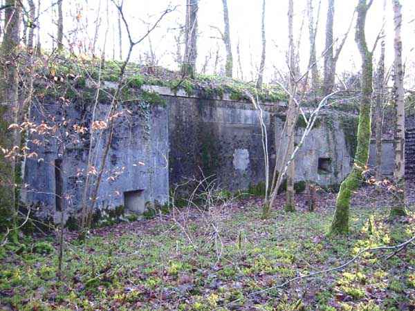 Verdun fortified camp, southeast of the city, 1888. 360 m/alt. Although we are not absolutely certain, the structure was originally intended to resemble the kidney-shaped infantry structures distributed throughout the area, such as Eix, Bezonvaux, Fromeréville, etc. Completely rebuilt in 1900-1901, only the side shelters made of rubble masonry with their inner ends in a cul-de-four shape were preserved from the initial structure. The barracks located between these shelters were replaced by a construction very similar to a combat shelter for ½ company, the right entrance of which was protected by a mask wall. The entrance to the structure opening into a trench was preserved and, once crossed, one emerges at the rear of a Bourges casemate flanking the interval towards the fort of Rozellier. Since the entrance to the casemate was lateral and not at the rear, it was necessary to protect it from possible blows from a sling by a thick concrete orillon. Two observation sentry boxes complete the infantry ridge. This structure is now, 10/2006, under the control of the National Forestry Office. It is in a good state of preservation, but attention should be paid to the wells of the network of galleries dug in 1917 under the structure and which form a network extending over 740 meters. We will note the device for closing the door of the Bourges casemate and rare remains of acoustic pipes. Behind the structure is the intermediate depot S; about a hundred meters to the left of the structure is the combat shelter (with kitchen added after construction) RSS-1 (for ½ company) and, to the left of this shelter was the battery 5-1 (according to the numbering of 1912), for 4 90 mm guns. Closer still to its left is shelter RSS-2, for one company.