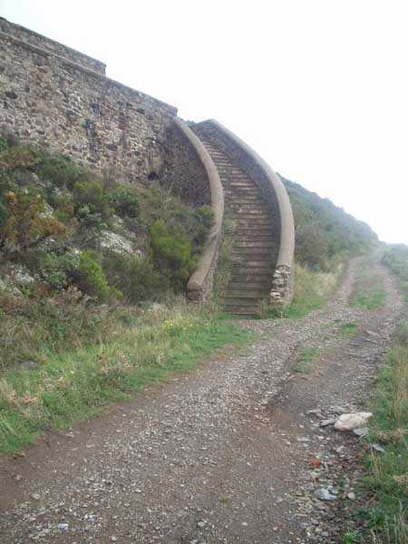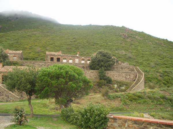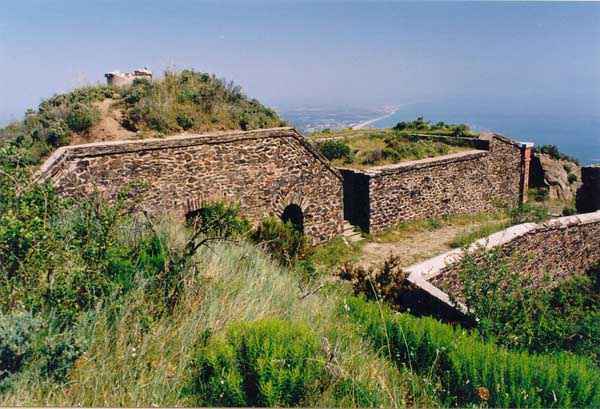 Fortress Port-Vendres, SW of the town, 1885-1886. 514 m/alt. Structure related to the Galline battery, but smaller and in poorer condition. Was armed with 2 pieces of 7 mle 1873 and 2 pieces of 12. A hundred meters to the southeast is the Right barracks.