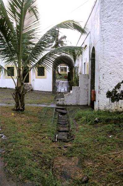 Fort-de-France. Built on Morne Tartenson at an altitude of 88 metres, this work was originally intended to reinforce the land front of Fort-de-France facing west. The first plan is approved in 1845, but work does not begin until 1858. Due to lack of funds, it will continue until 1873, subject to successive modifications. Ultimately, it presents itself as a fort with a polygonal trace, which has little to do with the original project. At that time, there is uncertainty about what to do with it, or with what equipment to arm it. Plans are made to install a coastal battery armed with 4 rifled 30 cm guns? But the work was first intended to strengthen the land front and, to fulfil this mission, consideration is given to building three casemates, each armed with a 16 cm gun. One of these would be oriented towards Fort Desaix, another towards Fort Saint-Louis, and the last towards the Route de Case Navire. Five 12 cm guns on platform mount, and two 32 cm plate mortars would complete the armament. None of this will be realised, and the fort will be left in caretaker status until 1894. That year, and until 1898, it hosts the King of Dahomey, Béhanzin, exiled to Martinique. The fort finally finds its true vocation after the Fashoda incident. With its high altitude and the increase in artillery range, it is ideally placed to receive coastal batteries, which will keep the entire bay under their fire. But due to lack of space, these batteries are installed outside the work. They are supplied by a network of 60 cm railway from a cavern magazine dug under the fort. This is equipped with a concrete war barracks. In 1912, the sea front situation is as follows: