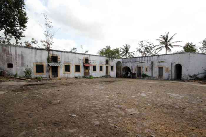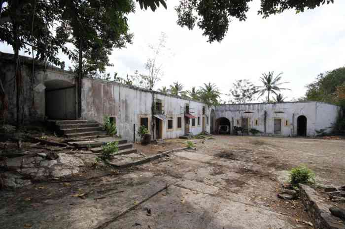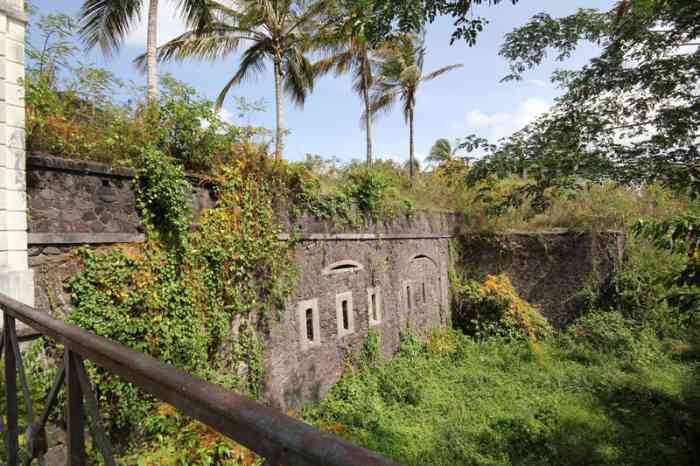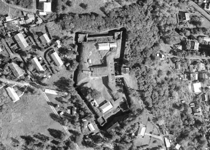 Built on Morne Tartenson, at an altitude of 88 metres, this work was originally intended to reinforce the land front of Fort-de-France facing west. The first plan was approved in 1845, but work did not begin until 1858. Due to lack of funds, they continued until 1873, subject to successive modifications. Ultimately, it presents itself as a fort with a polygonal layout, which no longer has much to do with the original project. At that time, one did not really know what to do with it, nor with what equipment to arm it. It was planned to install a coast battery there, armed with 4 rifled 30-pounder guns. But the work had first been intended to strengthen the land front and, to carry out this mission, it was envisaged to build three casemates, each armed with a 16 cm gun. One of these would be oriented towards Fort Desaix, another towards Fort Saint-Louis, and the last towards the Case Navire road. Five 12 cm guns on garrison mounting, and two 32 cm plate mortars would complete the armament. None of this was realised, and the fort was left under guard until 1894. That year, and until 1898, it housed the King of Dahomey, Béhanzin, exiled to Martinique. The fort finally found its true vocation after Fashoda. With its high altitude, and the increasing range of artillery, it was ideally placed to receive coast batteries that would keep the whole bay under fire. But lacking space, these batteries were installed outside the work. They were supplied by a 40 cm gauge railway network from a cavern magazine, dug under the fort. The latter was provided with a concrete war barracks. In 1912, the situation of the seafront was as follows: