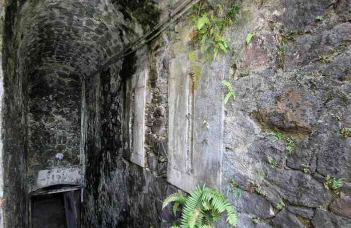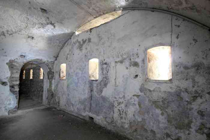 A battery of 5 G mortars of 270 mm Mle 1889, called the west battery, appears in the armament state, but its equipment was stored at the artillery park. This battery does not appear on any plan, and we doubt that it ever really existed. It is not mentioned in post-war surveys. We think it was replaced by the Pointe d'Alet battery. The land front was defended by a battery of 3 M guns of 14 cm Mle 1870 on naval mounting M Mle 1878, located inside the fort. The 19 cm guns Mle 1870-93 were removed and sent back to metropolitan France during the First World War. In 1939, a battery of 4 guns of 164 mm Mle 1893-96 on mounting C Mle 23 was installed, in pits, on the fort's glacis. It occupies all the emplacements of the two old batteries. The 138 mm one still had its equipment, but this interfered with the field of fire of piece 2 of the new battery. They were later removed. The 164 mm barrels and their cradles came from the cruiser Jules Ferry. Four other guns from this ship would be used for the Contour 84 battery at Diego-Suarez. This equipment can be considered fairly modern. It fires, at a rate of three rounds per minute, an ORC projectile, weighing 54.9 kg, to 19,000 metres. The battery had a “Colonies” conjugator, a depression rangefinder H Mle 34, installed on an 18-metre tower, and a 150 cm searchlight GP Bréguet. Unfortunately, no trace of these installations remains, and very little documentation. From June 1940, the cavern magazine was used, together with that of Fort Desaix, to store the 300 tonnes of gold from the Banque de France, which had arrived on the cruiser Émile Bertin. Long occupied by the 33rd RIMa (Marine Infantry Regiment), and by a signals company, it now belongs to the commune of Fort-de-France, which wishes to create a cultural complex there.