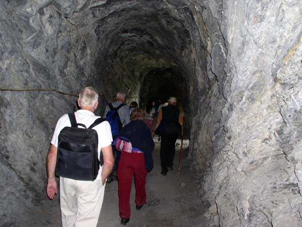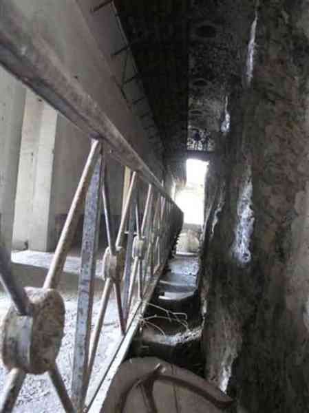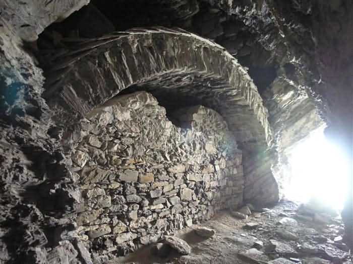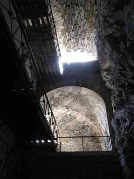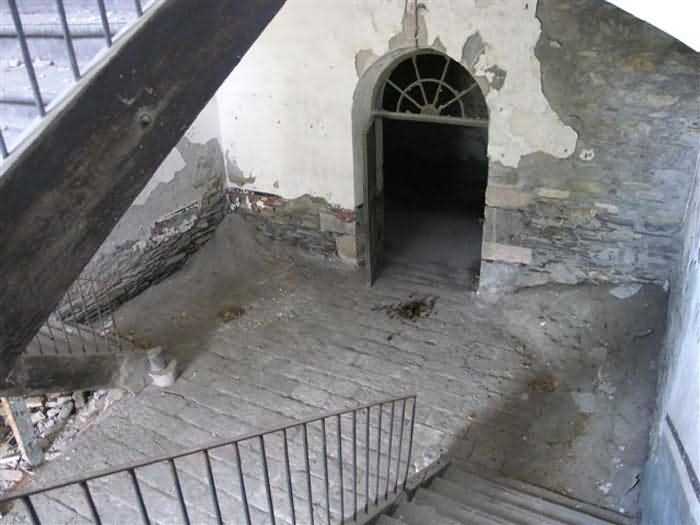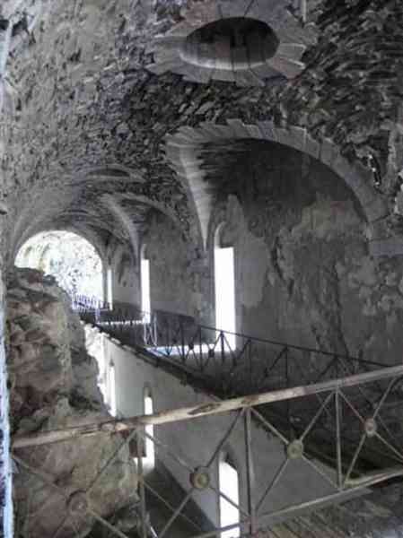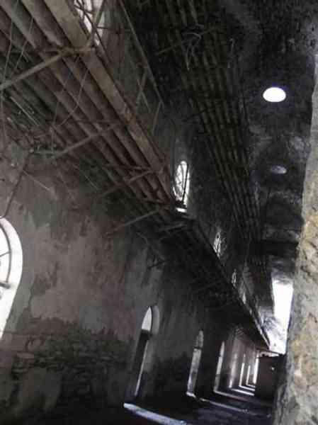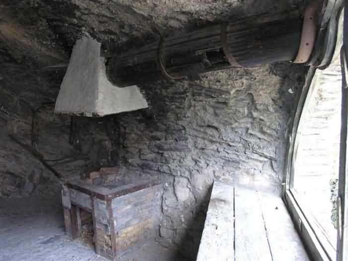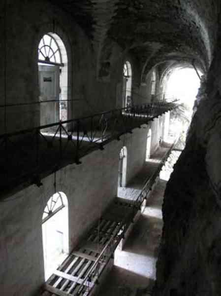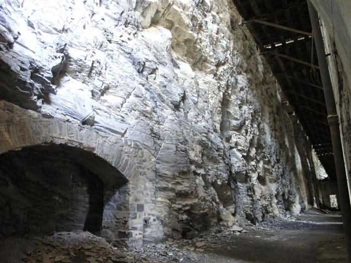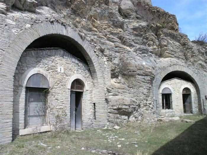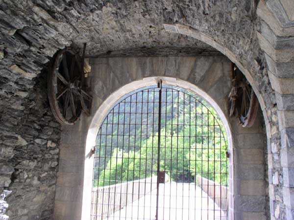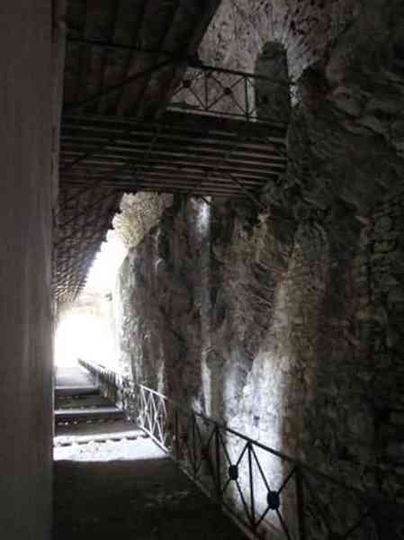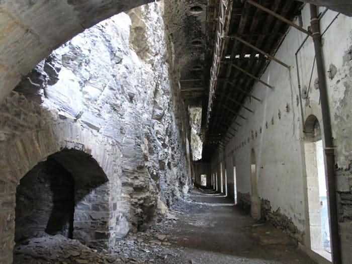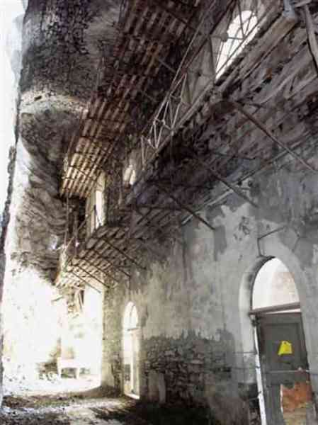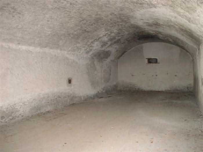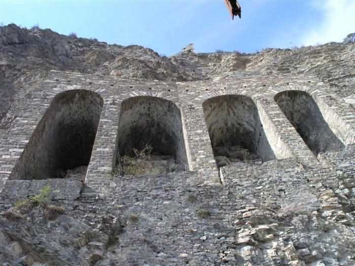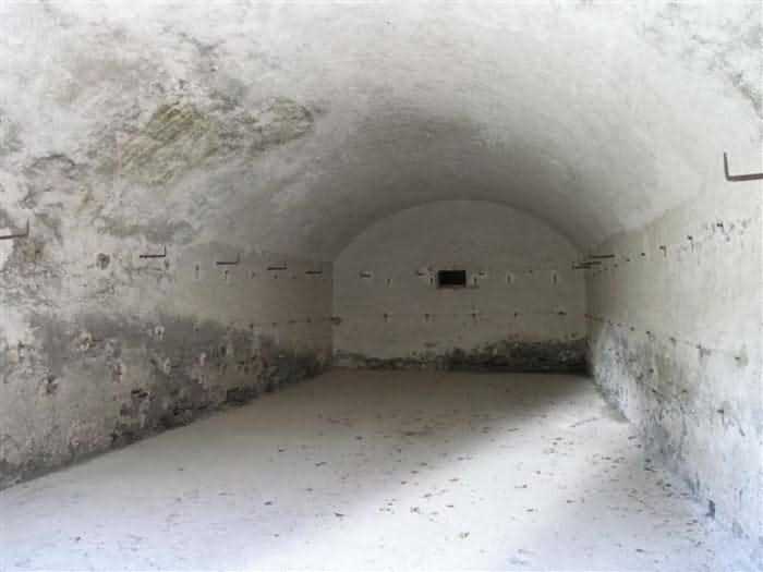 Fortress of Tournoux, component of the fort or fortress of Tournoux, located at 1514 m/alt (west entrance), between the battery B XII and the upper fort (see fort of Tournoux), 1845-1863. Seen from afar, the middle fort is distinguished by its two barracks built in elevation, on four levels a few meters from the rock face cut for the occasion. Two sets of masonry, alternating round arch and piers, very high, stand out at the rear of the west barracks. These sets actually support a platform intended to be the receptacle for rock falls. These barracks are sheltered behind the rocky ridge on which the fortress stretches. From the Pellegrin barracks, a road goes up to the middle fort. Shortly before the entrance, on the left of the path, stables were dug out. The west entrance of the fort is preceded by a long wooden bridge crossing a ditch gained on the mountain. The entrance porch is surmounted by a cartouche indicating 1852 (itself formerly surmounted by a murder hole) and the wheels of a drawbridge of the Derché type remain. Once the entrance porch is crossed, one finds oneself on a fairly vast esplanade running along the two barracks and where a cableway ends. On postcards from the beginning of the 20th century, this cableway does not appear. At the other end of this esplanade, a gate with a similar drawbridge (but with counterweight of a different shape) gives onto the rising path, enemy side, to the upper fort. To the right of this second gate, remains a forge, as rare as it is pretty with a breathtaking view of the upstream Ubaye. We are here on the head front of the middle fort. The scarp, preceded by a ditch dug in the rock, consists of a wall of little thickness (50 to 60 cm on average) pierced with loopholes. Everything here is sloping. Both upwards and downwards, one finds artillery platforms with naturally thicker parapets and cave powder magazines. The central part of this scarp, halfway between the two forts, is provided with seven square towers housing spiral stairs making up for the significant difference in level. It is on this side that the artillery of the middle fort was placed, sometimes on platforms, sometimes in casemates reminiscent of Haxo-type ones (but not open at the rear). The plans in our possession are incomplete and, on site (05/2008), the multiplicity of levels made us lose track of the counting of firing positions, all the more so as certain casemates (mainly the four above the entrance) seemed to us to have too narrow accesses to receive artillery. However, if it is undeniable that there was artillery in this fort, the essential part of the garrison must have been composed of infantrymen so long, tortuous and studded with loopholes is the scarp to be manned. Besides, shortly before the First World War, the middle fort was only armed with four 95 c guns and two 120 c guns of de Bange. The two barracks are roughly similar; the western one being a bit longer. Both share the fact of having four levels plus attics. Their width relative to their length is insignificant. Both are raised about four meters from the rock face and are connected to the latter at the level of the ceiling of the second floor. The fourth level (third floor) is only accessible at ground level from the extrados of this vaulted connection. Between building and rock, footbridges resting on consoles allow circulation from one room to another on the first and second floors. This configuration is astonishing, unexpected and, with a bit of luck, the sun will allow you to take superb photos there. A staircase in the center of each building allows changing level. On the ground floor of the west barracks, one finds, in a remarkable state of preservation, one of the most famous wall frescoes, representing the blue thistle of the 154th Foot Artillery Regiment. The gallery dug in the rock and coming from battery B XII, emerges at the ground floor of the other barracks. From the second floor of each of the barracks, an access, always dug in the rock, allows reaching the esplanades on which the rooms of the third floors open. These esplanades also give access to "dug in the rock" alveoli (the expression is redundant, certainly, but necessary) which are as many powder magazines. If behind the eastern barracks one counts only two, behind the western one, with seven alveoli garnishing a concave arc and to take up the expression of our guide, it is a veritable shopping gallery. Equidistant, all are raised in rubble masonry in a cavity left rough, except on the facade where the opening is underlined by a beautiful round arch. These are what we commonly call nested powder magazines. The leftmost alveolus houses two bread ovens which are of a model that we do not remember having spotted elsewhere and, a priori, of low capacity. A gallery allows access to the rear of the ovens and, at its height, a hoist made it possible to shortcut the maze to join the entrance esplanade and that of the powder magazines. The fort was abandoned in 1948, after having served, during the fighting of 1940, as a command post for the artillery of the Ubaye/Ubayette subsector, as well as for the 293rd R.A.L. Today (05/2008), the two barracks have received a new roof and the degradations of the walls seemed to us here relatively minor, although worsening as one approaches the upper fort.