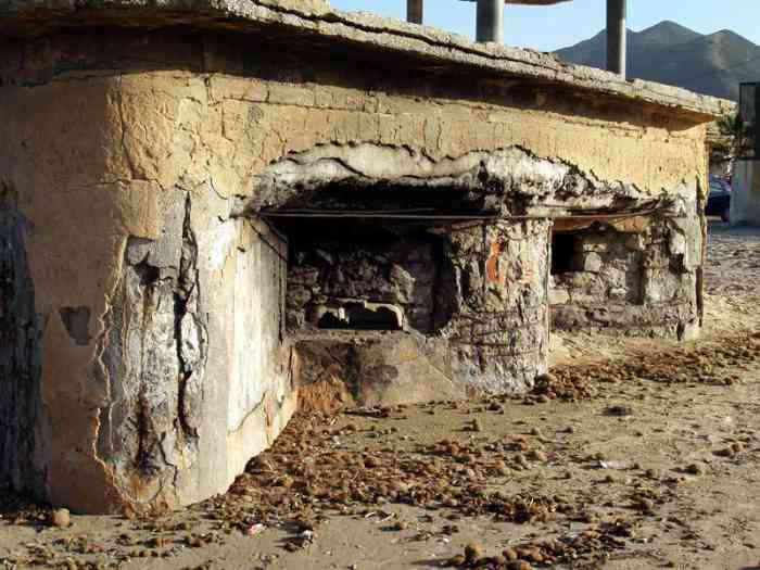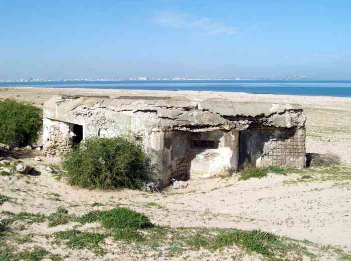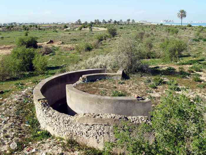 This sub-sector does not have any artillery on platform, as it is well covered by the coast batteries of la Goulette, Radès, and of the Sidi-bou-Saïd Cemetery (Navy). Nowadays, four casemates are still clearly visible. Those of SP 1 and 9 are in poor condition. The one at SP 7, in fair condition, no longer possesses any metal parts. It has a unique, semi-bastioned plan, with two machine guns and one LMG per face. The LMG fire from the rear. The one at SP 8 is in good condition, and has its armoured doors and flaps. The external LMG emplacements of these two SP are still present.Tento podsektor má 17 opěrných bodů, vybavených celkem devíti kasematami. Většina těchto kasemat je stále na místě, ale málokterá je snadno přístupná: