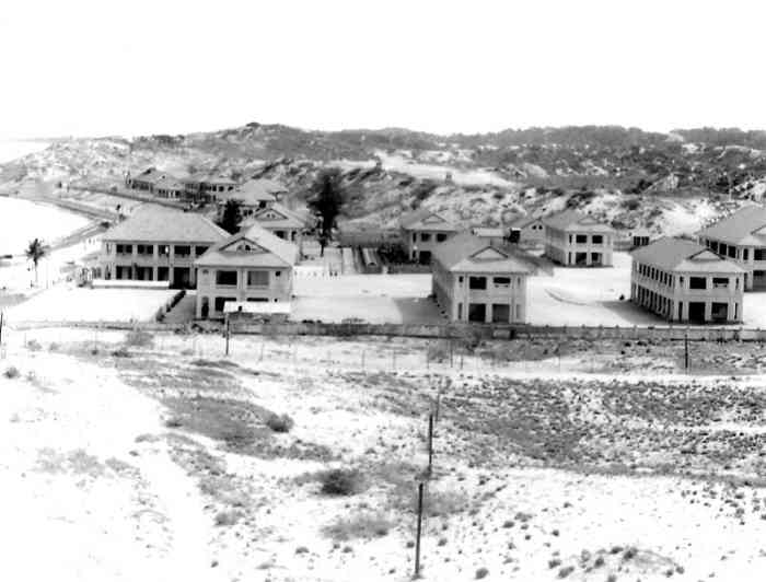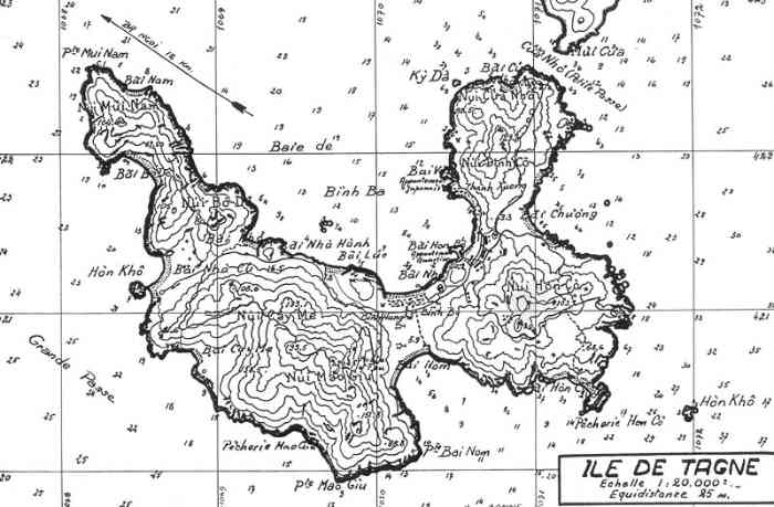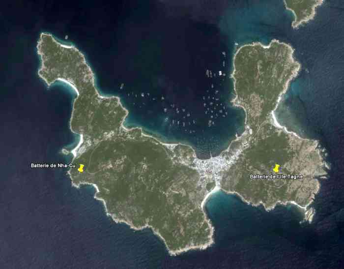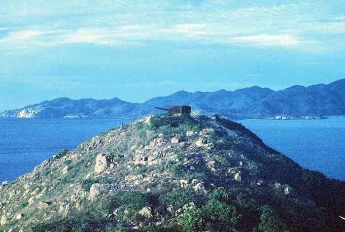 Cam Ranh. Batterie armée de quatre canons de 138 Mle 1910 sur affût Mle 1919-25, construite en 1939 dans l’île de Tagne, pour défendre les accès à la baie de Cam Ranh. Réalisée à l’altitude moyenne de 130 mètres, c’est un ouvrage moderne, doté de magasins souterrains et d’une usine électrique. Les pièces sont installées dans des cuves en béton armé, avec niches à munitions attenantes. Le PDT dispose d’un conjugateur Colonies et d’un télémètre H Mle 34. Un projecteur de 150 GP, sous abri en béton armé, complète l’équipement. Un important casernement assure le logement de l’équipage de la batterie, et de celui de la batterie de Nha-Gu, située également dans l’île. La batterie reste armée jusqu’en 1945. Pendant la guerre d’Indochine, le casernement sert de centre de repos pour la Légion étrangère et pour l’infanterie coloniale. Les canons étaient encore en place dans les années 70, et même plus récemment, mais ont maintenant disparu. Il semble qu’ils aient été déplacés et réinstallés dans la batterie d’Appowan. Batterie, bewaffnet mit vier 138-mm-Kanonen Mle 1910 auf Lafette Mle 1919-25, erbaut 1939 auf der Insel Tagne zur Verteidigung der Zugänge zur Bucht von Cam Ranh. Auf einer durchschnittlichen Höhe von 130 Metern ausgeführt, ist es ein modernes Werk, ausgestattet mit unterirdischen Magazinen und einem Elektrizitätswerk. Die Geschütze sind in Stahlbetongruben mit angrenzenden Munitionsnischen installiert. Der Feuerleitstand (PDT) verfügt über einen „Kolonien“-Konjugator und einen Entfernungsmesser H Mle 34. Ein 150-cm-Scheinwerfer GP in einem Stahlbetonunterstand vervollständigt die Ausrüstung. Eine große Kaserne bietet Unterkunft für die Besatzung der Batterie und für die der ebenfalls auf der Insel gelegenen Batterie Nha-Gu. Die Batterie bleibt bis 1945 bewaffnet. Während des Indochinakrieges diente die Kaserne als Erholungszentrum für die Fremdenlegion und die Kolonialinfanterie. Die Kanonen waren in den 70er Jahren und sogar noch später vorhanden, sind aber jetzt verschwunden. Es scheint, dass sie verlegt und in der Batterie Appowan wieder aufgestellt wurden. Batterij, bewapend met vier 138 mm-kanonnen Mle 1910 op affuit Mle 1919-25, gebouwd in 1939 op het eiland Tagne ter verdediging van de toegangen tot de baai van Cam Ranh. Gebouwd op een gemiddelde hoogte van 130 meter, is het een modern werk, uitgerust met ondergrondse magazijnen en een elektriciteitscentrale. De stukken zijn geïnstalleerd in gewapendbetonnen kazematten met aangrenzende munitienissen. De vuurleidingspost (PDT) beschikt over een „Koloniën“-conjugator en een afstandsmeter H Mle 34. Een 150 cm-zoeklicht GP in een gewapendbetonnen onderkomen completeert de uitrusting. Een belangrijke kazerne biedt onderdak aan de bemanning van de batterij en die van de eveneens op het eiland gelegen batterij Nha-Gu. De batterij blijft tot 1945 bewapend. Tijdens de Indochinese oorlog diende de kazerne als rustcentrum voor het Vreemdelingenlegioen en de koloniale infanterie. De kanonnen waren in de jaren 70 en zelfs later nog aanwezig, maar zijn nu verdwenen. Het lijkt erop dat ze zijn verplaatst en opnieuw geïnstalleerd in de batterij Appowan. Battery armed with four 138 mm guns Mle 1910 on mounting Mle 1919-25, built in 1939 on Tagne Island to defend the approaches to Cam Ranh Bay. Built at an average altitude of 130 metres, it is a modern work, equipped with underground magazines and an electric power plant. The pieces are installed in reinforced concrete pits with adjacent ammunition niches. The fire control post (PDT) has a “Colonies” conjugator and a rangefinder H Mle 34. A 150 cm searchlight GP in a reinforced concrete shelter completes the equipment. A large barracks provides accommodation for the battery's crew, and for that of the Nha-Gu battery, also located on the island. The battery remained armed until 1945. During the Indochina War, the barracks served as a rest centre for the Foreign Legion and the Colonial Infantry. The guns were still in place in the 70s, and even more recently, but have now disappeared. It seems that they were moved and reinstalled in the Appowan battery. Baterie vyzbrojená čtyřmi 138mm děly vz. 1910 na lafetě vz. 1919-25, postavená v roce 1939 na ostrově Tagne na obranu přístupů k zálivu Cam Ranh. Postavena v průměrné nadmořské výšce 130 metrů, je to moderní dílo vybavené podzemními sklady a elektrárnou. Kusy jsou instalovány v železobetonových jámách s přilehlými muničními nikami. Palebné řídící stanoviště (PDT) má konjugátor „Koloniální“ a dálkoměr H vz. 34. Vybavení doplňuje 150cm světlomet GP v železobetonovém krytu. Velké kasárny poskytují ubytování posádce baterie a také posádce baterie Nha-Gu, která se také nachází na ostrově. Baterie zůstala vyzbrojena až do roku 1945. Během indočínské války sloužila kasárna jako odpočinkové středisko pro Cizineckou legii a koloniální pěchotu. Děla byla na místě ještě v 70. letech a dokonce i později, ale nyní zmizela. Zdá se, že byla přesunuta a znovu instalována v baterii Appowan. © JJM 19/04/2026