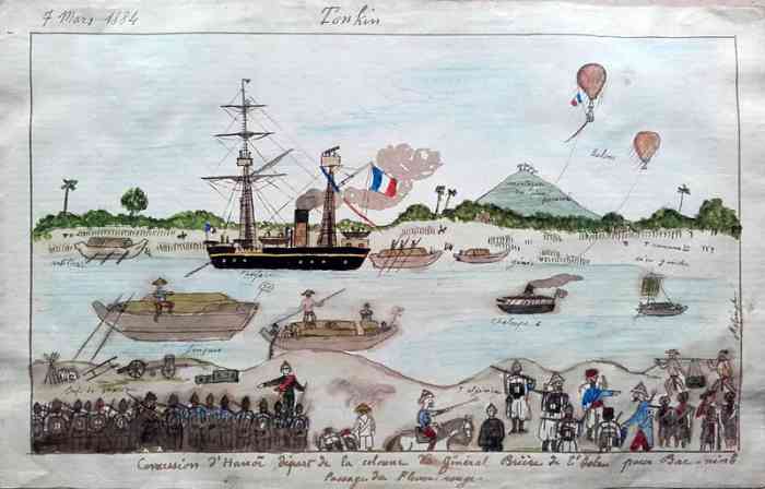 Indochine. La conquête du Tonkin est résumée dans l’introduction sur l’Indochine. C’est dans cette région que se jouera la réussite de la conquête de l’Indochine par la France, et que se noueront les événements qui aboutiront à son départ. C’est assez dire son importance. Die Eroberung von Tonkin wird in der Einleitung über Indochina zusammengefasst. In dieser Region wird sich der Erfolg der Eroberung Indochinas durch Frankreich entscheiden, und hier werden sich die Ereignisse zuspitzen, die zu seinem Abzug führen werden. Das sagt genug über seine Bedeutung. De verovering van Tonkin wordt samengevat in de inleiding over Indochina. In deze regio zal het succes van de verovering van Indochina door Frankrijk worden beslist, en zullen de gebeurtenissen zich ontspinnen die tot zijn vertrek zullen leiden. Dat zegt genoeg over het belang ervan. The conquest of Tonkin is summarised in the introduction on Indochina. It is in this region that the success of the French conquest of Indochina will be decided, and where the events that will lead to its departure will unfold. That is enough to say its importance. Dobytí Tonkinu je shrnuto v úvodu o Indočíně. Právě v této oblasti se rozhodne o úspěchu francouzského dobytí Indočíny a zde se budou odvíjet události, které povedou k jeho odchodu. To dostatečně vypovídá o jeho významu. © JJM 19/04/2026