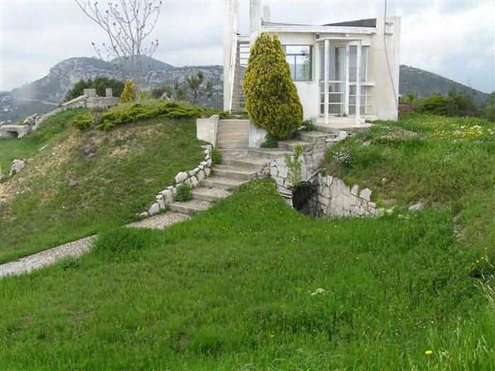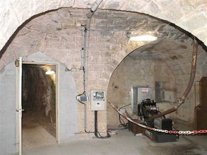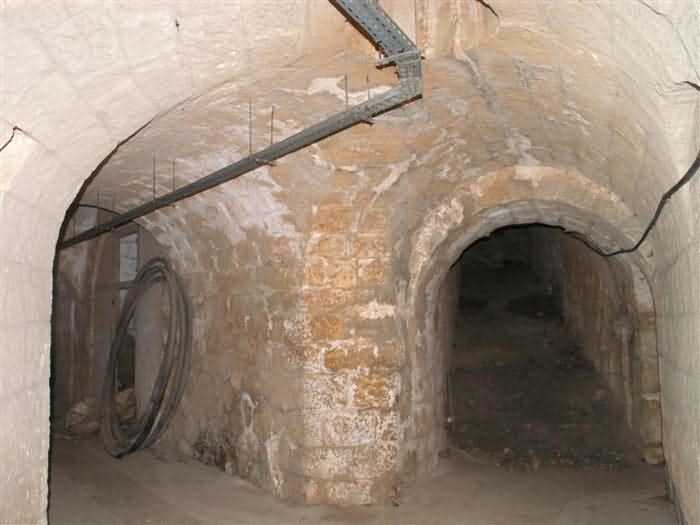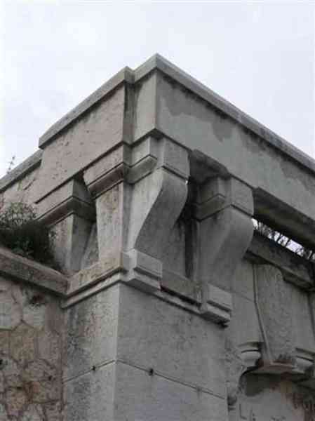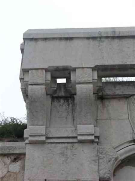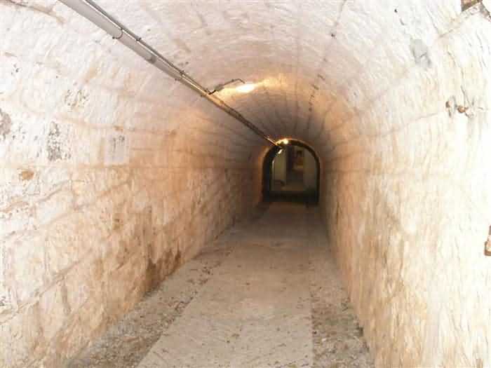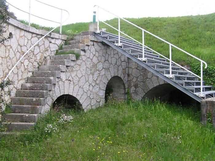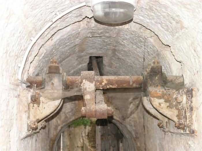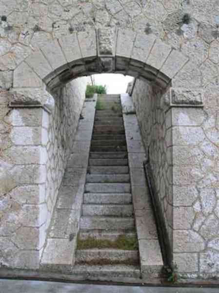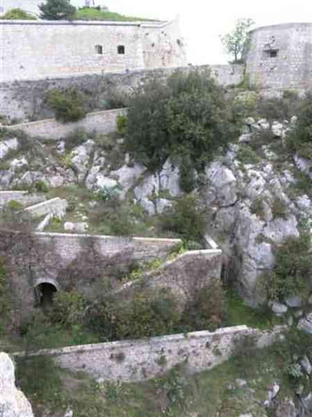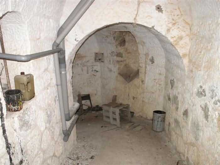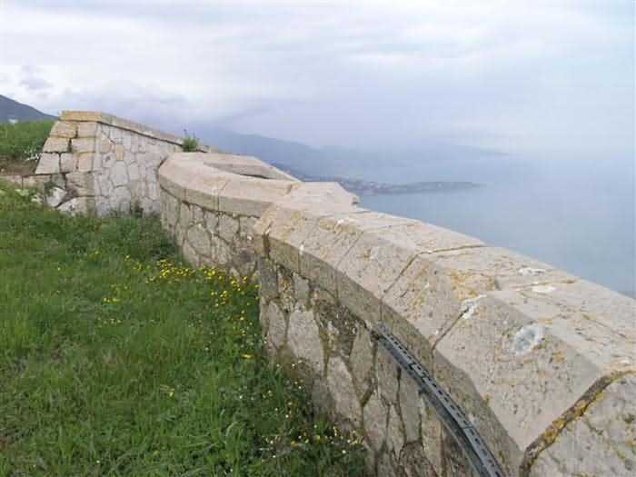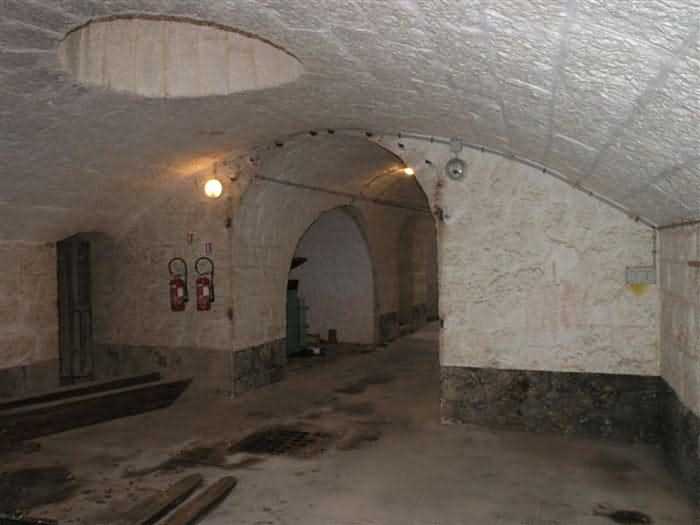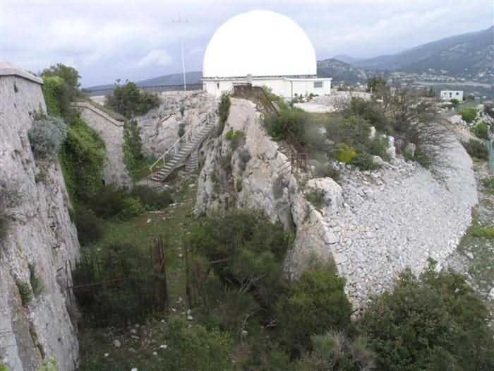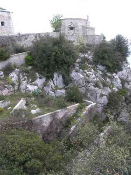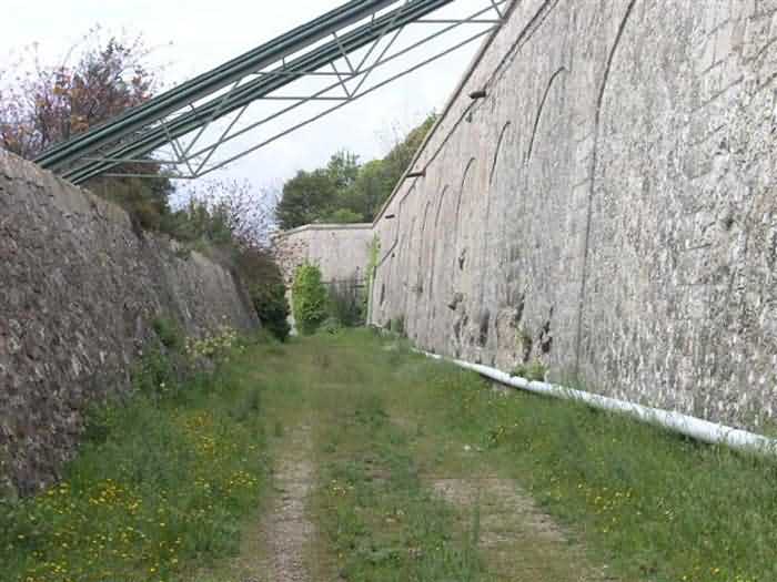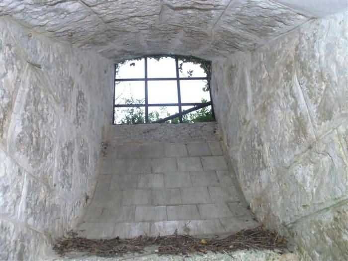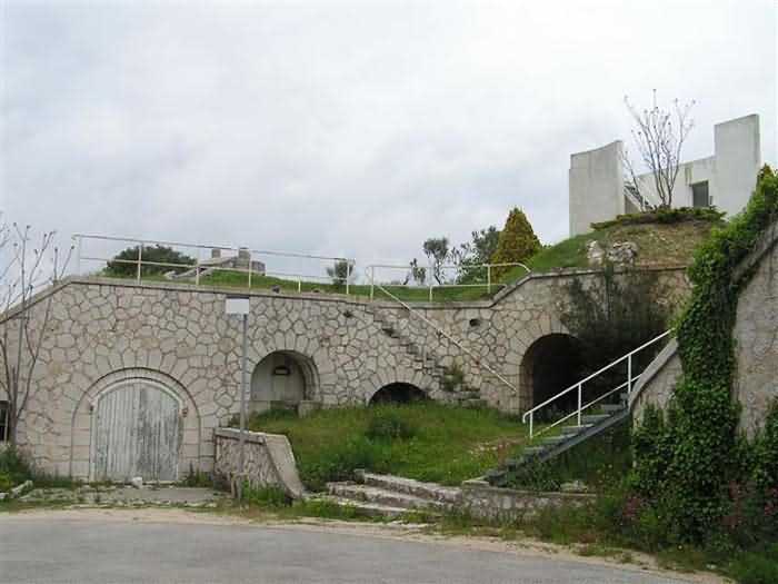 Fortress of Nice, east-northeast of the city, 1879-1884. 574 m/alt. 206 men and 22 guns. Named fort Masséna. Overall trapezoidal, with its largest front in the east following the rocky ridge, this fort has a dry ditch only on its north and west fronts, to which must be added an embryo in the northeast, to make the connection with the precipice of the eastern front. The gorge and front I-II have no ditch except in front of the entrance where a narrow pit, like an English courtyard, was arranged to be surmounted by the movable deck of the bascule drawbridge with assisted movement. This type of bridge is found only in the places of Nice and Albertville. No ditch, we write? Everything is relative; a notch in the cliff bypasses the gorge and runs along front I-II. It was used to excavate a rock magazine there (see separate article) and its top was rock-cut and leveled for the passage of the access road to the fort. In front of the entrance, an esplanade was thus arranged and if one did indeed take advantage of it to dig a small shelter in the rock to the right of the entrance (for a gun to be placed behind the parapet of the said esplanade; this room now houses an old gasoline pump), on the other hand, the angular construction whose concreted embrasures threaten the approaches of the fort does not appear on any plan. In fact, it is seated on the outlet of the path coming from the rock magazine and its workmanship leaves little doubt about its posteriority. In fine weather, the entrance of the fort shines in the light; the whiteness of its limestone, the same as that used for the oceanographic museum of Monaco, is dazzling. The entrance porch is one of the most majestic of all contemporary French forts. An imposing parapet crowns it over its entire width. This parapet rests on curved consoles that leave openings, murder holes or embrasures for plunging fire as needed. The embrasures of the two rooms to the left of the porch, guardroom and optical telegraphy room, add value to the whole by the care with which they were designed. The outlet of two optical embrasures is visible on the reverse of salient I; one is aimed at Revère fort, the other at Cauférat and/or Mont Boron. There is no shelf to seat the equipment and we do not find in the ceiling the shaft of the heliostat. The basement of this guardroom is entirely devoted to cisterns. In the entrance porch, the plaque affixed in 1886 following the decree of General Boulanger for the attribution of the name Masséna to the fort still exists but it has become illegible. The mechanism of the drawbridge is practically complete, arch and operating lever are there, as well as all its axles and counterweights. When one emerges into the courtyard, on the reverse right, a stair-ramp allows reaching the parapet dominating the entrance. After a landing, a second staircase of the same type, on the right of the barracks, allows reaching a platform. According to the width, only pieces of 80, 90 or maximum 95 mm could have accessed it. The troop barracks align three bays on two levels, framed by a half bay on the left and an even narrower one on the right. The masonry, in opus incertum, surrounds the openings, doors, windows, oculi and embrasures whose stones of all corner bonds are cut to a point. This gives the whole a character as singular as it is unique. The largest oculi are additionally closed by openwork and nicely worked grilles. The oculus that all enthusiasts wish to see, the one reputed to be surrounded by stones whose shape and relief evoke a Cross of the Legion of Honour, gives onto this same courtyard, but in the return of the façade on the left. Remarkable, this orifice is encircled by a round stone, cut from a single block, on the outside of which five other stones cut into thick chevrons lean. This is a unique work. It surmounts a passage forming a tunnel parallel to front II-III serving no less than nine rooms on its left. The latter concern mainly artillery, including one with a lamp embrasure with a singularly short flare, but also cisterns. An old plaque even indicates the presence of a "wartime pump"! In one of these magazines, the occupant of the Second World War left a wall inscription testifying to having stored fuel and oil there. Twice, the rooms are separated by a passage debouching behind the parapet of the semi-detached escarp and another staircase, descending this time, leads to... an escarp cofferdam. It is necessary to resort to an old plan to understand somewhat the justification for the presence here of such a defensive organ. The west ditch (II-III, oriented south-north) includes a slight break that orients its northern part to NNW. The angle of this break is occupied by a gun emplacement taking charge of the protection of the ditch towards salient II. On the other hand, the small front behind this gun emplacement remained undefended. It was therefore necessary to arrange a defensive cofferdam in front of the gun emplacement, but with the imperative of not projecting from the escarp. We thus have a cofferdam totally integrated into the escarp with an obliquely pierced embrasure. We know of no other example. This embrasure was preceded by a pit –today disappeared– preventing its approach. For the visitor another enigma, even more intriguing, presents itself. The cofferdam comprises a second embrasure, probably for a revolver cannon, firing straight into the counterscarp wall. We omitted to ask to go see this wall more closely from the ditch, alas; that being said, the pit protecting the embrasure aimed at salient III did not extend in front of the perpendicular embrasures. A plan indicates to us the presence of a cistern under the ditch to the right of this cofferdam, when facing it. Manifestly, the counterscarp was pierced opposite the cofferdam with a relatively wide opening requiring appropriate defense. Why put a cistern there? Why want to access it by a passage made in the counterscarp when it sufficed to use 