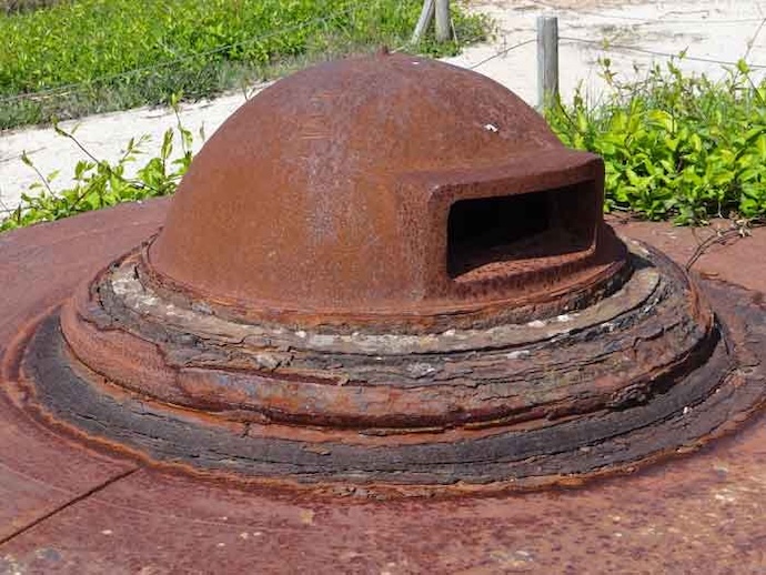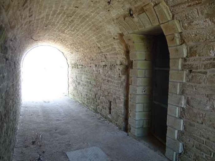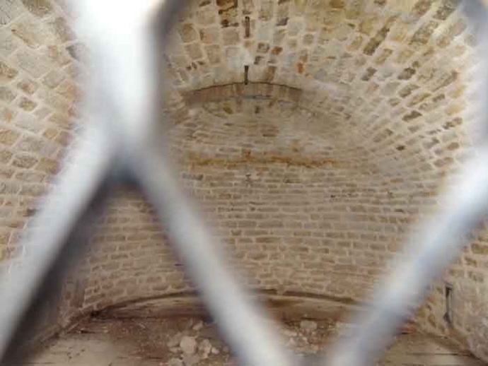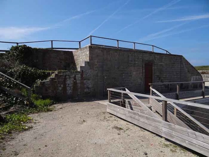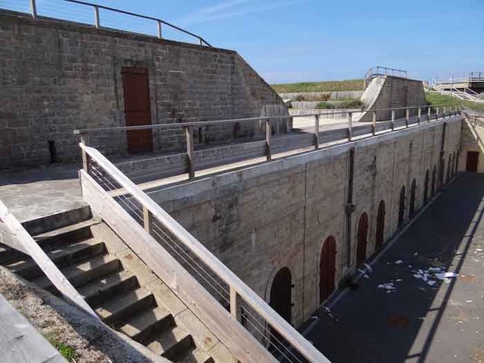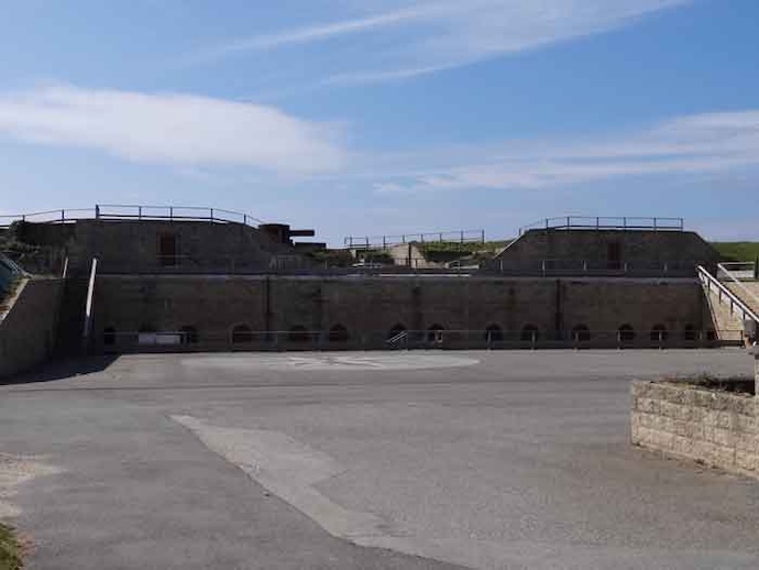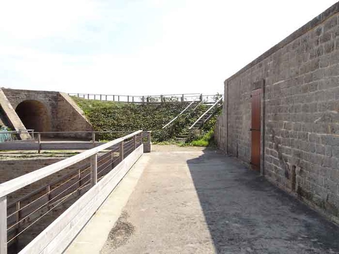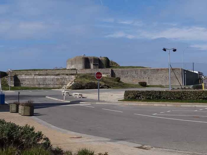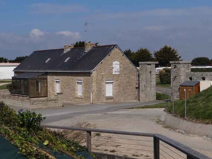 Place de Lorient, 8 km au sud-ouest de la ville. 23 m/alt. Ancienne batterie réorganisée en véritable fort de 1878 à 1881. De forme vaguement triangulaire, il possède trois caponnières doubles avec un étage constituant le prolongement de l’escarpe demi-détachée, et un étage inférieur, casematé, pour feux de mousqueterie. La gorge possède une petite courtine et la maison du gardien de batterie est restaurée, servant de logement au gardien du camping militaire. Cinq cuves pour canons de 24 c et 2 canons à balles. En fonction des variations des états de l'armement, 3 mortiers de 30 c y furent également installés. La façade du casernement est maintenant complètement coiffée d’un vaste hangar. Un fronton laisse encore discerner la mention « Le Talud », mais les chronogrammes sont, eux, illisibles. Le couloir arrière du casernement ne fait que 60 cm de largeur et est relié par deux étroits corridors à deux puits verticaux débouchant probablement dans des traverses du cavalier. Trois chambrées occupent le centre avec un magasin à chaque extrémité du bâtiment dont les côtés possèdent des murs d’aile jouxtés d’escaliers menant sur le toit du casernement. La poudrière du fort, en très bon état, est implantée sous une traverse-abri enracinée. Ce magasin à poudre, de peu de dimensions, se termine en cul-de-four. Le seul créneau à lampe se situe au-dessus de la porte d’entrée, qui a un encadrement où il n’y a de trace que pour un seul pêne de serrure au lieu de trois. Un magasin sous roc (1893) dans un état de conservation exceptionnel, avec des tôles lisses (allemandes ?) en acier inoxydable, dissimulant toutes les voûtes. Un petit wagonnet est encore là, soudé par la rouille à ses rails. Le fort croisait ses feux avec la batterie du Méné sur l'île de Groix. Une petite batterie contemporaine et annexe, dite « du Vieux Fort », se situe à 100 m au SSE. Est-ce là qu’en 1905 on renseigne quatre canons de 95 mm ? Le site a été fortement remanié par les Allemands durant la Seconde Guerre mondiale et est aujourd'hui occupé par un camping. Coiffant le fort, la coupole blindée allemande, pour télémètre, est un des grands classiques des amateurs du genre. L'orthographe de plus en plus usitée est « Talut ». Nous avons aussi trouvé « Talus » mais un panneau indicateur proche y allait (06/2003), lui, d’un franc « Talu » ! Une seconde visite, en avril 2012, nous permet d’ajouter ceci : le camping est totalement vidé de ses caravanes et les lieux, bien que maintenus propres sont manifestement à l’abandon. Le hangar devant le casernement n’existe plus ce qui restitue l’originalité des lieux. Le bras droit de la coupole du télémètre a été ressoudé, bien en place. Toutes les portes sont fermées dont celle d’accès au magasin sous roc. Dans la cour centrale, sur la droite, un bâtiment pour latrines, avec six ouvertures sur l’arrière pour retirer les tinettes avait échappé à nos investigations premières. Le site est clôturé mais en en faisant le tour, on trouvera plusieurs bornes cadastrales frappées de l’ancre de la Marine. Quel sera donc l’avenir de ce bel ouvrage porteur qui plus est de cuirassements uniques en France ?