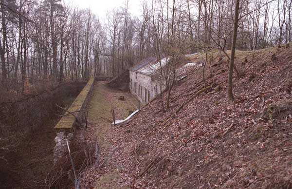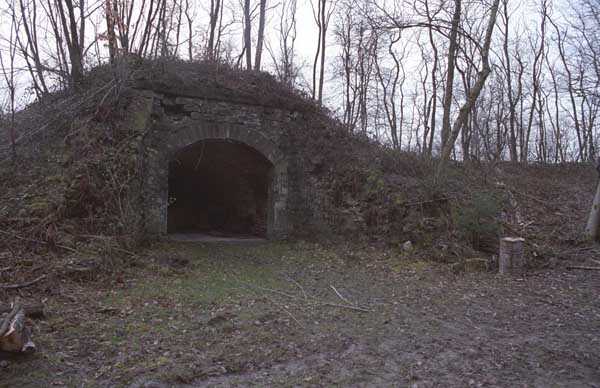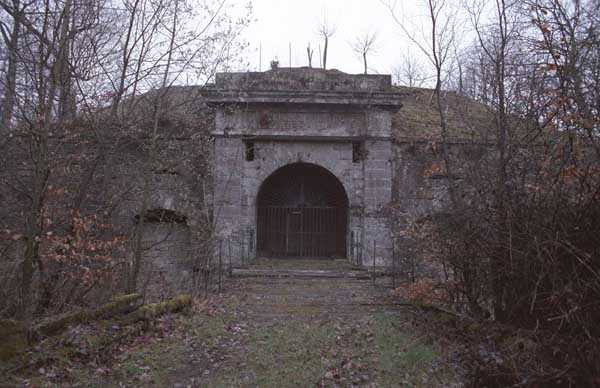 Entrenched camp of Épinal, southwest of the city, 1882. 454 m/alt. Called redoubt Mayran. Three auxiliary batteries on its fronts, some of which have their moat filled with water (from the beginning?). These batteries are accessible, but the redoubt, a small rectangular structure, with two double caponiers (one at the throat) and a single one, is private and guarded property.
