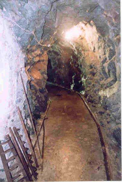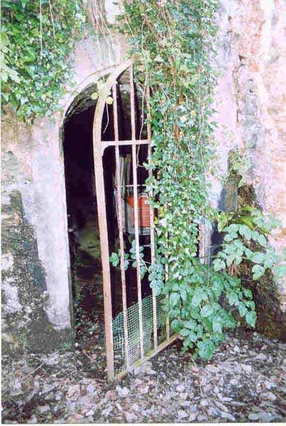 Place de Cherbourg, O de la place, 1890. Magasin à poudre, sous roc, qui était réputé abriter environ 50% des munitions des ouvrages de Querqueville, ce qui, vu la faible surface de l'unique pièce de stockage, (11 x 5,5 m), nous semble optimiste. Ce magasin est situé à 2700 m à vol d'oiseau au sud-ouest, par rapport à l'entrée du fort de Querqueville. Il possède deux galeries d'accès qui, toutes deux, débouchent sur un sas où, en face de l'entrée du local de stockage, nous trouvons un créneau à lampe. Certains éléments en bronze sont encore présents dans ces créneaux, tout comme de belles longueurs d'évacuation des gaz de combustion des lampes. La galerie de gauche est plus longue (24 m) que sa consœur de droite (13 m), et, en plus, comporte un coude. Leurs grilles de fermeture sont celles d'origine. Le corps de garde est en très bon état et, c'est trop rare pour ne pas le signaler, les latrines sont aussi intactes. Très bon état général (06/2005). Propriété privée.
