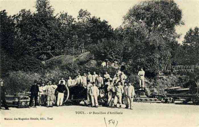 Dept 54 (Meurthe-et-Moselle). Jedno ze čtyř velkých náměstí na východě, uzavírající oponu vysočiny řeky Meuse na jihu. Uzavírá průliv v kanálu Meuse-Rýn. 12 pevností, 16 opevnění, 3 reduty, četné baterie, kryty a sklady pod skalami. Na tomto náměstí je ve skutečnosti taková hustota vojenských staveb, že je vně pevností k vidění více než uvnitř, zejména proto, že beton se zde lil i během první světové války pro případ, že by se fronta pohnula. Data z roku 1914 uvádějí nejméně 402 děl rozmístěných v 82 bateriích (+ nejméně 34 v pevnostech – bez obrněných jednotek a kasemat Bourges – nepočítaje ± 140 12hlavňových děl). Tyto baterie, vedené ve skupinách a následované číslem, mají často několik názvů, v nichž je velmi obtížné se v nich orientovat. Důležitá kasárna ve městě i mimo něj (Sevastopol). V roce 1944 provedly americké jednotky na tomto místě několik výbušných testů, aby otestovaly odolnost betonu, než se dostaly do kontaktu se Západním valu. Takto vyhodili do povětří stavbu La Cloche a nejméně dvě protiskluzové pokladny pevnosti Bruley, které vystřelili na kryt Cutine,… na druhou stranu, poškození horní pokladny pevnosti Vieux Canton a betonových kasáren pevnosti Tillot je údajně německé. Toul je po Verdunu místem, které si zachovalo největší procento svého obrněného vybavení. A konečně, vzhledem k blízkosti fronty pravděpodobně každý, kdo se tímto místem prochází, narazí na budovy z první světové války. Například mezi říjnem 1914 a únorem 1915 bylo v zakopaném táboře umístěno 12 námořních děl ráže 164,7 mm, některá v tancích, jiná v kasematech. Plukovník François uvádí lokality Laneuveville, Lucey, Vieux-Canton, Villey-Saint-Etienne, Jaillon, Fontenoy, Chaudeney, La Chalatte, Bois-sous-Roche, Blénod, Charmes a Romont. Stejně tak je v zakořeněném táboře rozmístěno několik protiletadlových pozic: Point-du-Jour, Villey-le-Sec (jihozápadně od reduty), Bruley, Pagney, Blénod a na pevnosti Domgermain. Ale, jak jsme si během našich eskapád mnohokrát zopakovali, nepodařilo se nám tam vidět všechno. Rozdíl mezi pevnostmi je ohromující a zažili jsme tam několik skvělých chvil ve Villey-le-Sec, Écrouves a Saint-Michel. Jak na potvoru, zahájili jsme tam inventuru, která vedla k tomuto rejstříku. Bylo to dobře, protože všechny naprosto bezvadné pevnosti, které jsme tehdy navštívili, od té doby utrpěly četné škody, včetně odpadků nebo požárů pneumatik, a také tisíců cedulek. Naštěstí v tomto politováníhodném chaosu existují lidé, kteří za toto dědictví bojují, sdružení „La Citadelle“ ve Villey-le-sec a radnice ve Villey-Saint-Étienne si v tomto ohledu zaslouží vážné uznání.