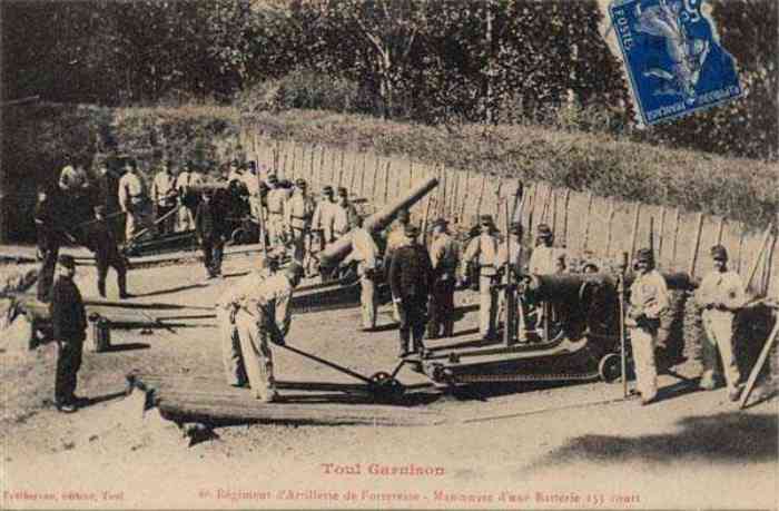 Dept 54 (Meurthe-et-Moselle). Einer der vier großen Plätze im Osten, der den Vorhang des Maashochlandes nach Süden abschließt. Blockiert die Lücke im Maas-Rhein-Kanal. 12 Forts, 16 Werke, 3 Schanzen, zahlreiche Batterien, Unterstände und Magazine unter Felsgestein. Tatsächlich ist die Dichte militärischer Bauten auf diesem Platz so groß, dass es außerhalb der Forts mehr zu sehen gibt als innerhalb, insbesondere aufgrund der Tatsache, dass hier während des Ersten Weltkriegs weiterhin Beton gegossen wurde, für den Fall, dass die Front nachgab. Daten aus dem Jahr 1914 beziffern nicht weniger als 402 Kanonen, verteilt auf 82 Batterien (+ mindestens 34 in den Forts – die Panzer und Kasematten von Bourges nicht mitgerechnet –, ohne die ± 140 Kanonen mit 12 Verschlüssen). Diese Batterien, die in Gruppen angeordnet und mit einer Nummer versehen sind, haben oft mehrere Namen, sodass die Orientierung sehr schwierig ist. Wichtige Kasernen in der Stadt und außerhalb (Sewastopol). Beachten Sie, dass die US-Truppen 1944 an dieser Stelle mehrere Sprengtests durchführten, um die Widerstandsfähigkeit des Betons zu testen, bevor sie sich an die Siegfried-Linie wagten. So sprengten sie das Werk von La Cloche und mindestens zwei Kontereskarpenkassetten des Forts von Bruley, die sie auf den Schutz der Cutine feuerten, … andererseits wird aber angenommen, dass die Schäden an der Kehlkassette des Forts von Vieux Canton und den Betonbaracken des Forts von Tillot von den Deutschen verursacht wurden. Toul ist nach Verdun der Ort, der die meisten seiner Panzer erhalten hat. Aufgrund der Nähe zur Front stößt man bei einem Spaziergang durch den Ort mit hoher Wahrscheinlichkeit auf Gebäude aus dem Ersten Weltkrieg. So wurden beispielsweise zwischen Oktober 1914 und Februar 1915 zwölf 164,7-mm-Schiffsgeschütze im verschanzten Lager stationiert, einige in Panzern, andere in Kasematten. Oberst François nennt die Standorte von Laneuveville, Lucey, Vieux-Canton, Villey-Saint-Etienne, Jaillon, Fontenoy, Chaudeney, La Chalatte, Bois-sous-Roche, Blénod, Charmes und Romont. Ebenso sind mehrere Flugabwehrstellungen über das gesamte verschanzte Lager verteilt: Point-du-Jour, Villey-le-Sec (südwestlich der Redoute), Bruley, Pagney, Blénod und auf dem Fort von Domgermain. Aber wie wir bei unseren Eskapaden oft wiederholt haben, haben wir es nicht geschafft, dort alles zu sehen. Die Verschiedenheit der Festungen ist erstaunlich, und wir erlebten einige großartige Momente in Villey-le-Sec, Écrouves und Saint-Michel. Wie es der Zufall wollte, begannen wir dort mit der Bestandsaufnahme, die zu diesem Index führen sollte. Das war gut so, denn alle makellosen Festungen, die wir damals besuchten, wurden seitdem mehrfach beschädigt, darunter Müll- oder Reifenbrände sowie Tausende von Etiketten. Glücklicherweise gibt es inmitten dieses bedauerlichen Chaos Menschen, die sich für dieses Erbe einsetzen. Der Verein „La Citadelle“ in Villey-le-Sec und das Rathaus von Villey-Saint-Étienne verdienen in dieser Hinsicht unsere größte Anerkennung.